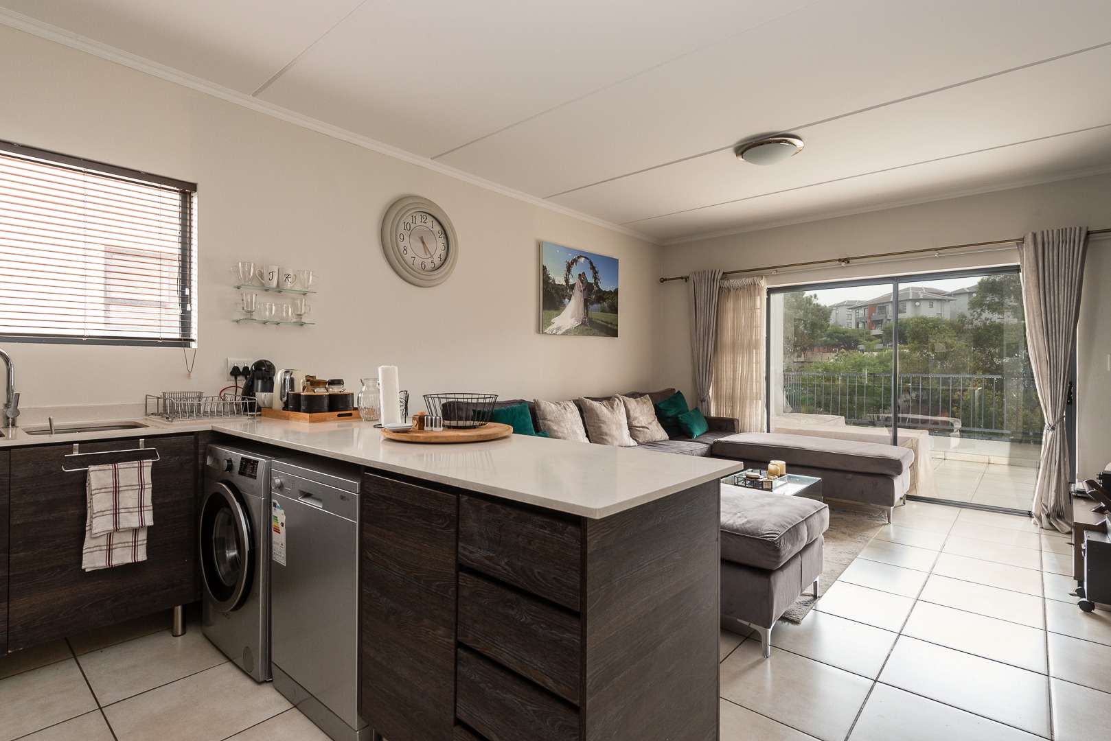 As you enter this heartwarming unit, you are welcomed by the spacious open plan dining, kitchen and lounge area which leads onto the balcony where you can experience peace and bliss as you gaze upon the tranquil view. The ultra neat modern kitchen has caesarstone tops, a great deal of cupboard space, a gas stove and a breakfast nook.