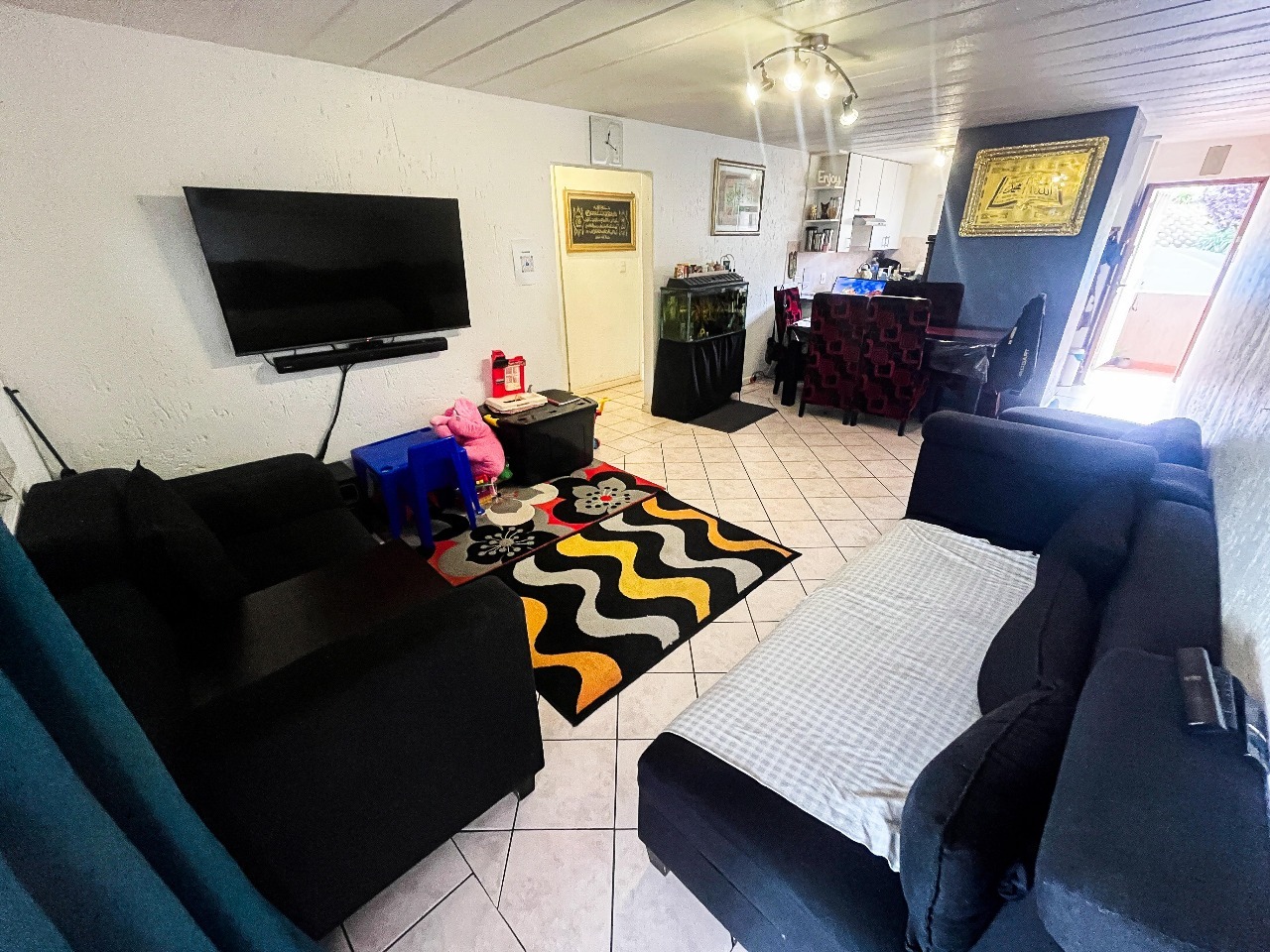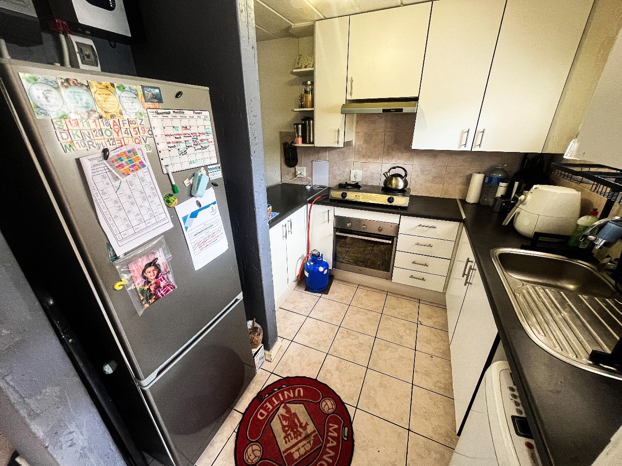 Discover this modern 99 sqm residential unit located in a well-maintained suburban complex in Oakdene, Johannesburg. The property presents appealing kerb appeal with contemporary grey-toned buildings, brick-paved driveways, and landscaped areas featuring mature palm trees. An open-plan living and family TV room, complete with tiled flooring and sliding doors, creates a bright and inviting atmosphere. The functional kitchen offers modern white cabinetry, dark countertops, a built-in oven, tiled flooring, and space for a large fridge and under-counter washing machine.