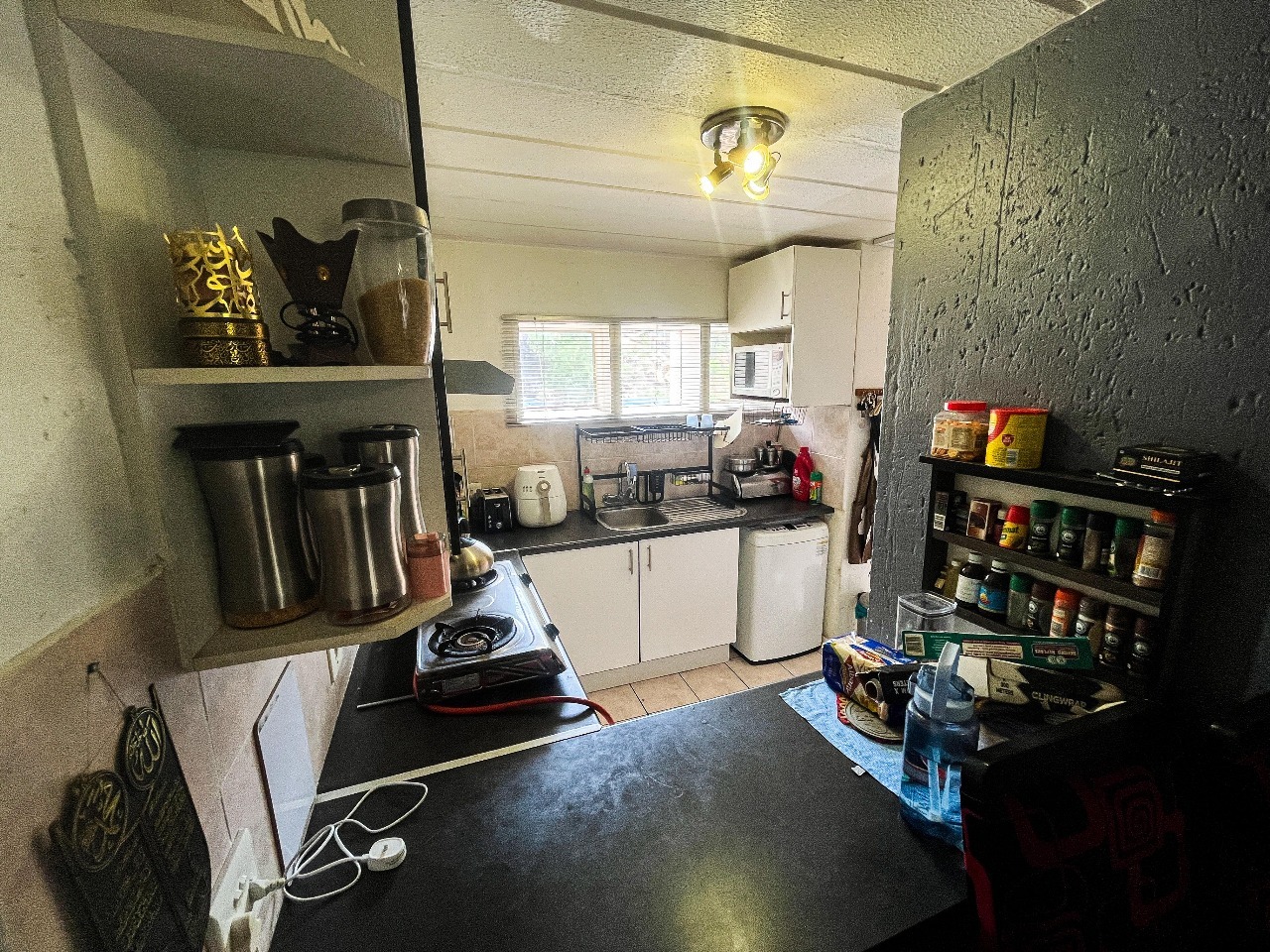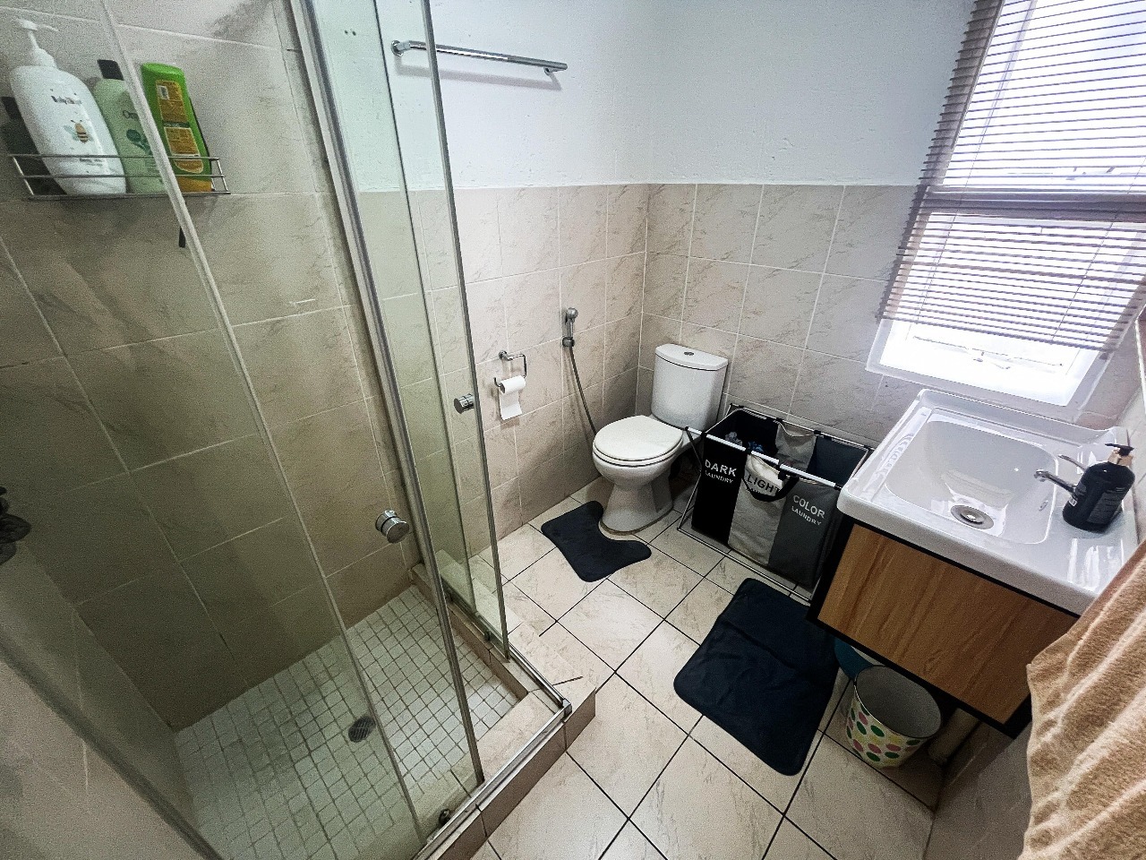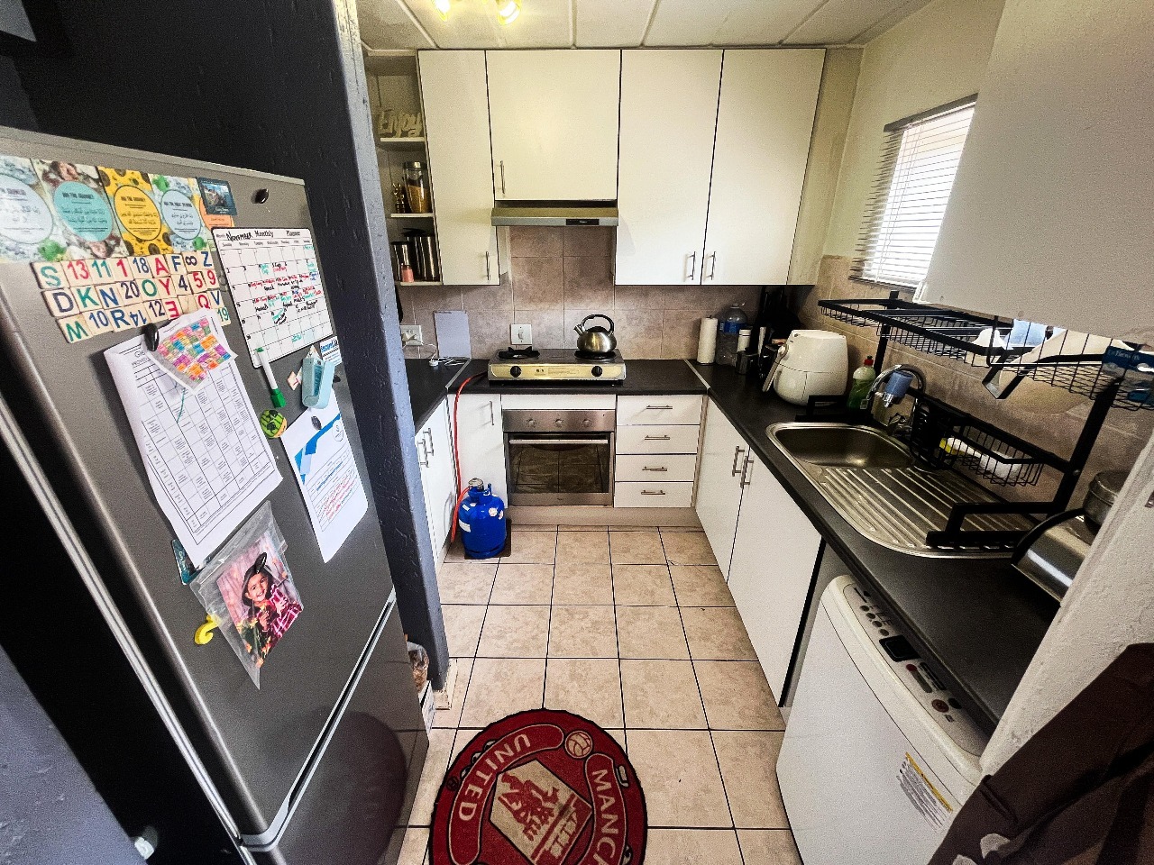 Discover this modern 99 sqm residential unit located in a well-maintained suburban complex in Oakdene, Johannesburg. The property presents appealing kerb appeal with contemporary grey-toned buildings, brick-paved driveways, and landscaped areas featuring mature palm trees. An open-plan living and family TV room, complete with tiled flooring and sliding doors, creates a bright and inviting atmosphere. The functional kitchen offers modern white cabinetry, dark countertops, a built-in oven, tiled flooring, and space for a large fridge and under-counter washing machine.