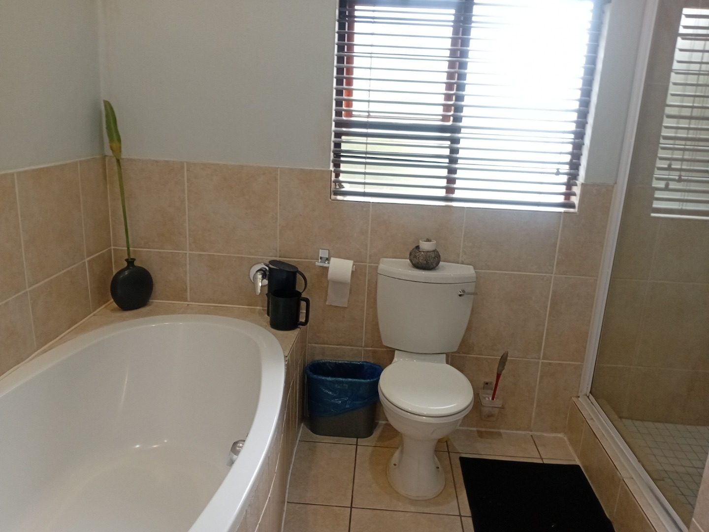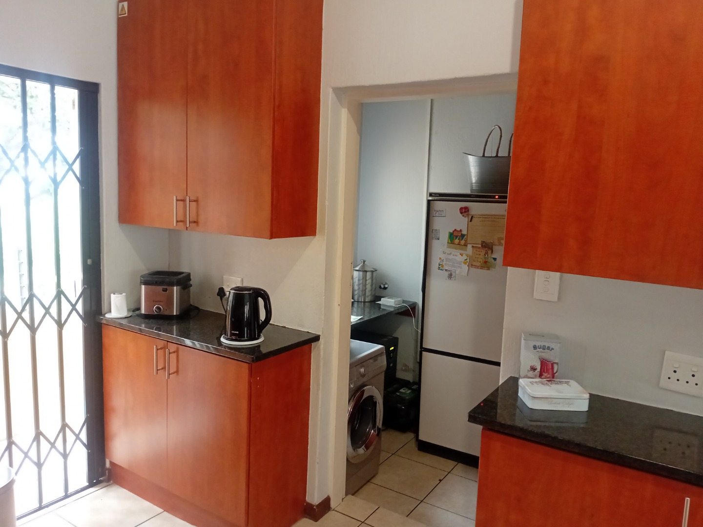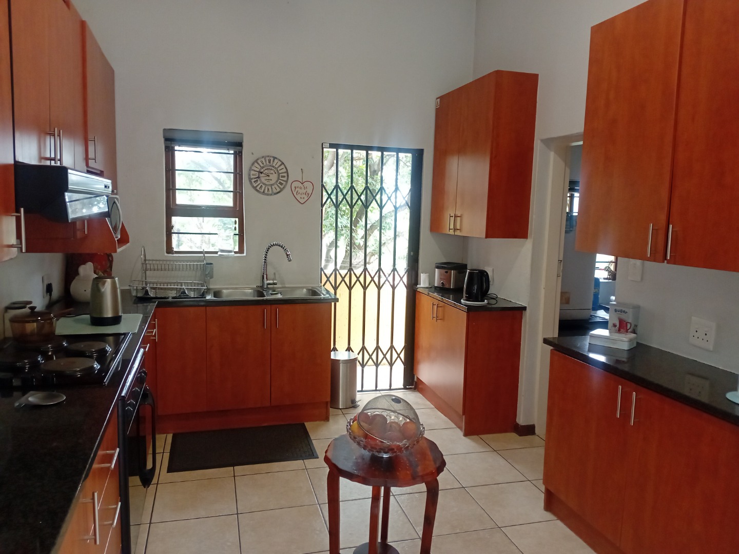 The home offers a spacious and modern kitchen with built-in cupboards, complemented by a scullery and a breakfast nook with laundry space. The open-plan lounge and dining room provide a warm and inviting atmosphere for both everyday living and entertaining.