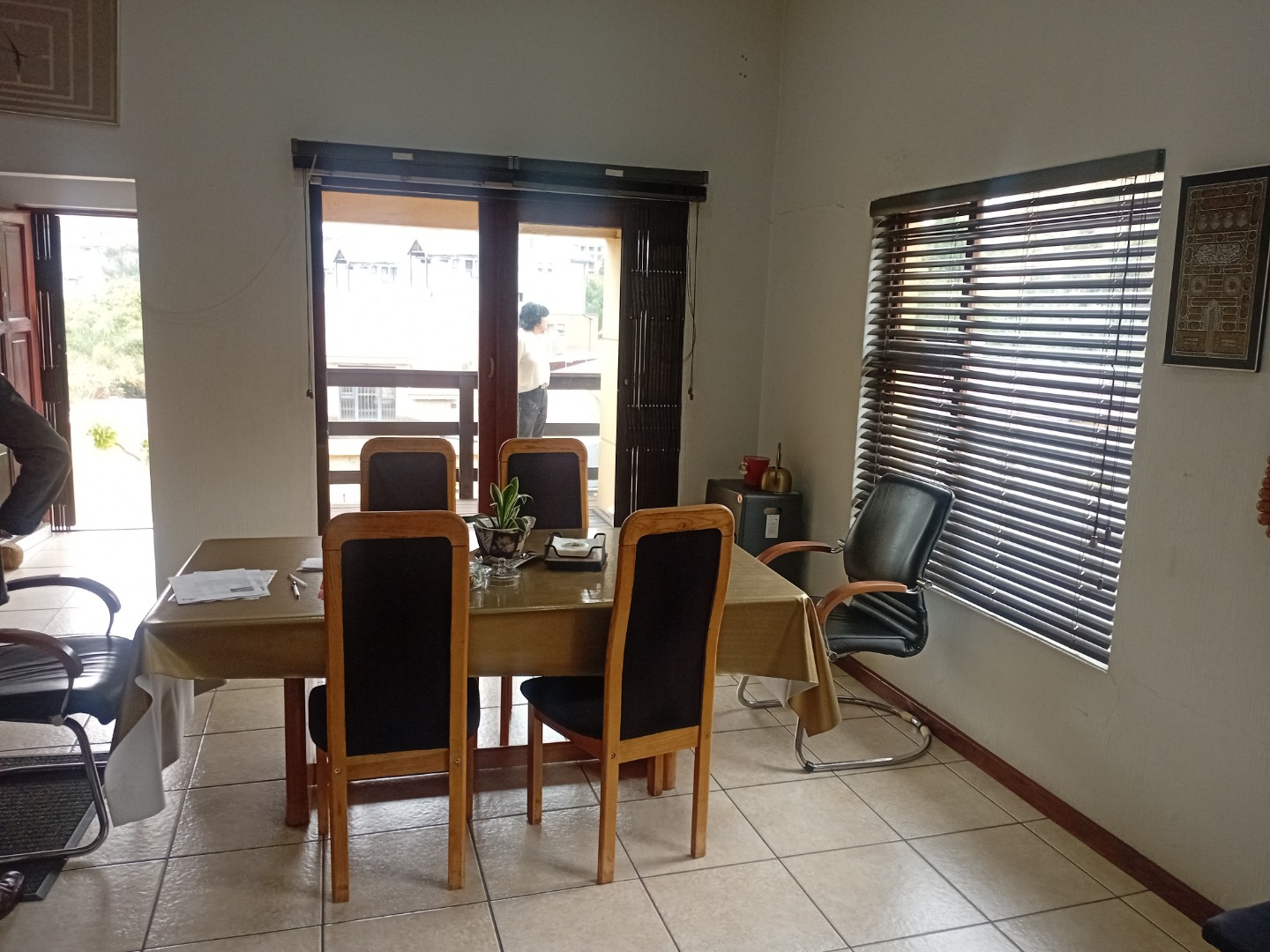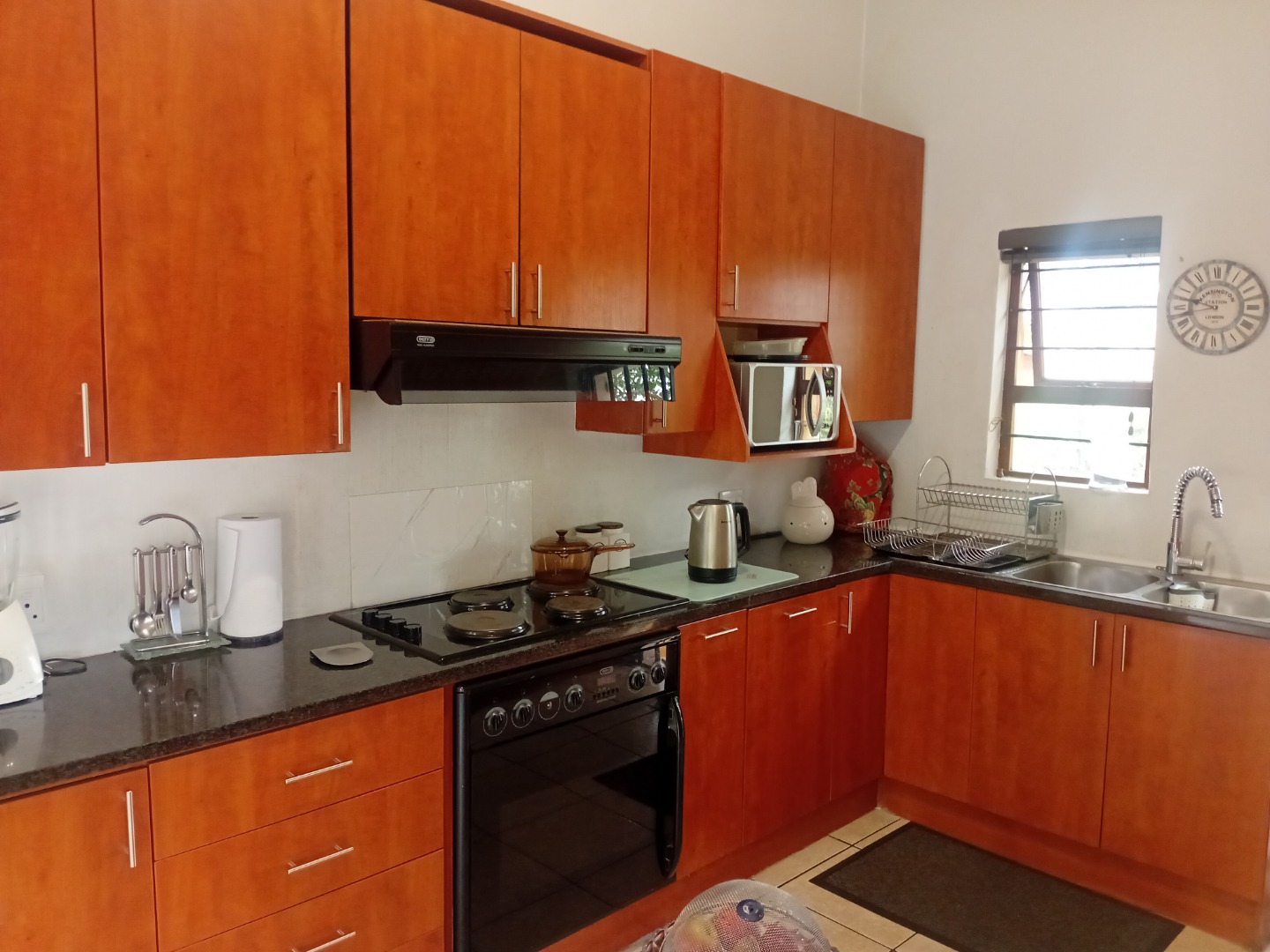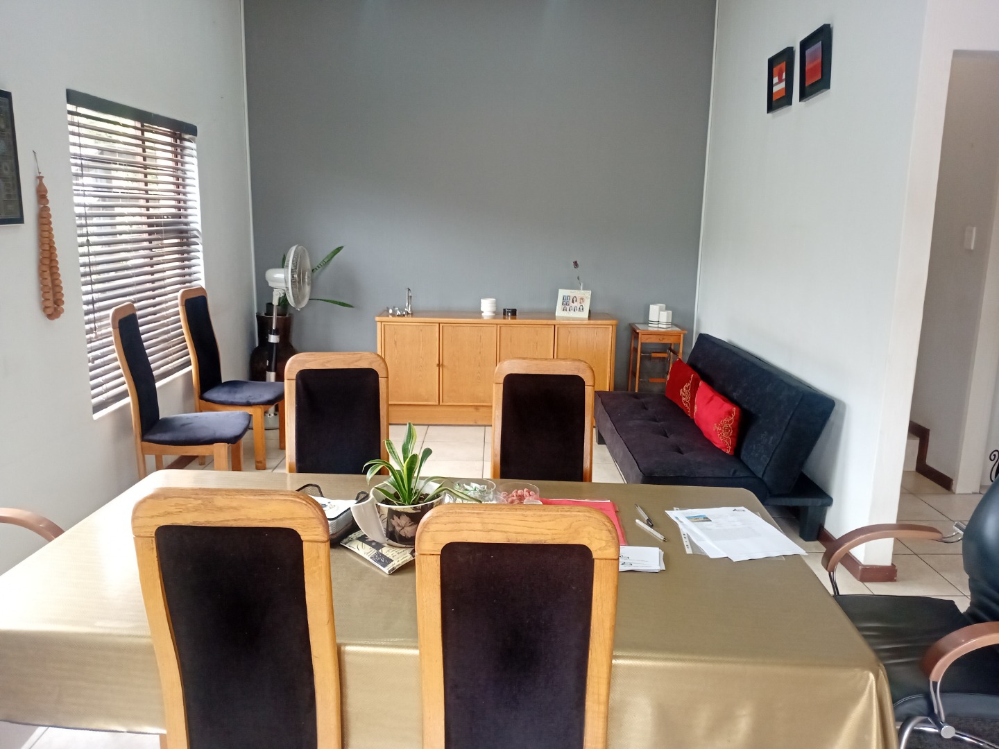 The home offers a spacious and modern kitchen with built-in cupboards, complemented by a scullery and a breakfast nook with laundry space. The open-plan lounge and dining room provide a warm and inviting atmosphere for both everyday living and entertaining.