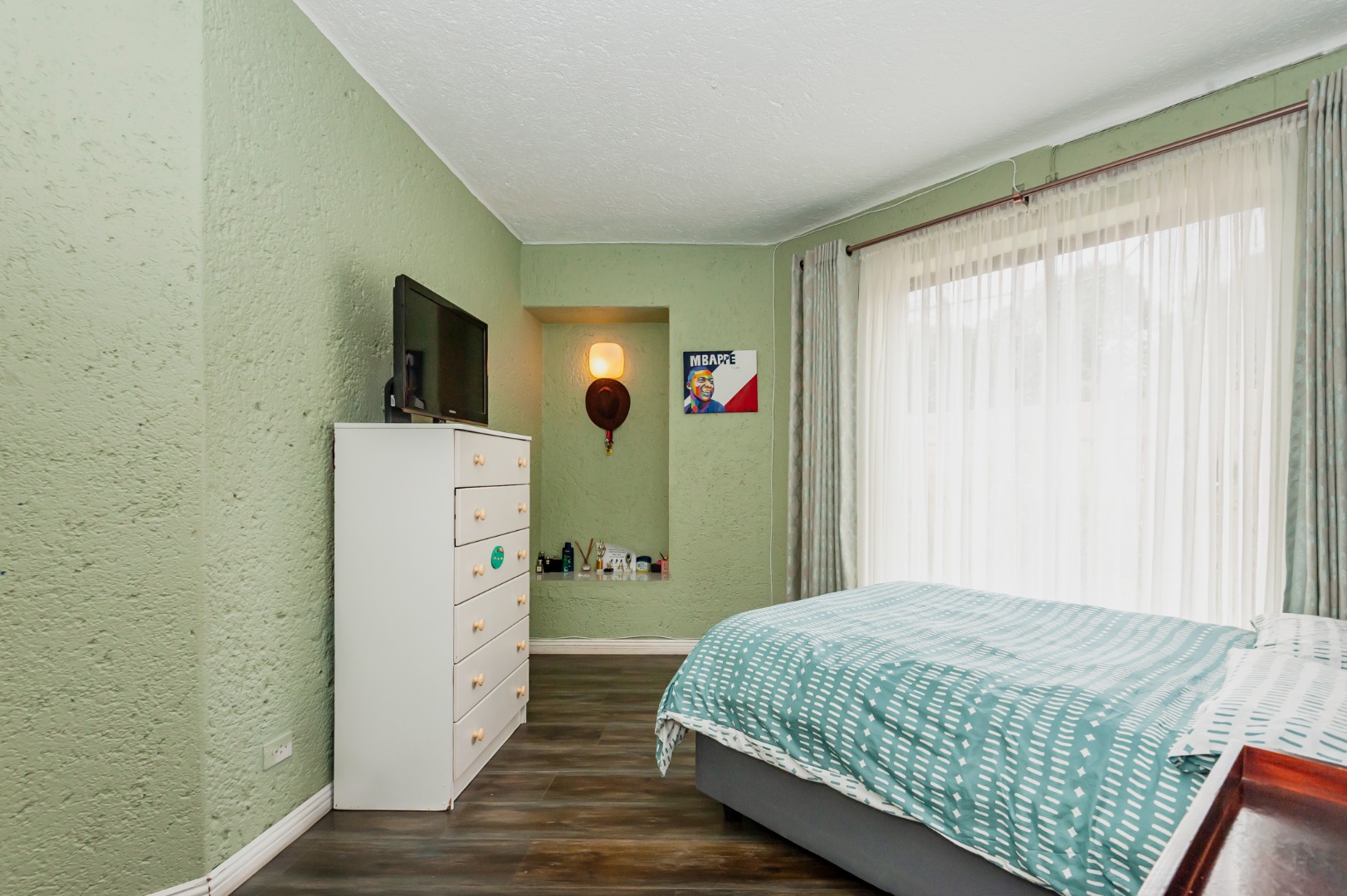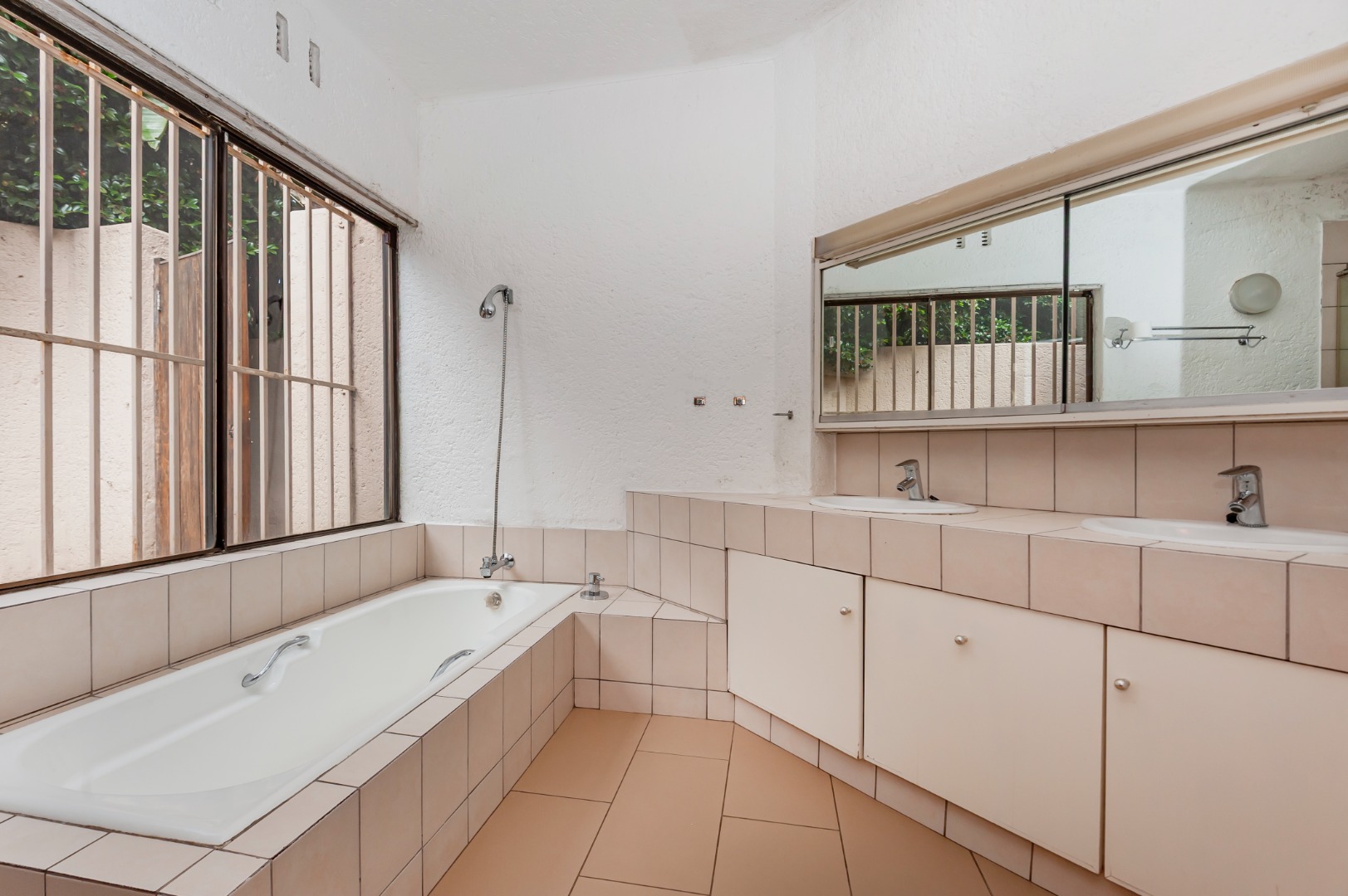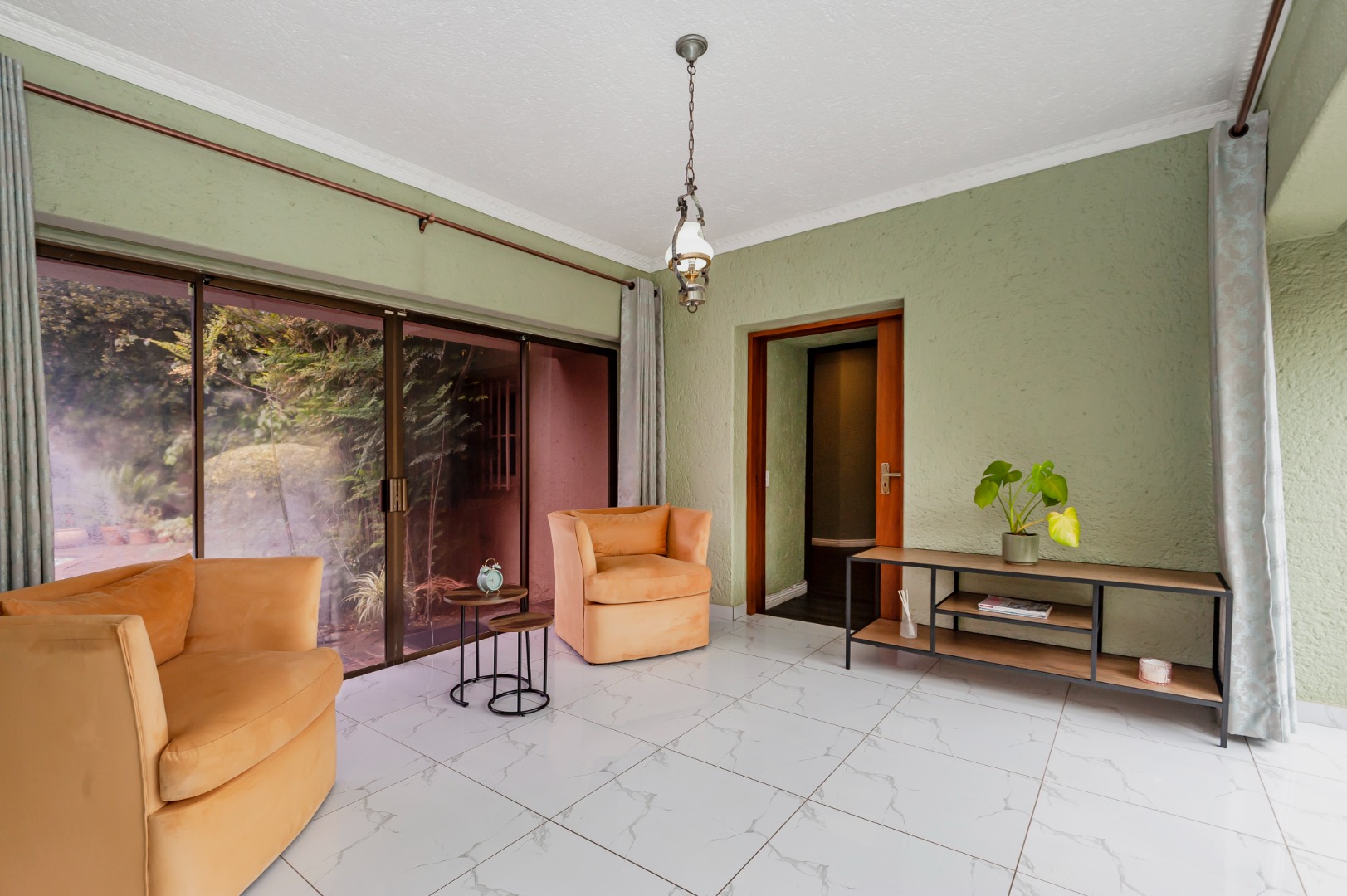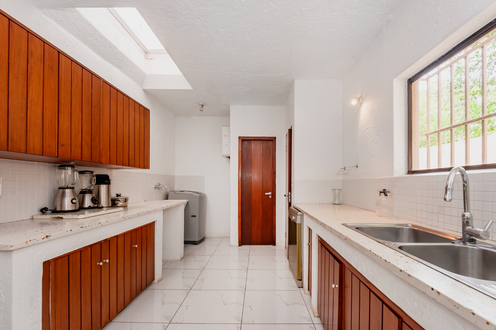 As you enter, you’re greeted by a generous entrance hall with sliding doors leading to the back garden. The private bedroom wing hosts three bedrooms with built-in cupboards, including a main bedroom with a walk-in closet, private courtyard, and full ensuite bathroom. A second full bathroom and a guest toilet add to the home’s convenience.
