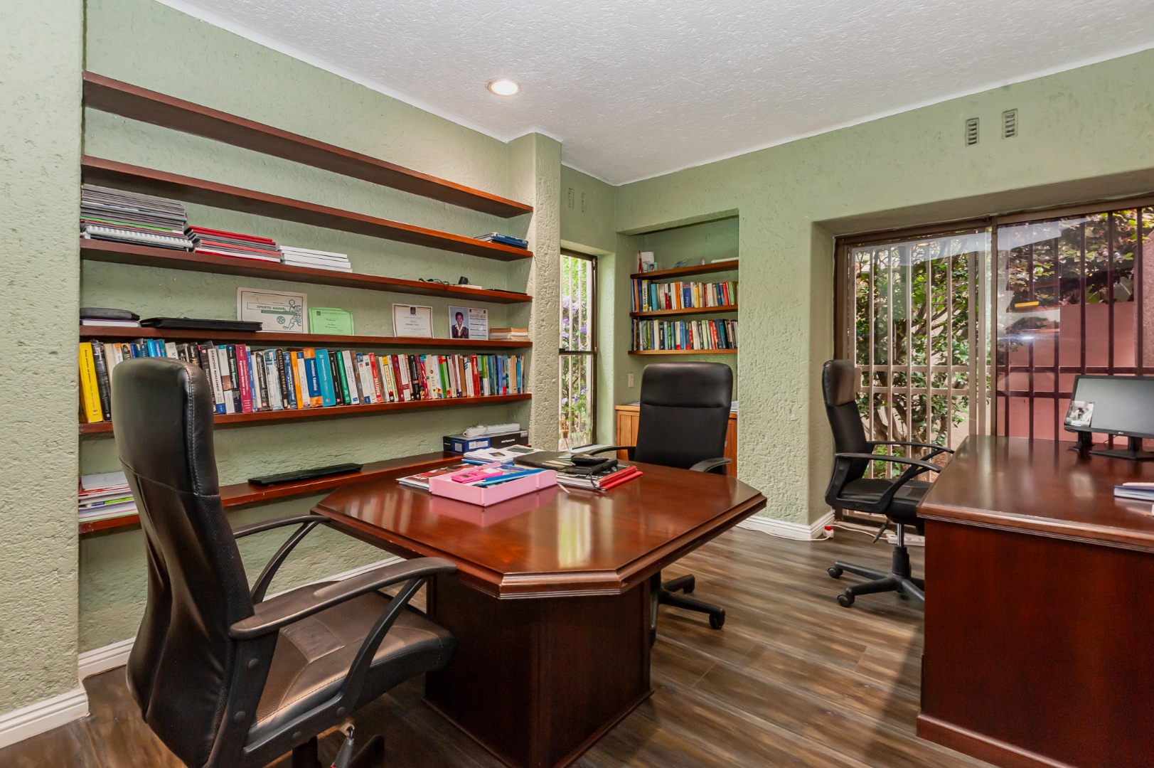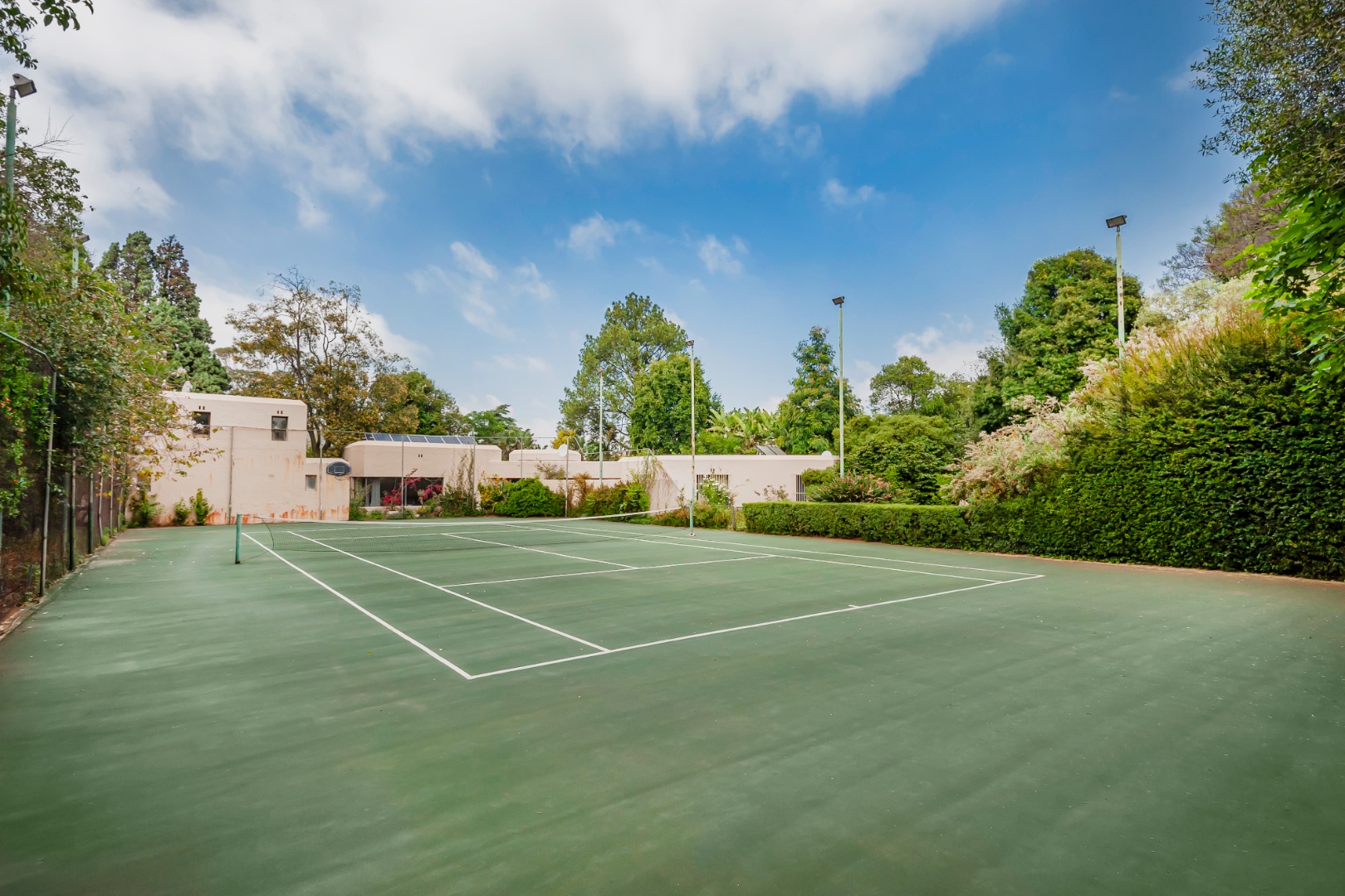 Outside, you’ll find an outdoor toilet, a beautifully manicured garden, and a well-maintained tennis court, perfect for family fun and entertainment. The double garage includes two storerooms on either side, with a two-bedroom flatlet above — ideal for guests or rental income.