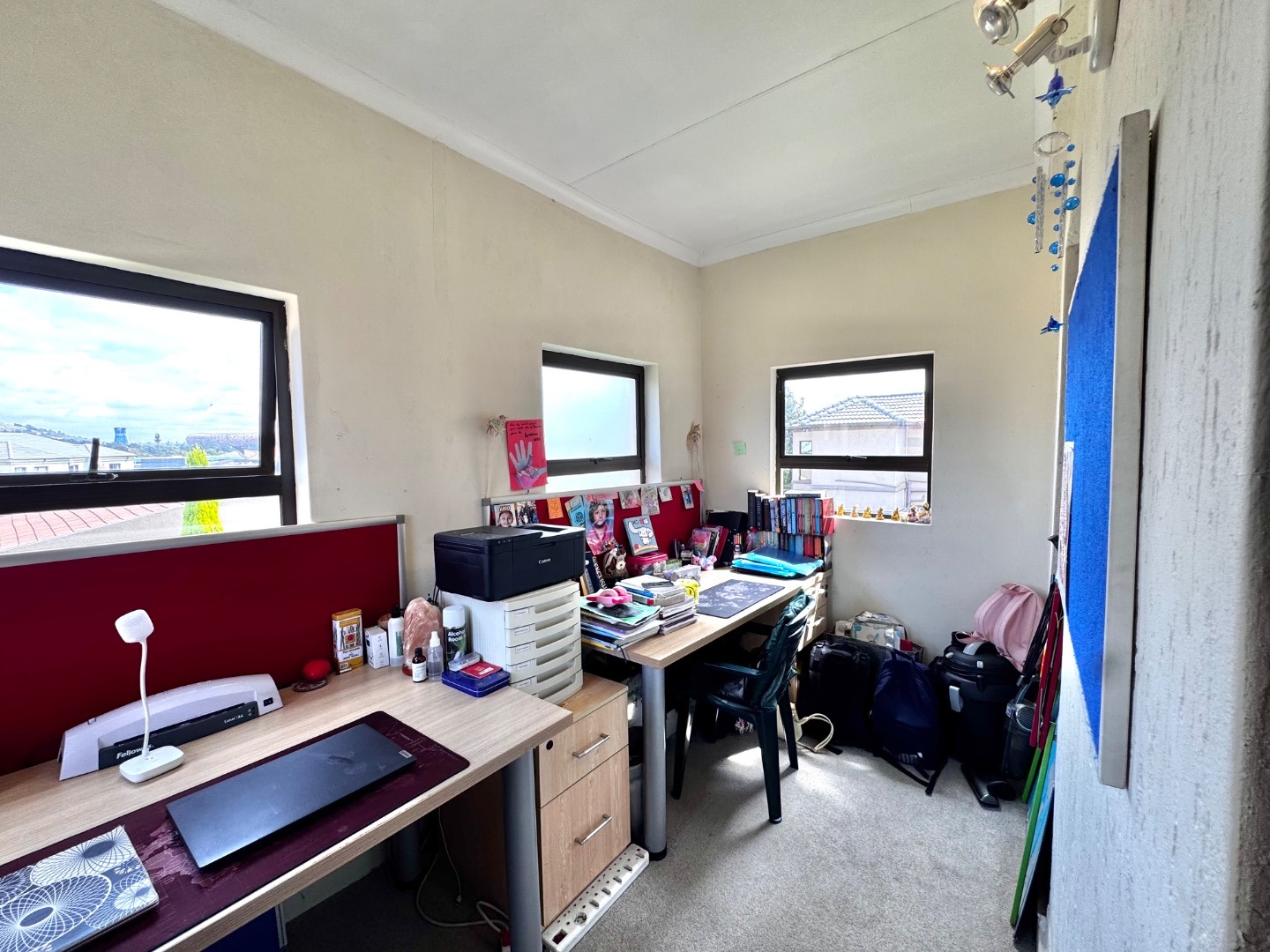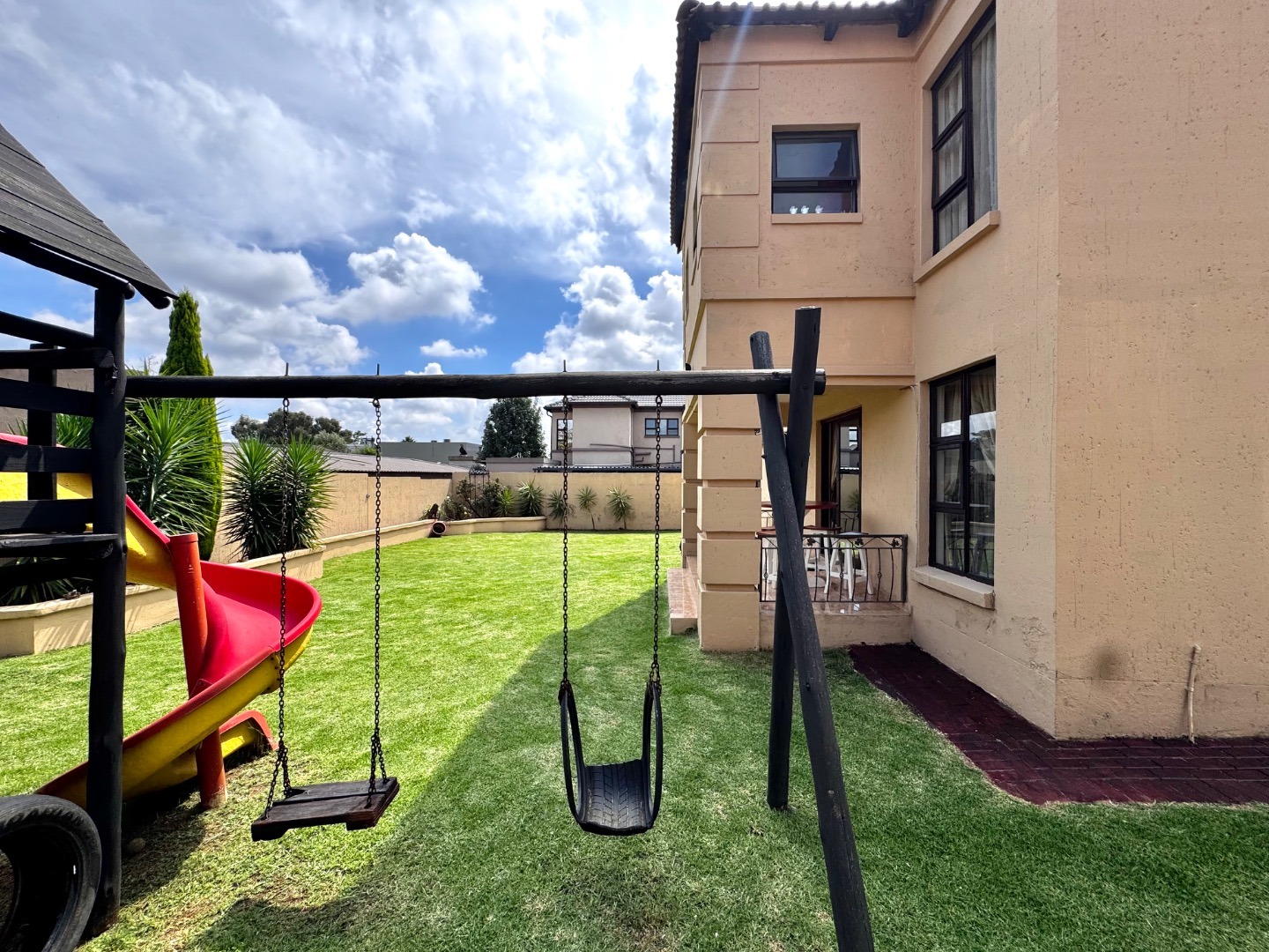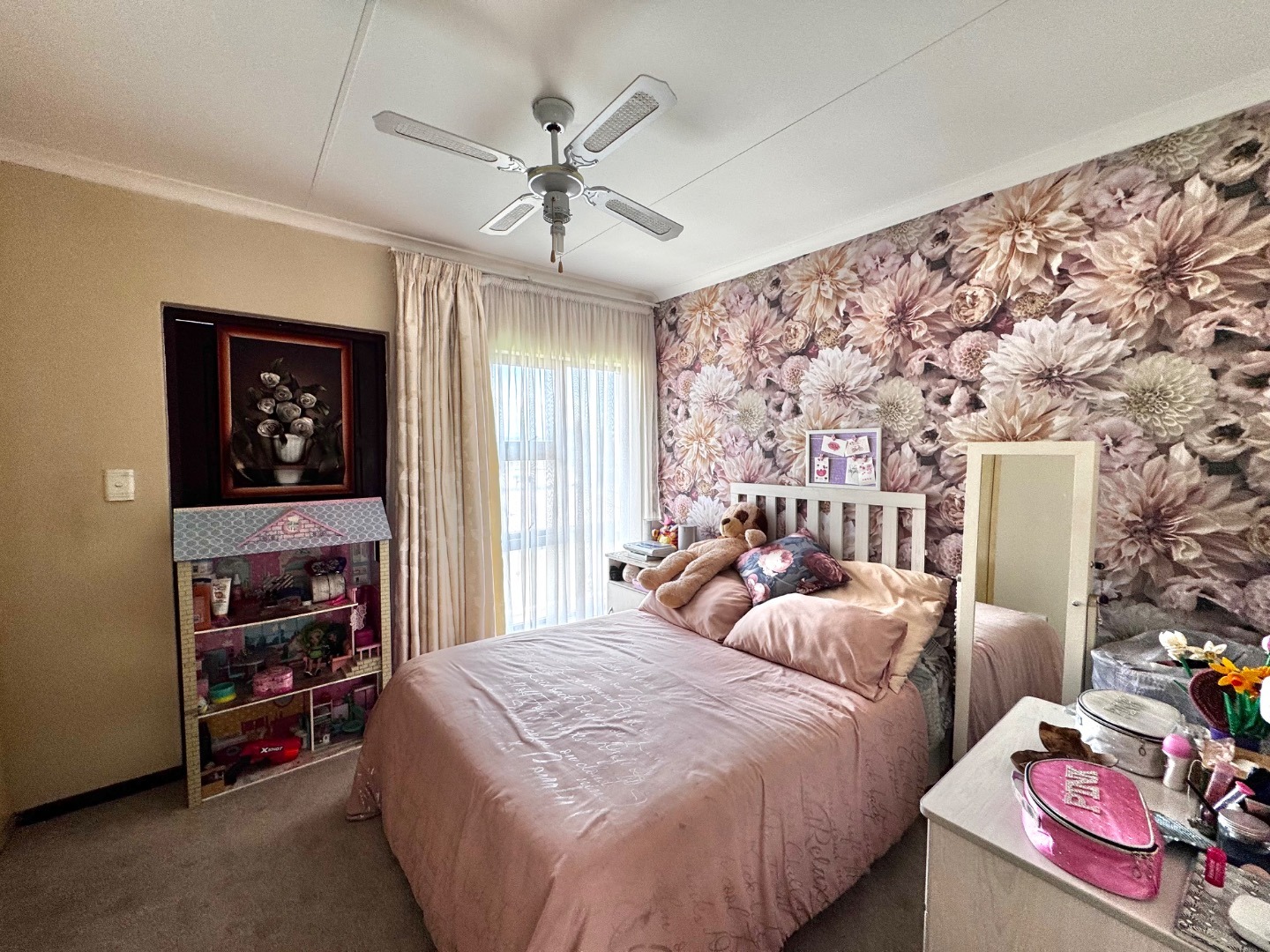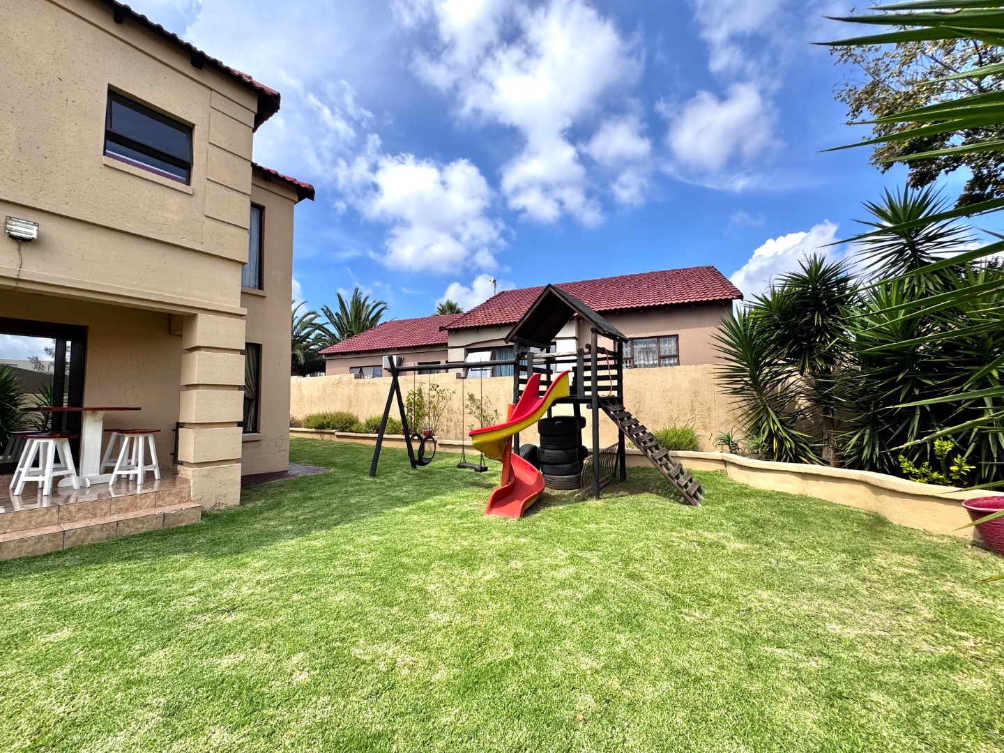 The home boasts three generously sized bedrooms, all featuring built-in cupboards and plenty of natural light. The main bedroom offers a private en-suite bathroom, while the additional bathrooms are tastefully finished to cater to both family and guests.