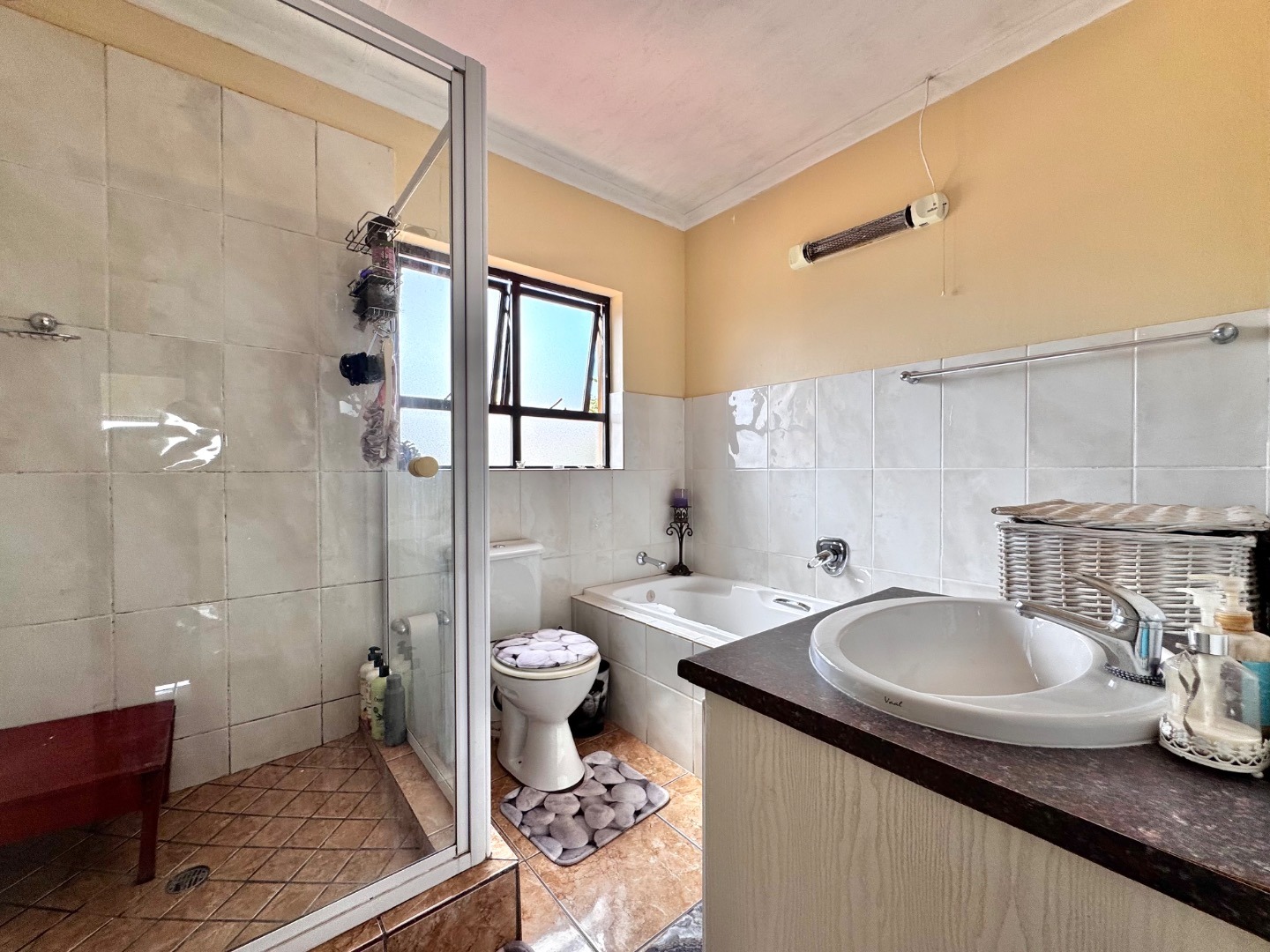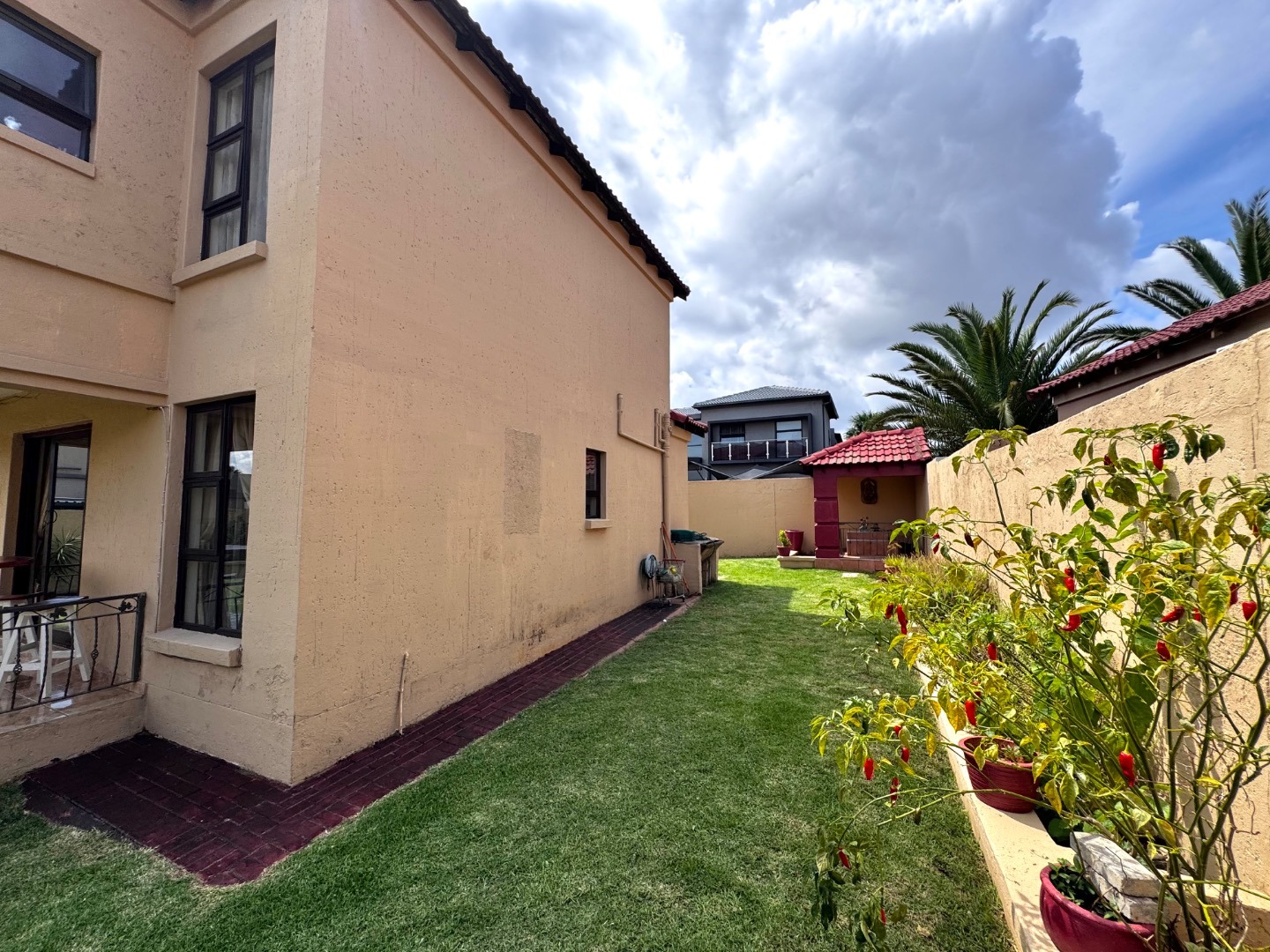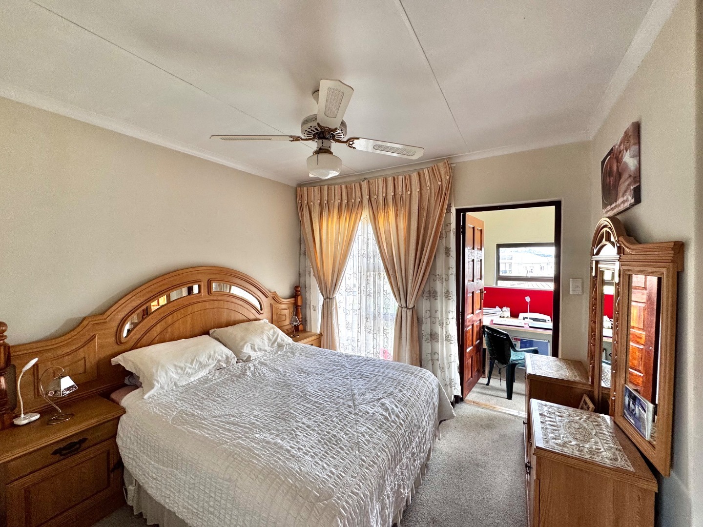 The home boasts three generously sized bedrooms, all featuring built-in cupboards and plenty of natural light. The main bedroom offers a private en-suite bathroom, while the additional bathrooms are tastefully finished to cater to both family and guests.