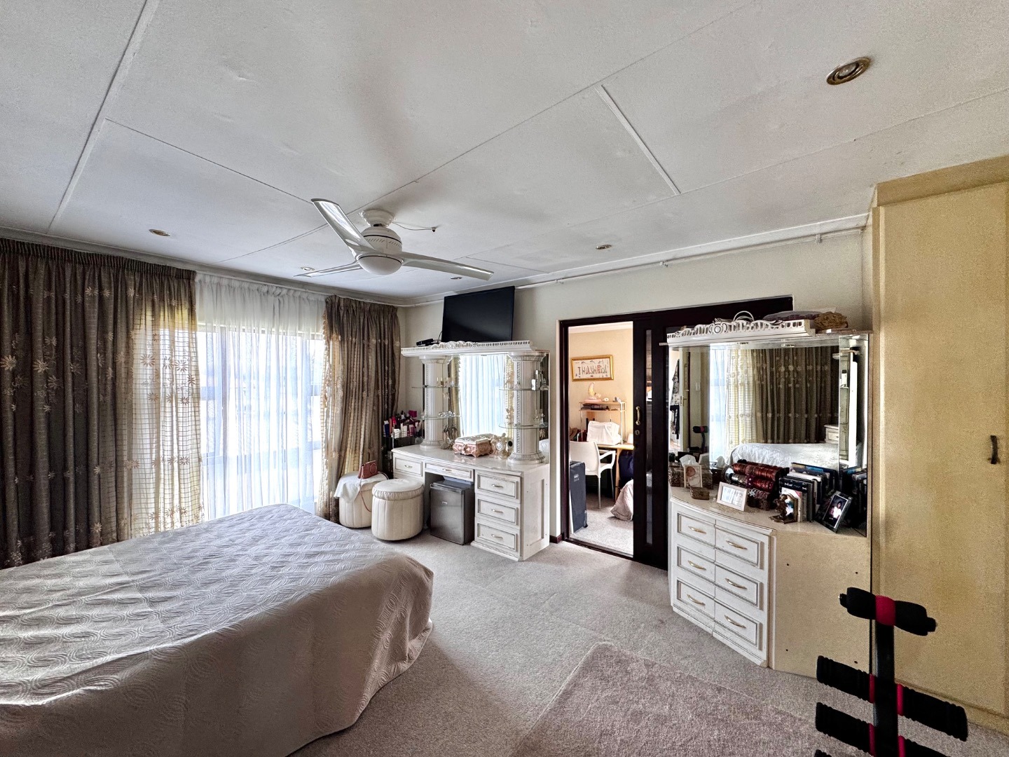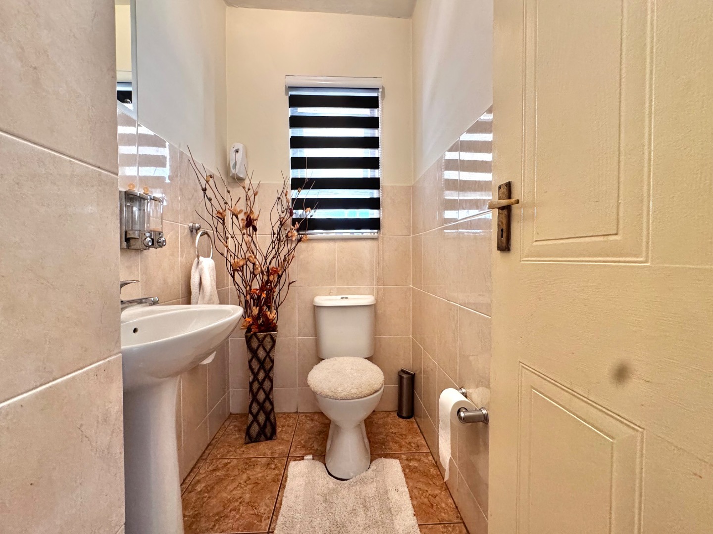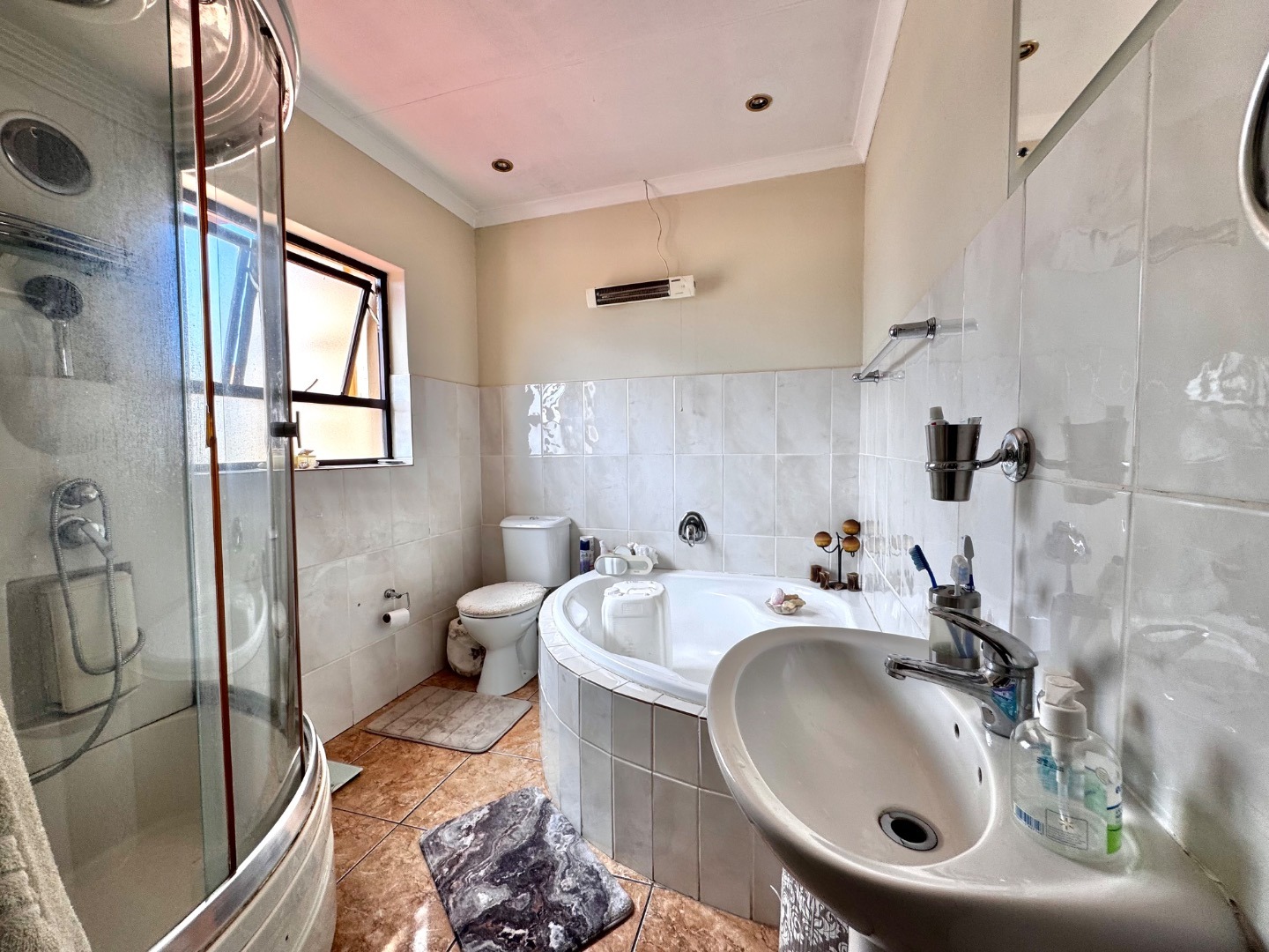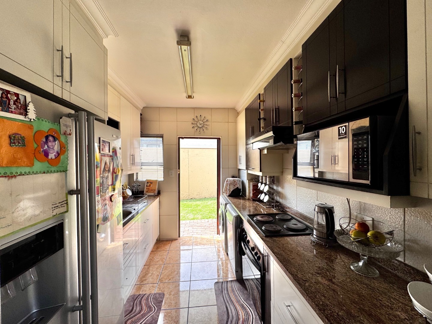 The home boasts three generously sized bedrooms, all featuring built-in cupboards and plenty of natural light. The main bedroom offers a private en-suite bathroom, while the additional bathrooms are tastefully finished to cater to both family and guests.