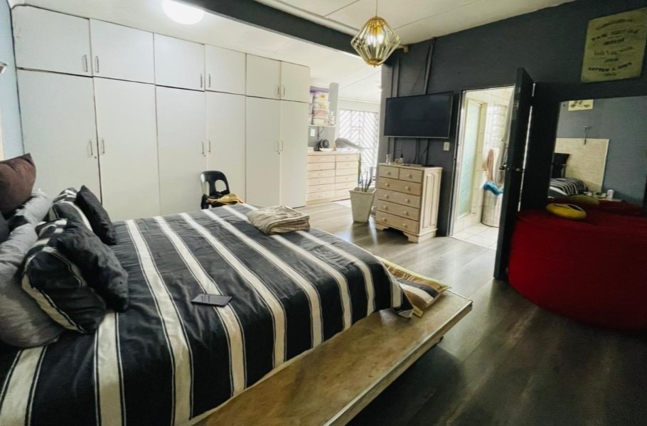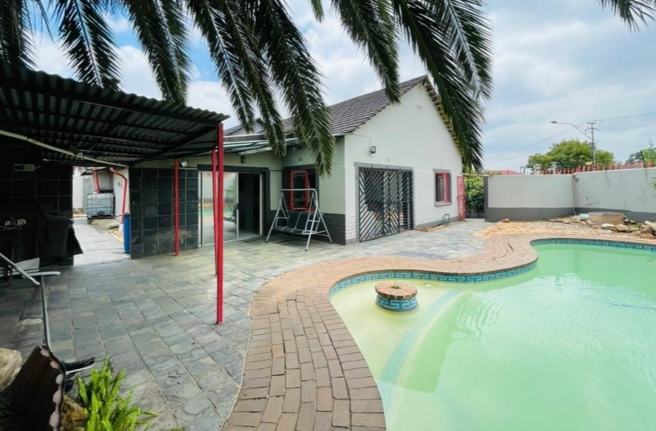 Externally, the property benefits from its expansive erf, offering considerable outdoor space. A notable feature is the private swimming pool, providing an ideal setting for leisure and recreation. The inclusion of a single garage offers secure parking and additional storage. Furthermore, the property is pet-friendly, catering to families with animal companions.