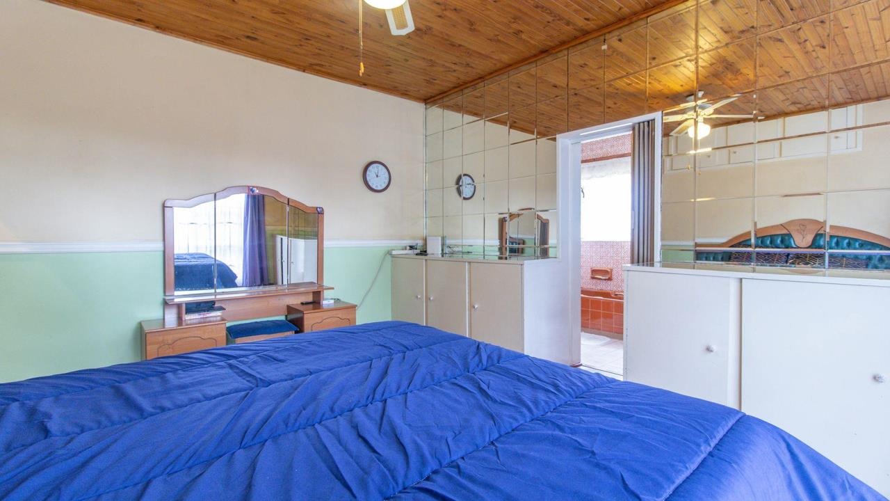 The main residence features three spacious bedrooms, all with built-in cupboards and elegant wooden flooring. Two well-appointed bathrooms include a main en-suite with a dressing area, complemented by a separate guest toilet. Adding significant value is a private ±80 sqm flatlet, complete with its own entrance, lounge, fully fitted kitchen, full bathroom, and three well-sized bedrooms – ideal for extended family or rental income.