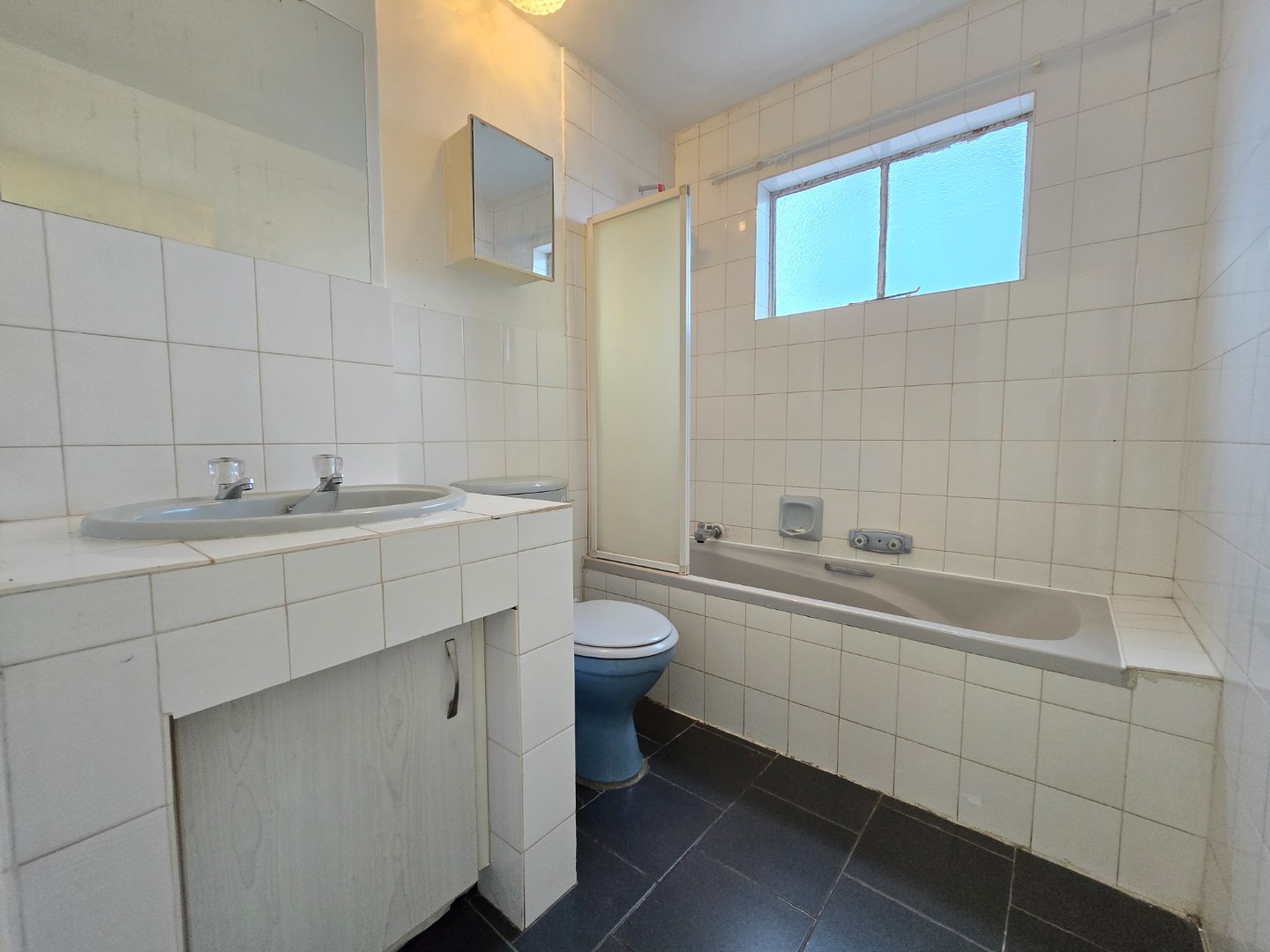 The unit offers two well-sized bedrooms, both fitted with built-in cupboards to ensure comfortable and practical living. A fully equipped bathroom includes a toilet, basin, and a combined bath and shower, catering to everyday convenience.