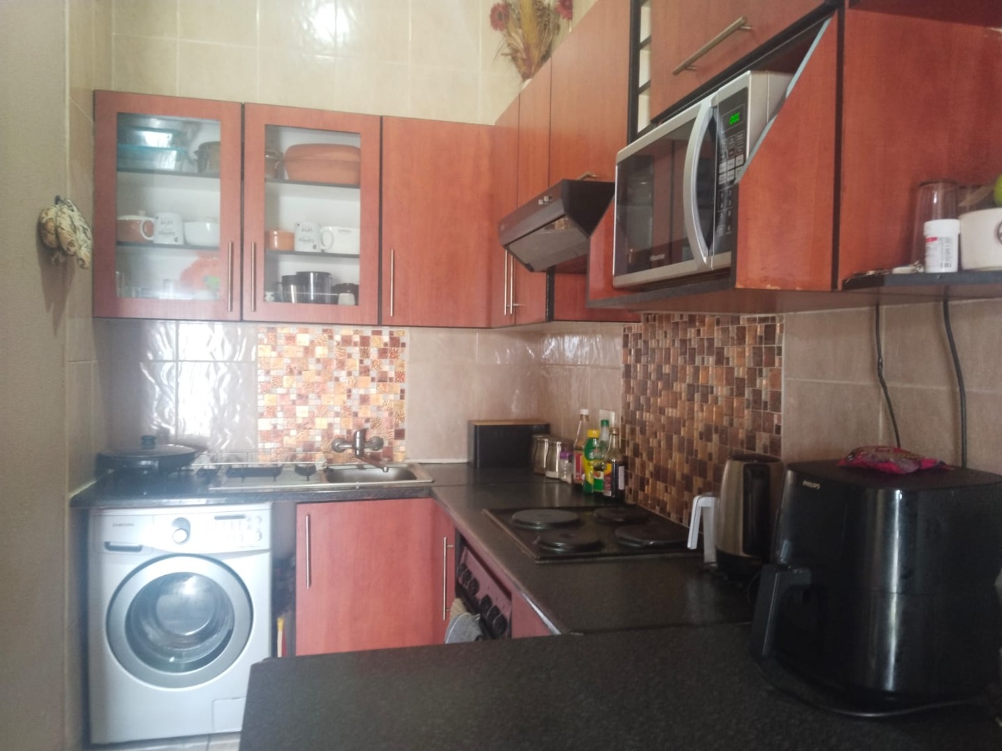 Accommodation includes two well-sized bedrooms, both fitted with built-in cupboards, and a neatly finished bathroom that serves the home with style and convenience.