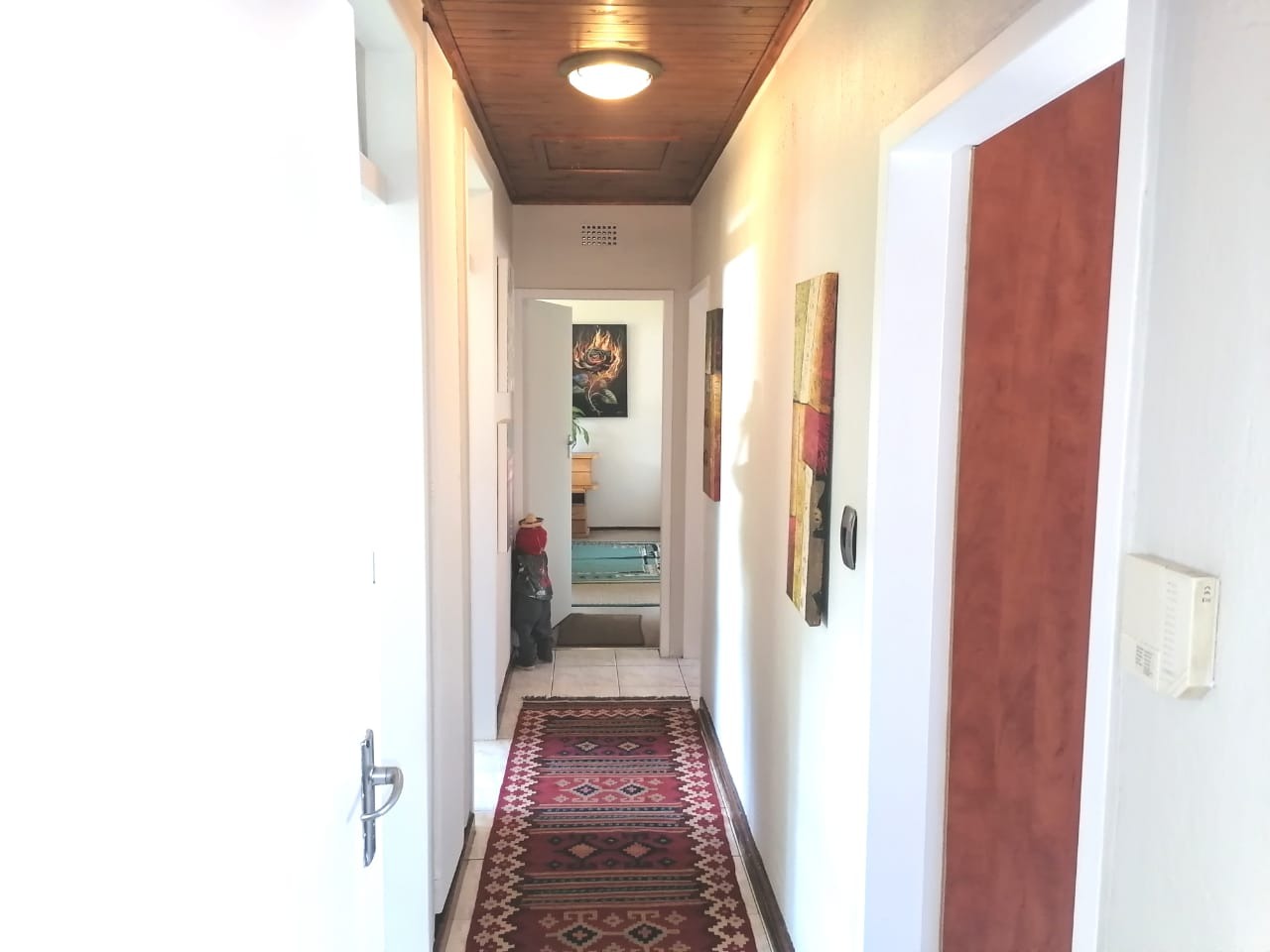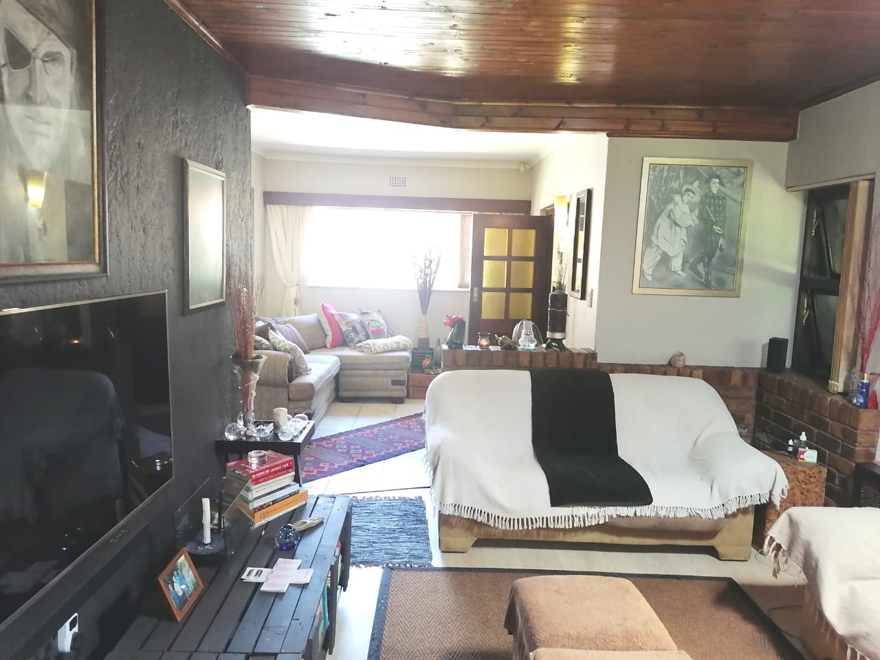 - A wooden ceiling in part of the house, adding a warm, rustic touch to the interior.