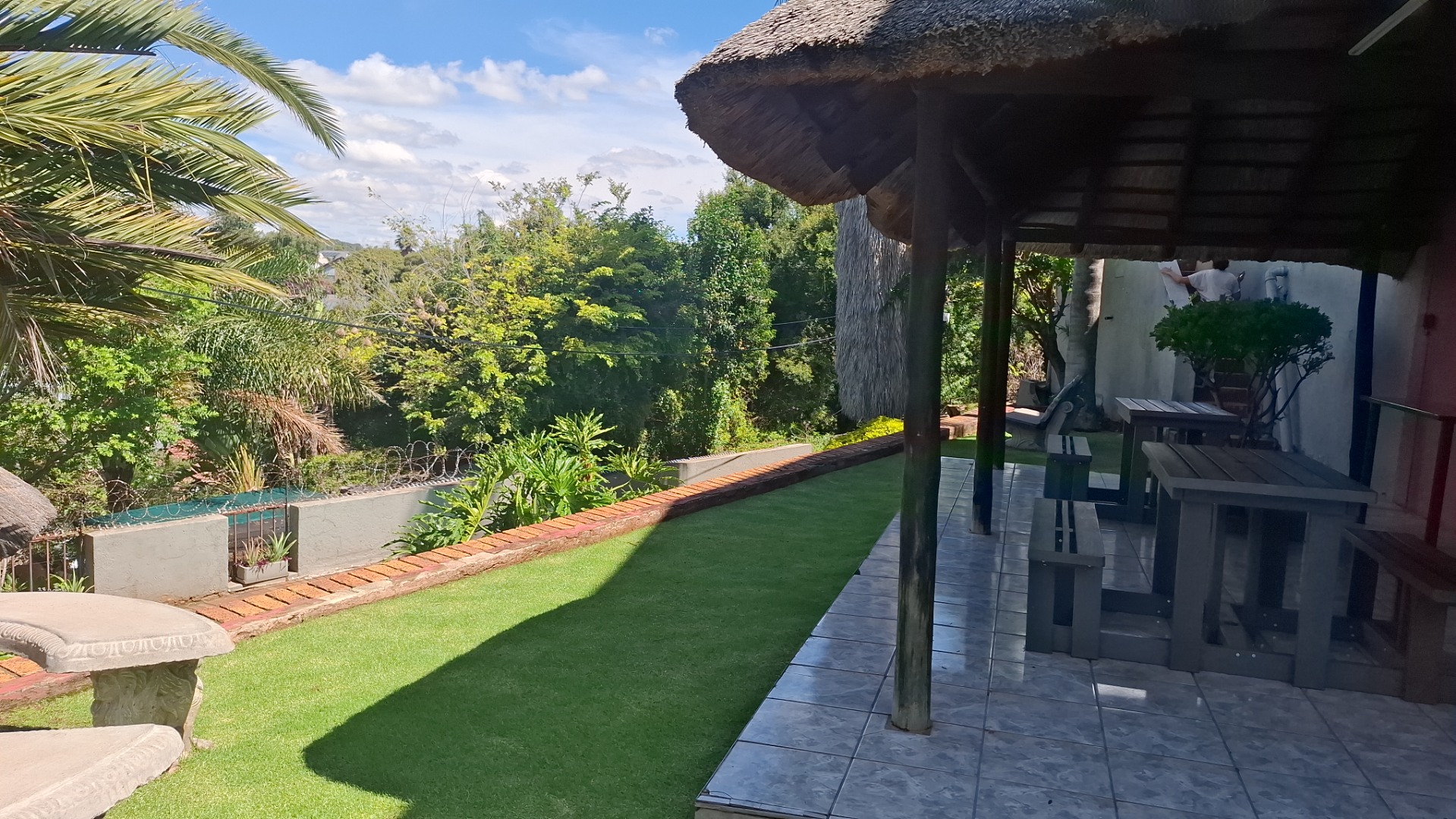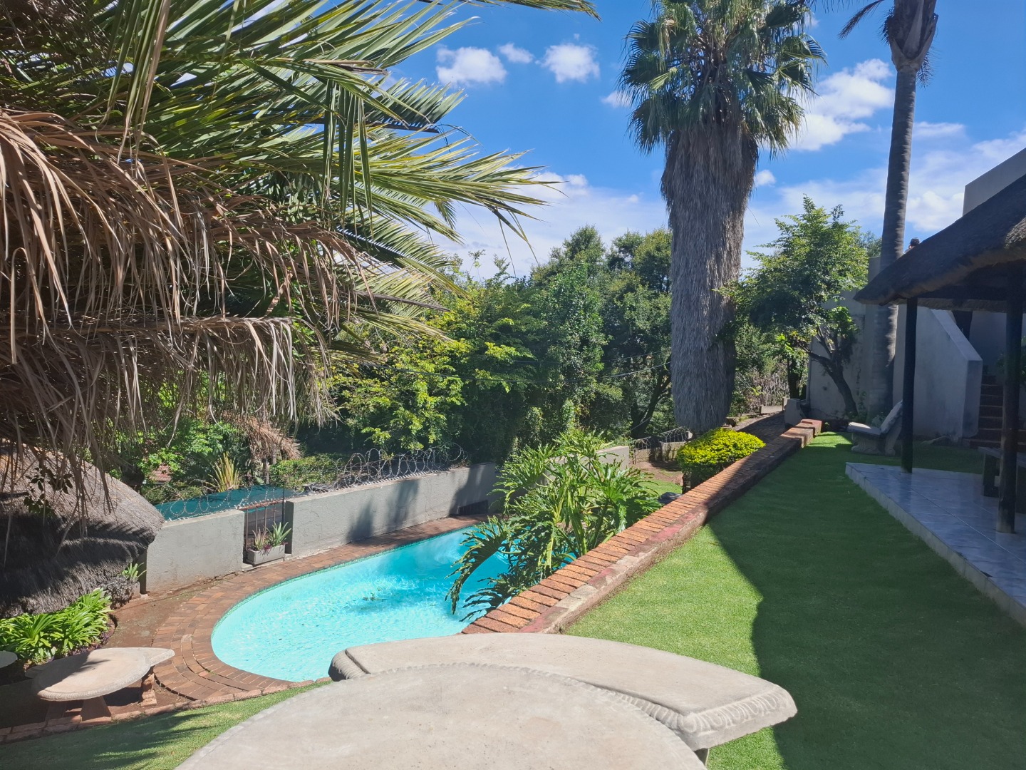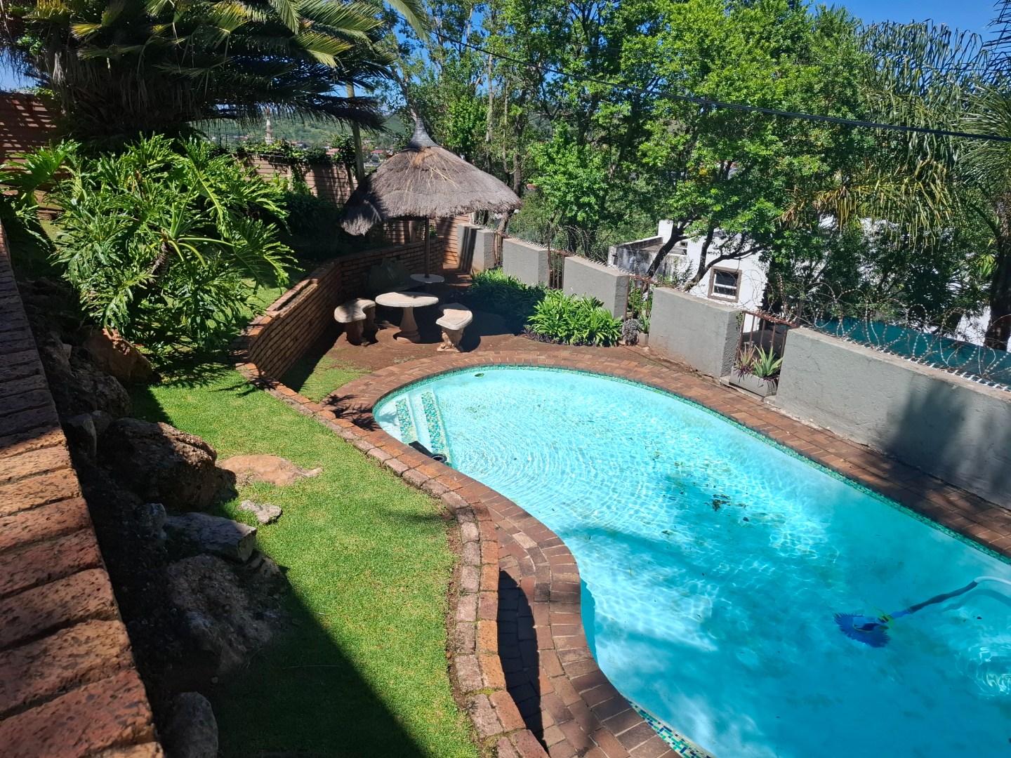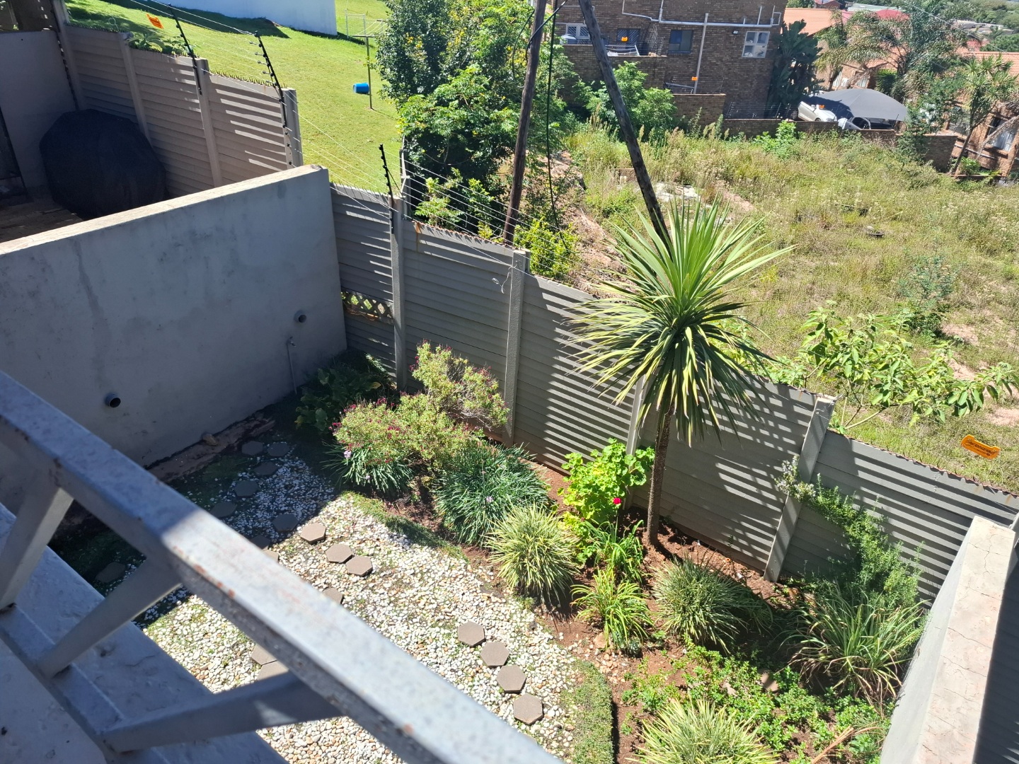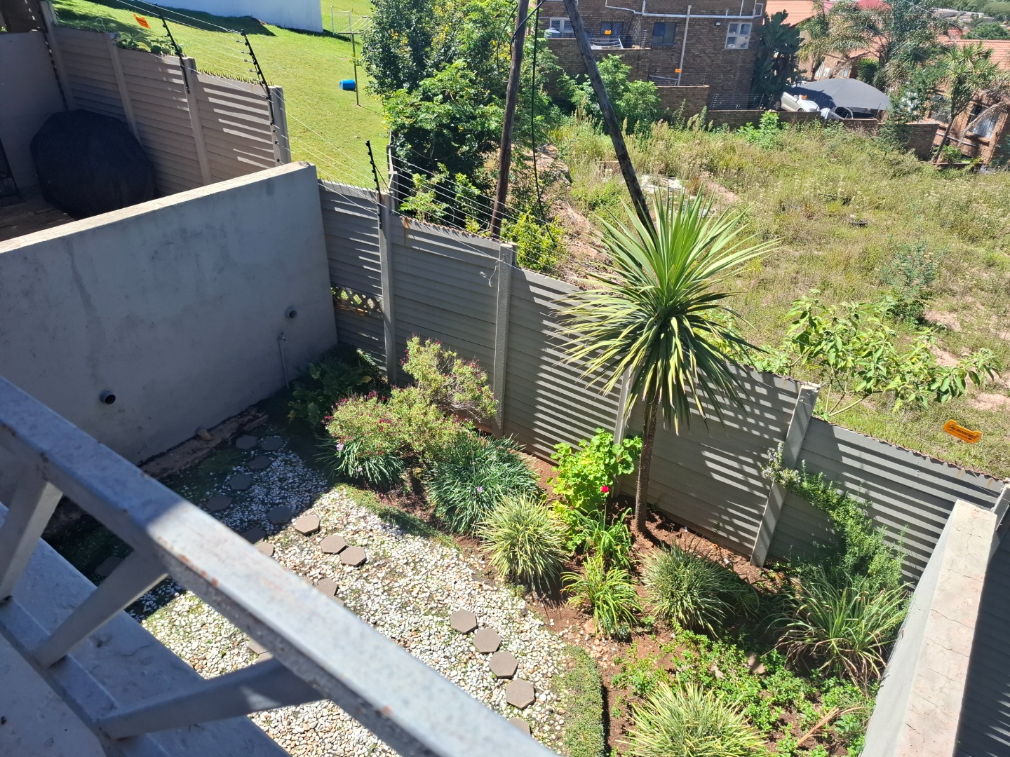 Discover modern living in this secure residential property located in the suburban heart of Ridgeway, Johannesburg. This contemporary home, part of a security complex and estate, offers a blend of comfort and peace of mind. The exterior features a cohesive architectural style with grey tones, complemented by paved driveways and dedicated covered parking bays, each secured with sliding gates and burglar bars for enhanced safety. Step inside to a well-appointed interior spanning 212 sqm. The residence boasts three comfortable bedrooms, including one with an ensuite bathroom, alongside 2.5 bathrooms designed for convenience. The layout includes a dedicated lounge, a dining room perfect for entertaining, and a family TV room, providing ample space for relaxation and daily activities. A functional kitchen completes the interior living spaces. Outdoor living is a highlight, with a private garden area featuring low-maintenance landscaping, decorative gravel, and stepping stones. Enjoy the fresh air and distant scenic views of the hills and surrounding residential area from your private balcony. The property also includes a pool, offering a refreshing escape. Two dedicated parking spaces ensure convenience for residents. Security is paramount within this gated community, featuring 24-hour security, an access gate, and electric fencing. Burglar bars and security gates on windows and doors further reinforce the secure environment, allowing residents to enjoy their home with confidence. This property offers a secure and comfortable lifestyle in a sought-after Johannesburg suburb. Key Features: * 3 Bedrooms, 2.5 Bathrooms (1 Ensuite) * 212 sqm Floor Size * Lounge, Dining Room, Family TV Room * Private Garden & Balcony with Scenic Views * Swimming Pool * 2 Parking Spaces (Carports) * Security Complex & Estate with 24-hour Security * Electric Fencing, Burglar Bars & Security Gates * Located in Ridgeway, Johannesburg