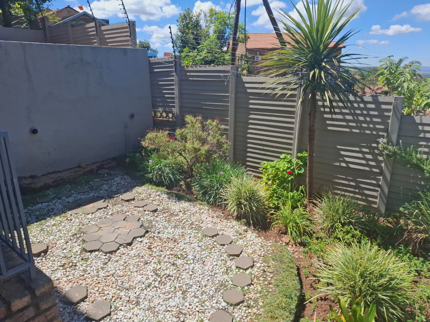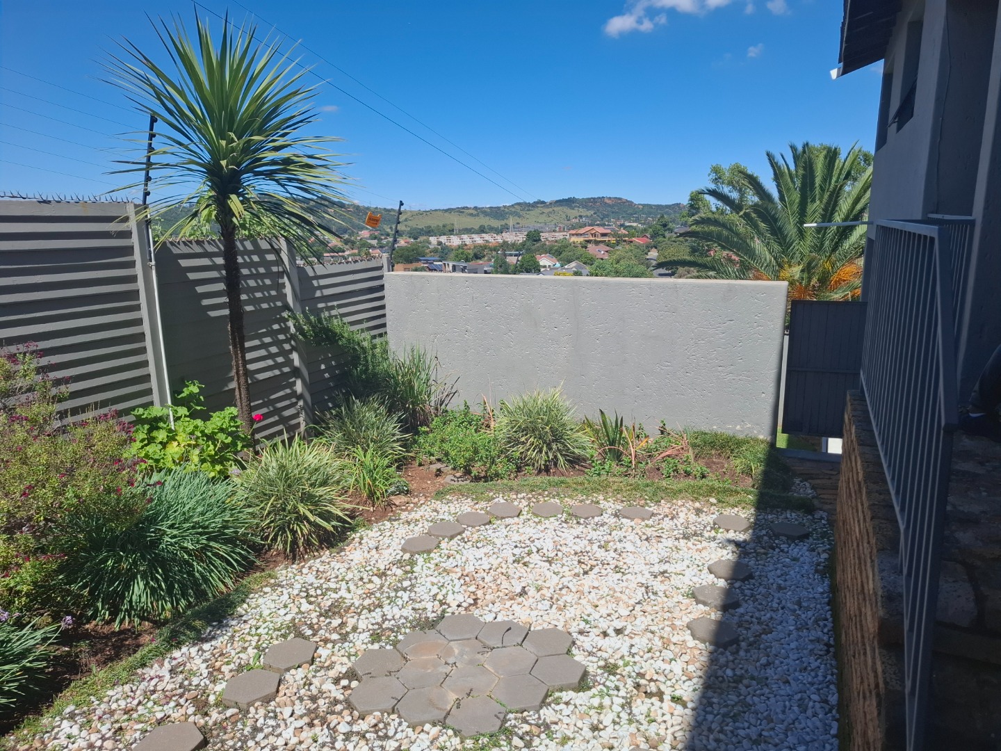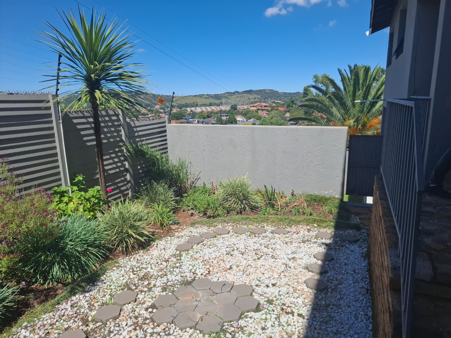 Discover modern living in this secure residential property located in the suburban heart of Ridgeway, Johannesburg. This contemporary home, part of a security complex and estate, offers a blend of comfort and peace of mind. The exterior features a cohesive architectural style with grey tones, complemented by paved driveways and dedicated covered parking bays, each secured with sliding gates and burglar bars for enhanced safety. Step inside to a well-appointed interior spanning 212 sqm. The residence boasts three comfortable bedrooms, including one with an ensuite bathroom, alongside 2.5 bathrooms designed for convenience. The layout includes a dedicated lounge, a dining room perfect for entertaining, and a family TV room, providing ample space for relaxation and daily activities. A functional kitchen completes the interior living spaces. Outdoor living is a highlight, with a private garden area featuring low-maintenance landscaping, decorative gravel, and stepping stones. Enjoy the fresh air and distant scenic views of the hills and surrounding residential area from your private balcony. The property also includes a pool, offering a refreshing escape. Two dedicated parking spaces ensure convenience for residents. Security is paramount within this gated community, featuring 24-hour security, an access gate, and electric fencing. Burglar bars and security gates on windows and doors further reinforce the secure environment, allowing residents to enjoy their home with confidence. This property offers a secure and comfortable lifestyle in a sought-after Johannesburg suburb. Key Features: * 3 Bedrooms, 2.5 Bathrooms (1 Ensuite) * 212 sqm Floor Size * Lounge, Dining Room, Family TV Room * Private Garden & Balcony with Scenic Views * Swimming Pool * 2 Parking Spaces (Carports) * Security Complex & Estate with 24-hour Security * Electric Fencing, Burglar Bars & Security Gates * Located in Ridgeway, Johannesburg