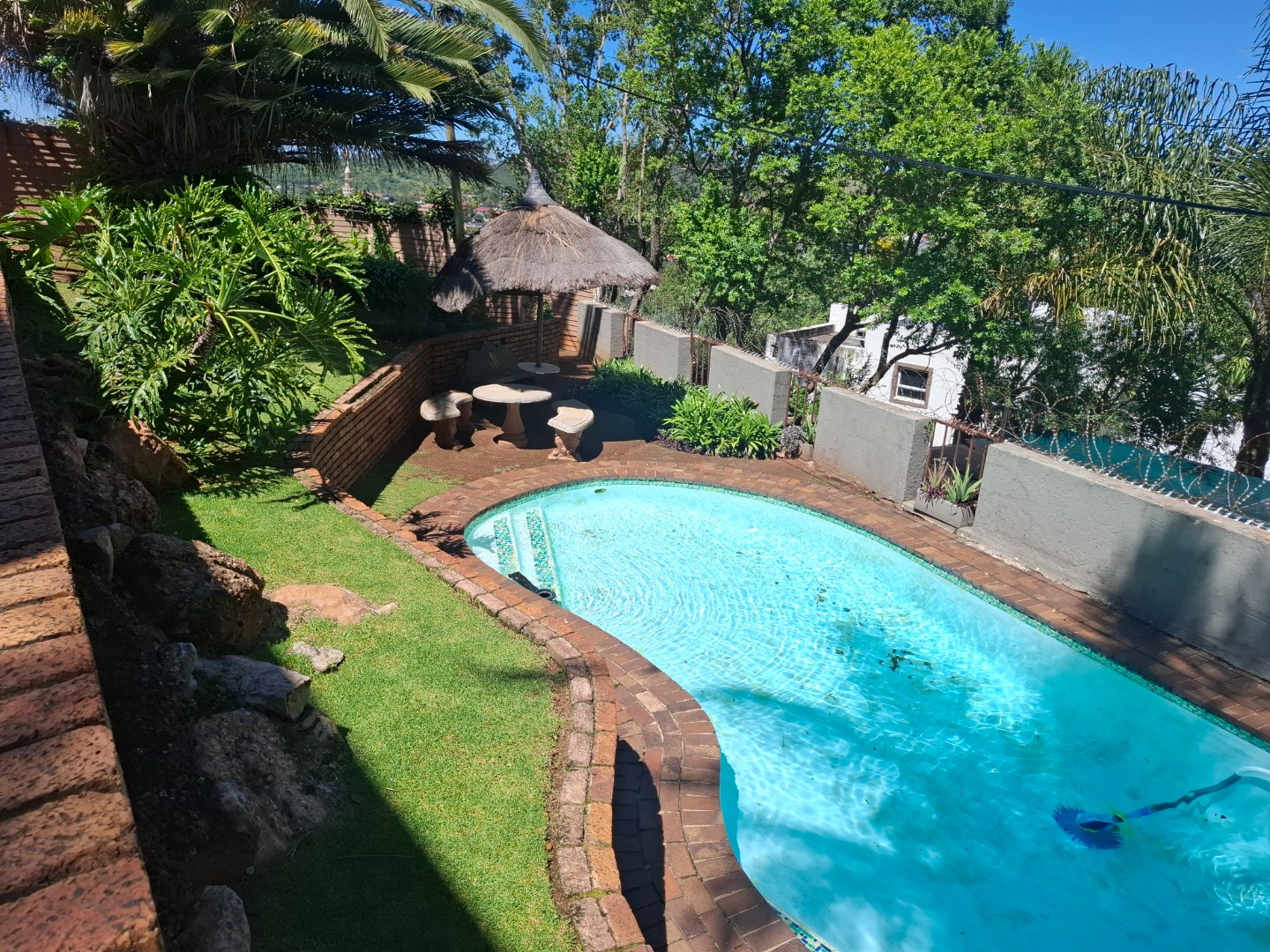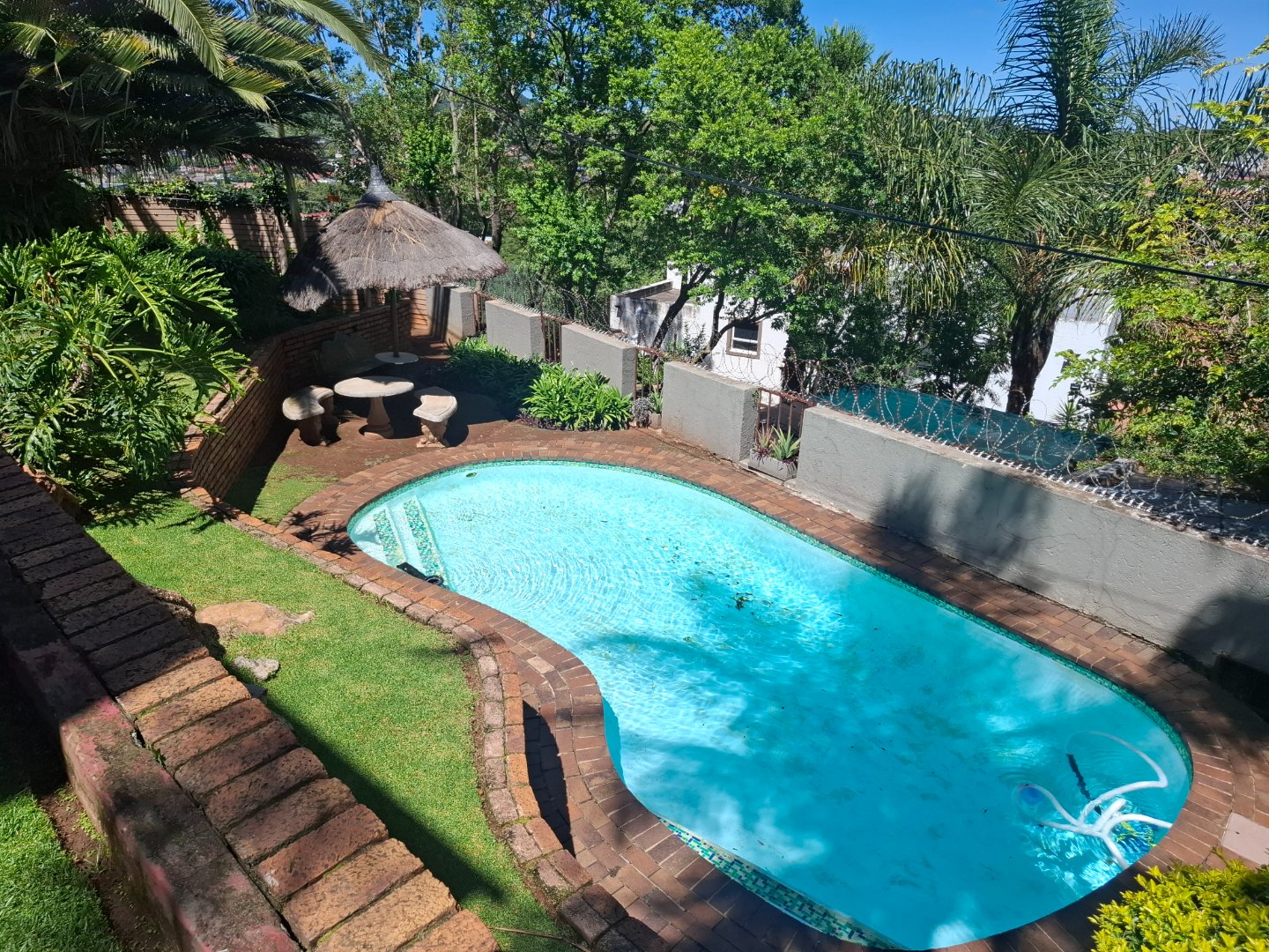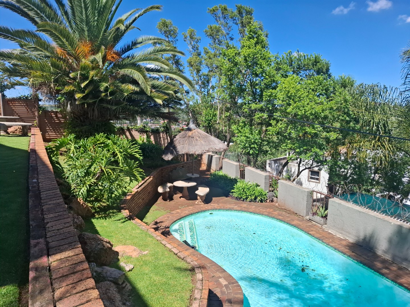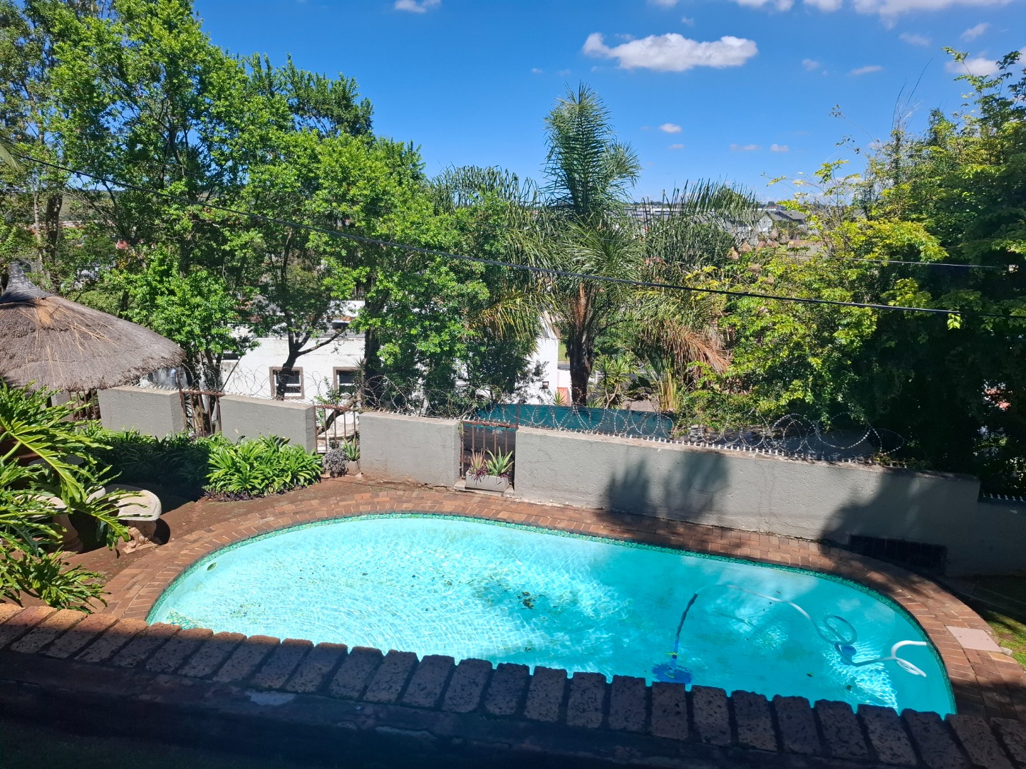 Discover modern living in this secure residential property located in the suburban heart of Ridgeway, Johannesburg. This contemporary home, part of a security complex and estate, offers a blend of comfort and peace of mind. The exterior features a cohesive architectural style with grey tones, complemented by paved driveways and dedicated covered parking bays, each secured with sliding gates and burglar bars for enhanced safety. Step inside to a well-appointed interior spanning 212 sqm. The residence boasts three comfortable bedrooms, including one with an ensuite bathroom, alongside 2.5 bathrooms designed for convenience. The layout includes a dedicated lounge, a dining room perfect for entertaining, and a family TV room, providing ample space for relaxation and daily activities. A functional kitchen completes the interior living spaces. Outdoor living is a highlight, with a private garden area featuring low-maintenance landscaping, decorative gravel, and stepping stones. Enjoy the fresh air and distant scenic views of the hills and surrounding residential area from your private balcony. The property also includes a pool, offering a refreshing escape. Two dedicated parking spaces ensure convenience for residents. Security is paramount within this gated community, featuring 24-hour security, an access gate, and electric fencing. Burglar bars and security gates on windows and doors further reinforce the secure environment, allowing residents to enjoy their home with confidence. This property offers a secure and comfortable lifestyle in a sought-after Johannesburg suburb. Key Features: * 3 Bedrooms, 2.5 Bathrooms (1 Ensuite) * 212 sqm Floor Size * Lounge, Dining Room, Family TV Room * Private Garden & Balcony with Scenic Views * Swimming Pool * 2 Parking Spaces (Carports) * Security Complex & Estate with 24-hour Security * Electric Fencing, Burglar Bars & Security Gates * Located in Ridgeway, Johannesburg