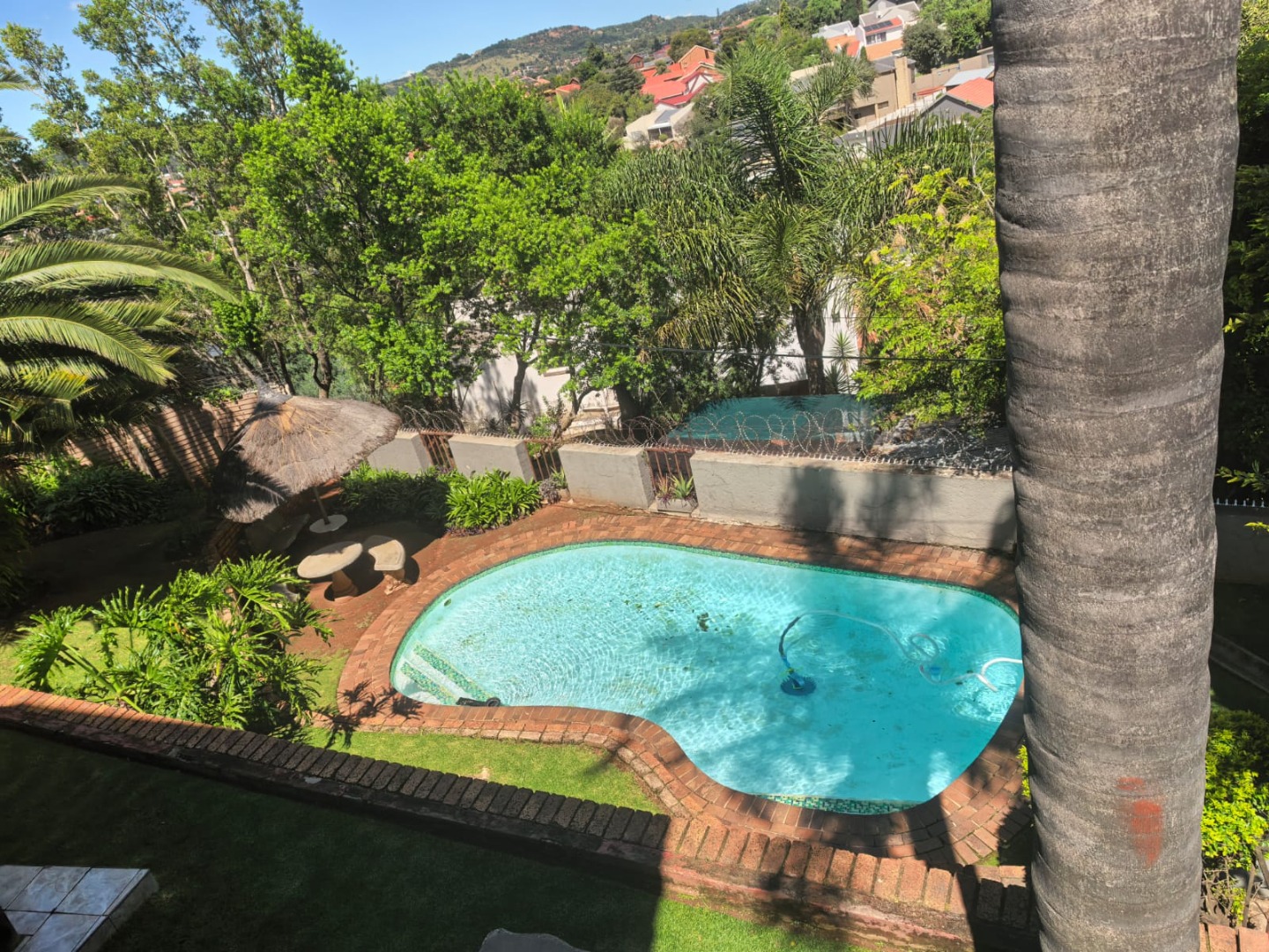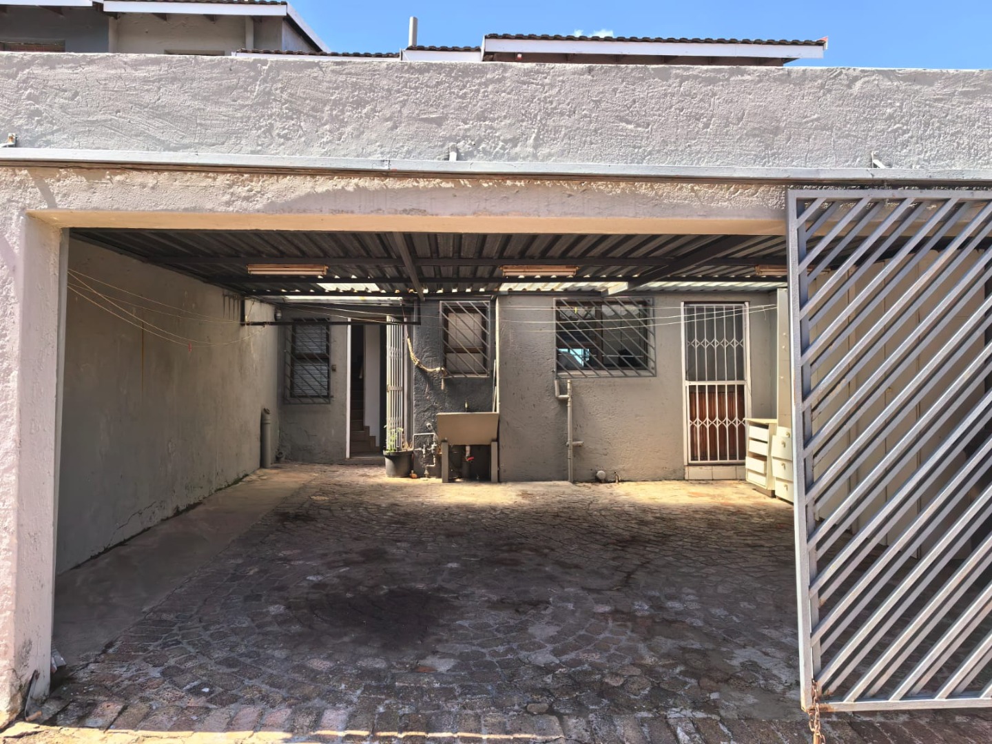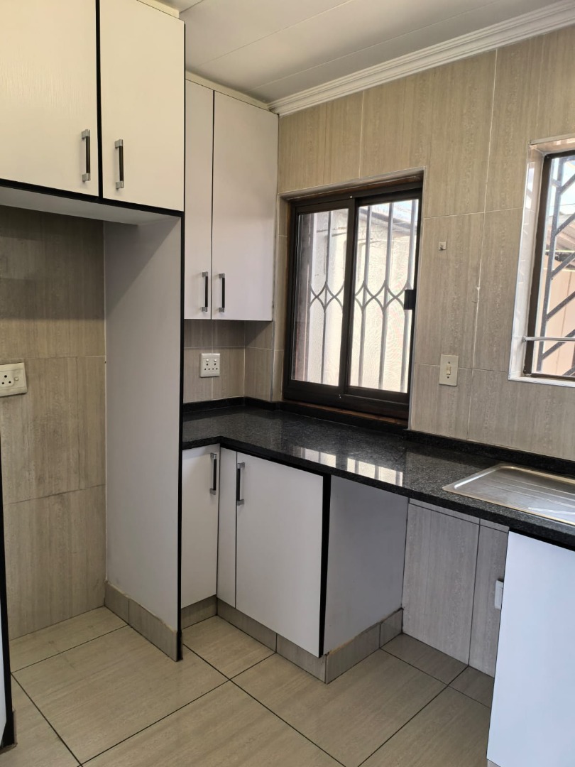 This inviting 3-bedroom, 2.5-bathroom residence is ideally located within a secure complex in Ridgeway, Johannesburg. The interior boasts a modern kitchen, featuring sleek white cabinetry, dark countertops, and integrated cooking appliances, all set against durable tiled floors and walls. A comfortable lounge area provides a welcoming space, while a functional wooden staircase connects the levels. Practical outdoor amenities include covered parking for two vehicles, secured by a sliding gate, and a paved exterior. A compact, low-maintenance garden offers scenic distant views. There is a communal pool in the complex with an entertainment and braai area. Enhanced security features, such as window bars and security gates, ensure peace of mind within this established community.
