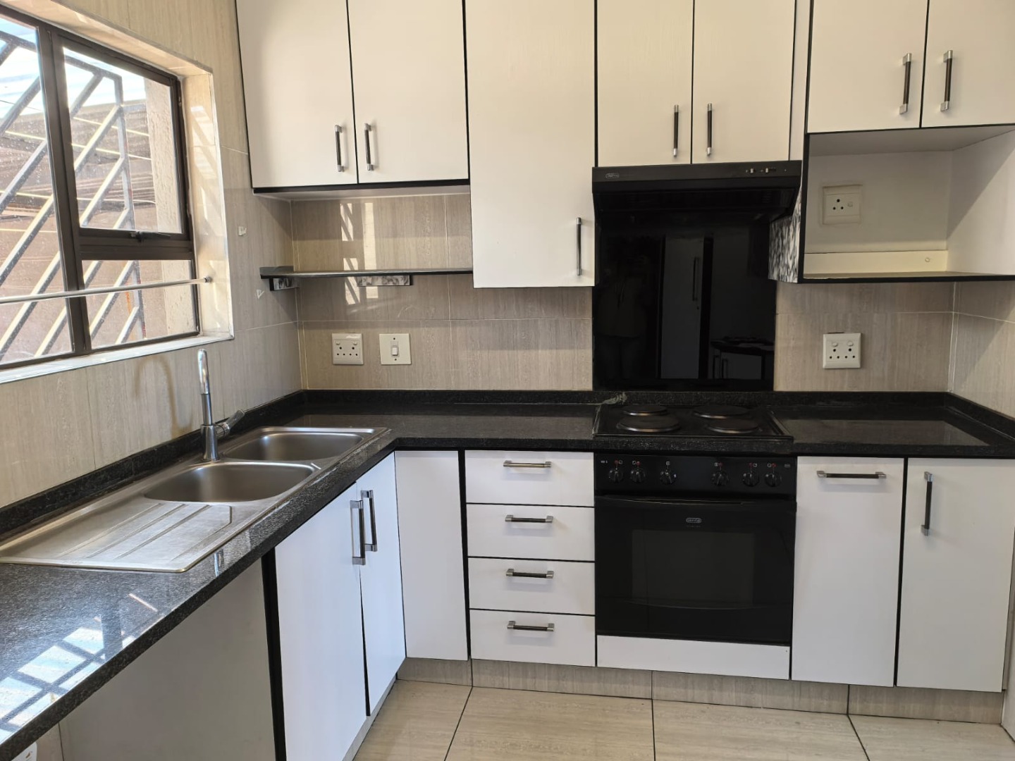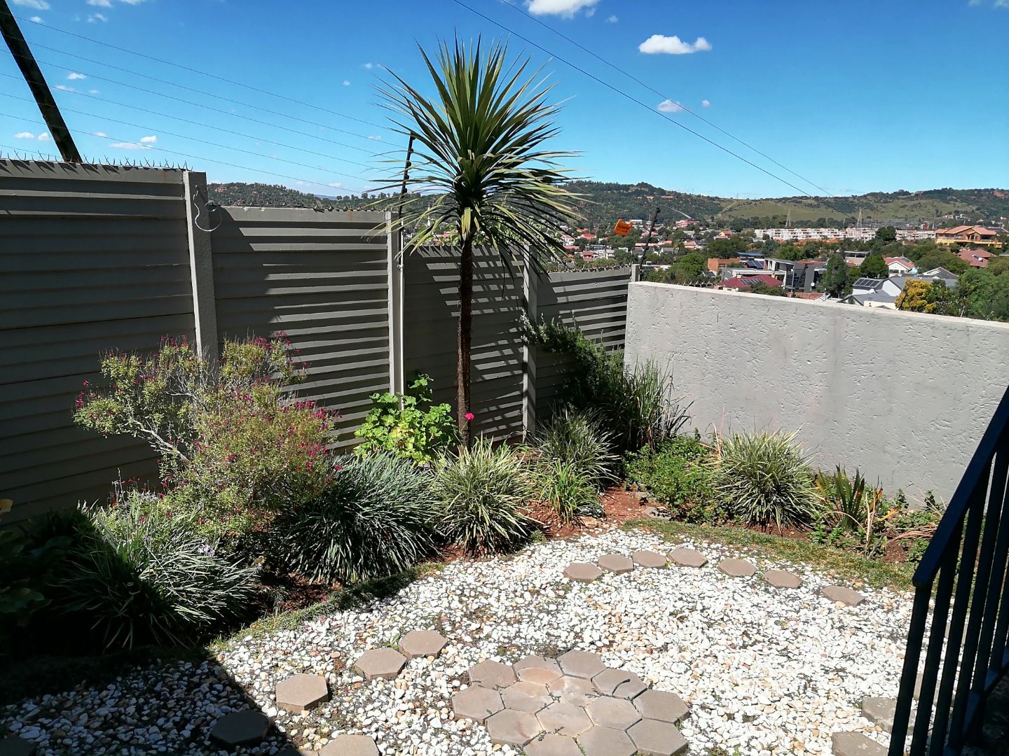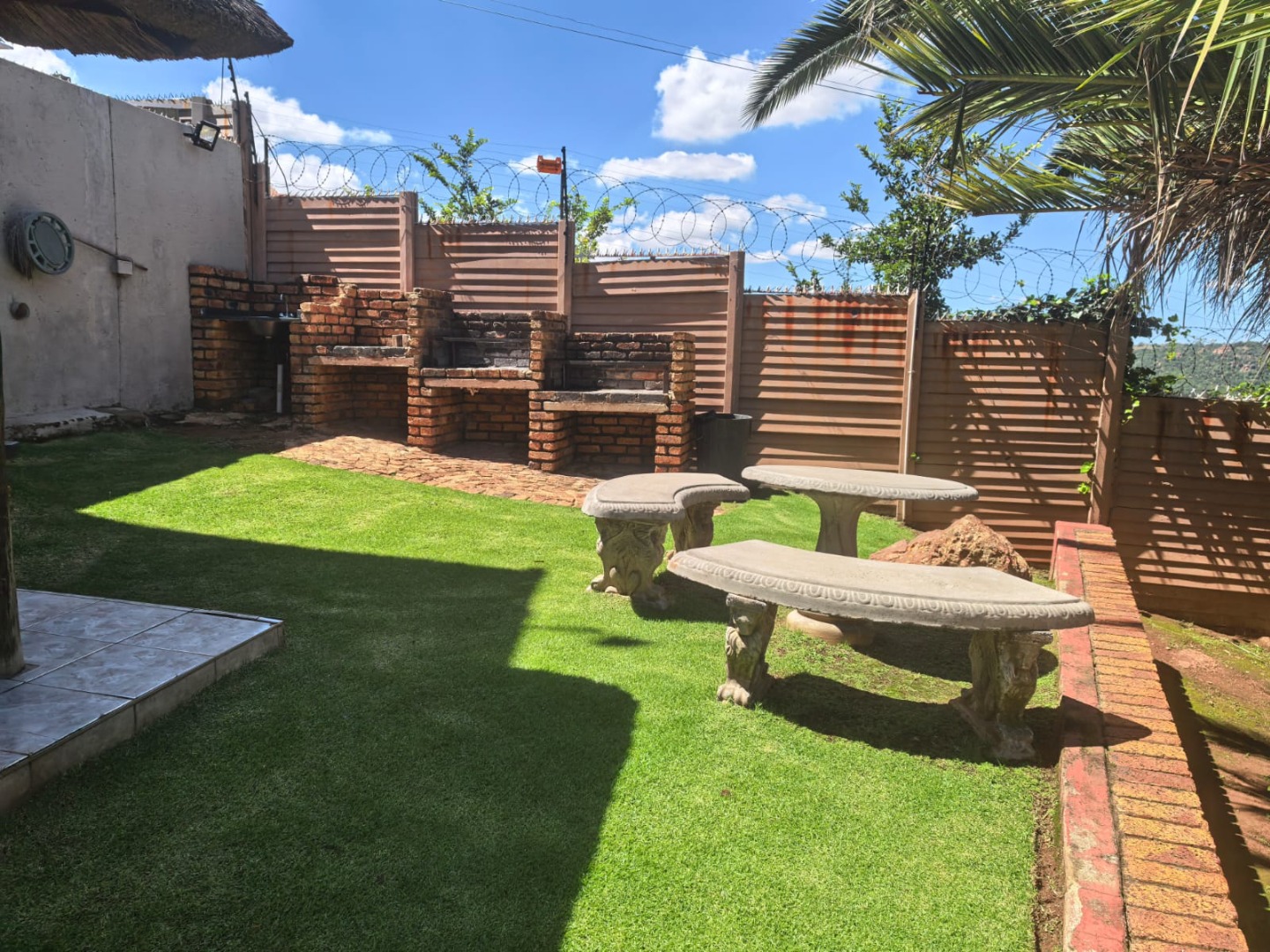 This inviting 3-bedroom, 2.5-bathroom residence is ideally located within a secure complex in Ridgeway, Johannesburg. The interior boasts a modern kitchen, featuring sleek white cabinetry, dark countertops, and integrated cooking appliances, all set against durable tiled floors and walls. A comfortable lounge area provides a welcoming space, while a functional wooden staircase connects the levels. Practical outdoor amenities include covered parking for two vehicles, secured by a sliding gate, and a paved exterior. A compact, low-maintenance garden offers scenic distant views. There is a communal pool in the complex with an entertainment and braai area. Enhanced security features, such as window bars and security gates, ensure peace of mind within this established community.