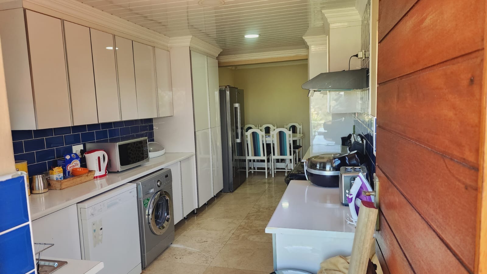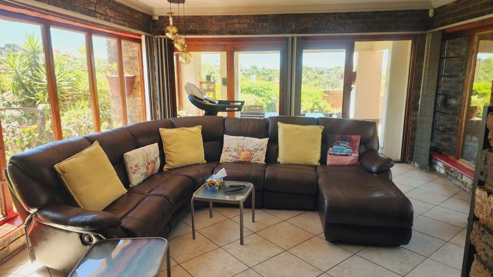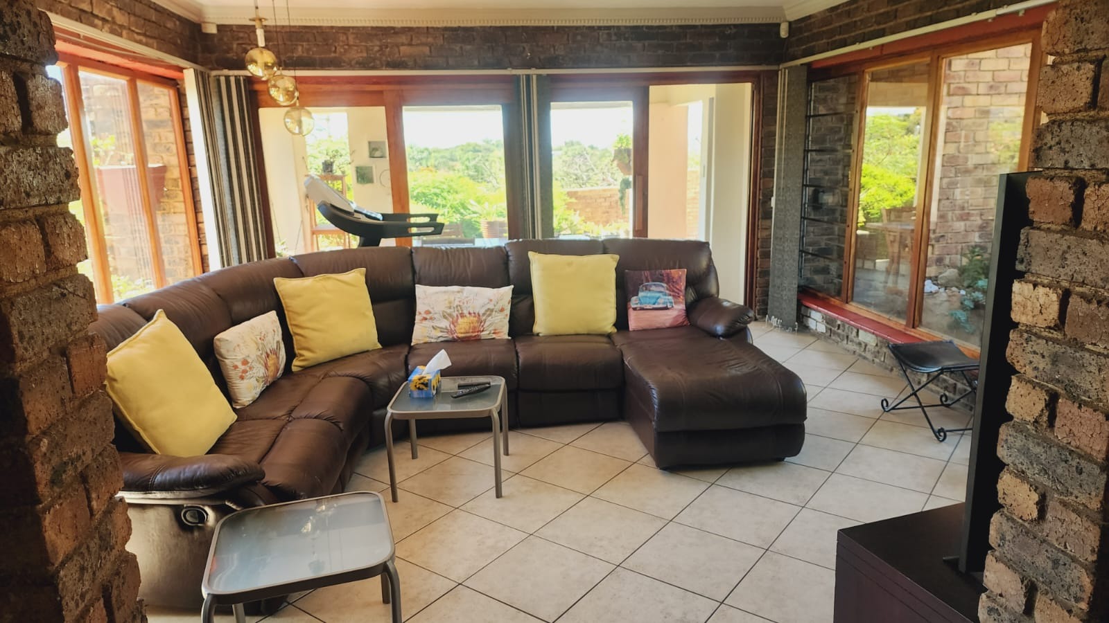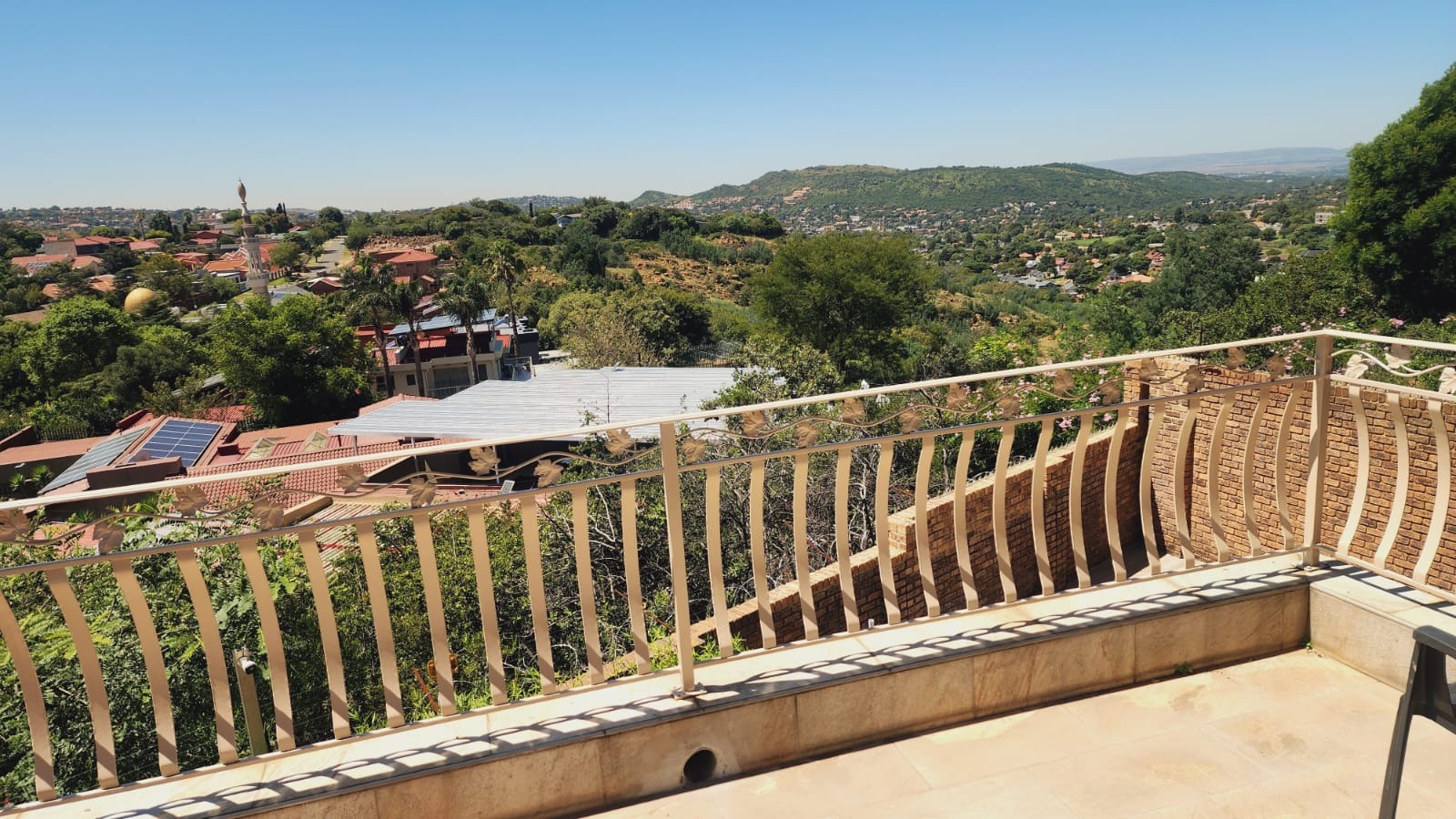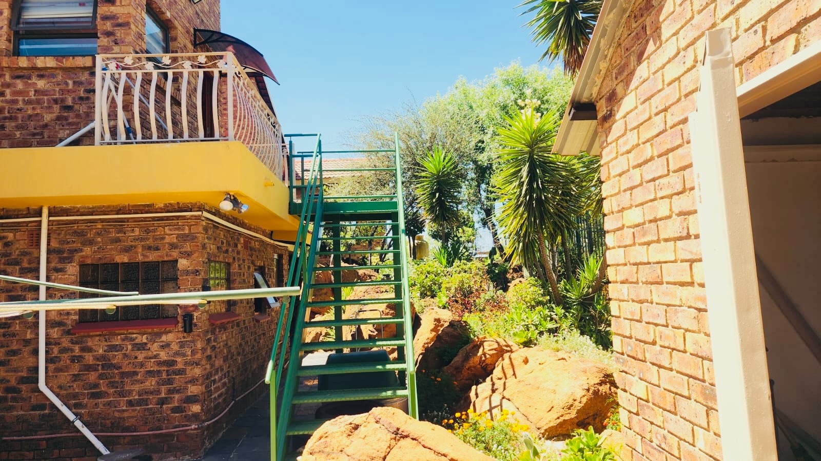Nestled in the vibrant Johannesburg suburb of Ridgeway, this multi-story brick residence offers a unique family lifestyle. The property immediately impresses with its extensive, lush terraced garden, featuring mature palm trees and distinctive stone landscaping. A prominent balcony complements the home's robust brick exterior, providing an inviting outdoor space. Inside, the spacious kitchen forms the heart of the home, boasting extensive wooden cabinetry, durable dark granite countertops, and a central island. A striking red retro-style range cooker and an exposed brick accent wall add character, complemented by a large stainless steel double fridge. The rustic charm continues into the dining area with exposed brick walls and an archway, while the living room is bathed in natural light from expansive windows, offering serene views and direct access to the outdoor entertainment area. Tiled flooring ensures easy maintenance throughout these communal spaces. This substantial home features five comfortable bedrooms and three and a half bathrooms, providing ample accommodation. Outside, a private oasis awaits with a clean, inviting swimming pool surrounded by a spacious brick-paved patio, ideal for relaxation and entertaining. Lush, mature tropical landscaping creates a tranquil backdrop, while a double garage provides secure parking and additional storage. Ridgeway is a well-established residential area in Johannesburg, South Africa, known for its family-friendly atmosphere and convenient access to local amenities. Key Features: * 5 Bedrooms, 3.5 Bathrooms * Spacious Kitchen with Island & Granite Countertops * Red Retro-Style Range Cooker * Exposed Brick Accent Walls * Lush Terraced Garden with Mature Palms * Inviting Swimming Pool & Brick Patio * Double Garage * Ample Natural Light * Integrated Security Monitoring