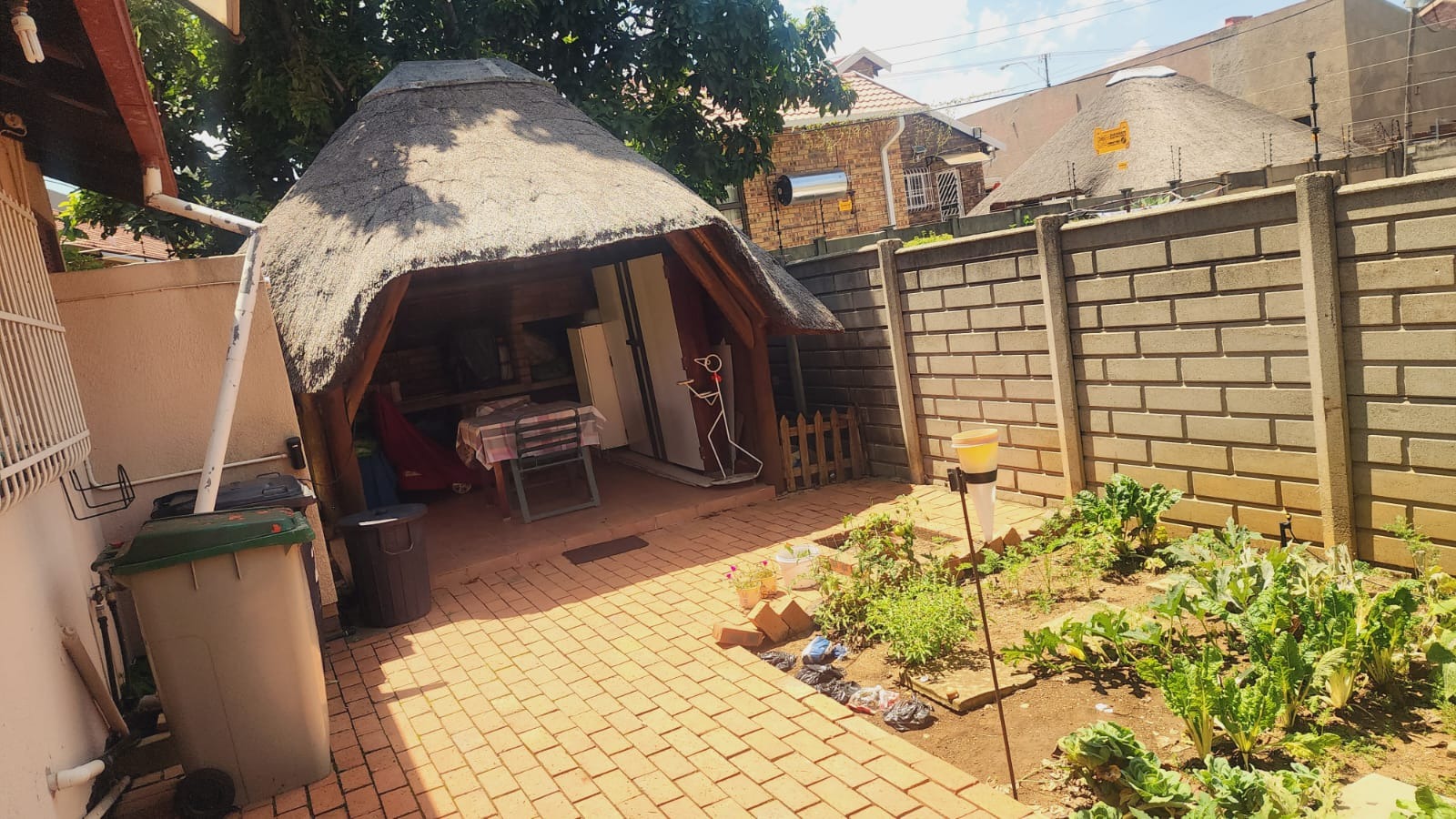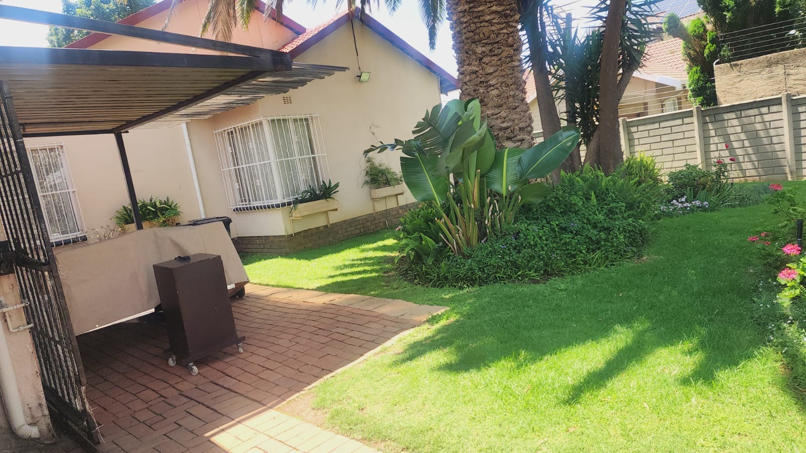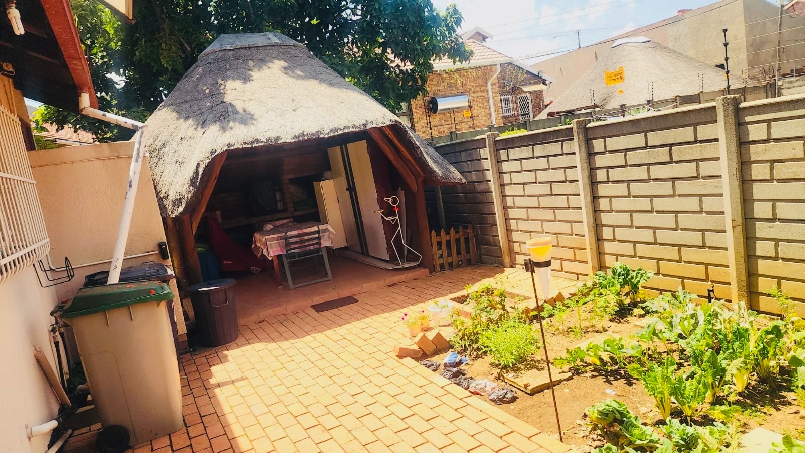 This inviting 3-bedroom, 2-bathroom residence is nestled in the established suburb of Suideroord, Johannesburg. The property immediately impresses with its well-maintained, lush green garden featuring mature trees and diverse plantings, creating a serene and private atmosphere. A precast perimeter wall, enhanced with electric fencing, ensures security and privacy, complemented by security bars on windows. The exterior showcases a light-colored house with a classic red-tiled roof, offering a welcoming curb appeal. A paved driveway leads to a covered carport, providing ample off-street parking. Inside, the home offers a functional layout designed for comfortable living. It comprises three spacious bedrooms and two bathrooms, catering to family needs. The living spaces include a dedicated lounge and a dining room, providing distinct areas for relaxation and entertaining. A well-appointed kitchen serves the home, ensuring practicality for daily routines. The outdoor areas are a true highlight, perfect for South African living. The expansive garden boasts vibrant greenery, including palm trees and blooming roses, alongside neatly mown lawns. Multiple paved patio areas offer versatile spaces for outdoor enjoyment, including a shaded outdoor patio with seating. A distinctive thatched lapa, complete with an integrated braai area, provides an ideal setting for entertaining guests or enjoying family meals al fresco. Security is a priority, with features such as electric fencing along the perimeter wall and security bars on windows, offering peace of mind. Located in Suideroord, this property benefits from its position within Johannesburg, providing convenient access to local amenities and transport routes. This suburban setting offers a balanced lifestyle, combining residential tranquility with urban accessibility. Key Features: * 3 Bedrooms, 2 Bathrooms * 1 Lounge, 1 Dining Room, 1 Kitchen * Lush, established garden with mature trees * Thatched lapa with integrated braai * Paved patio areas and driveway * 2 Garages, 4 Parking spaces * Electric fencing and security bars * Erf Size: 558 sqm