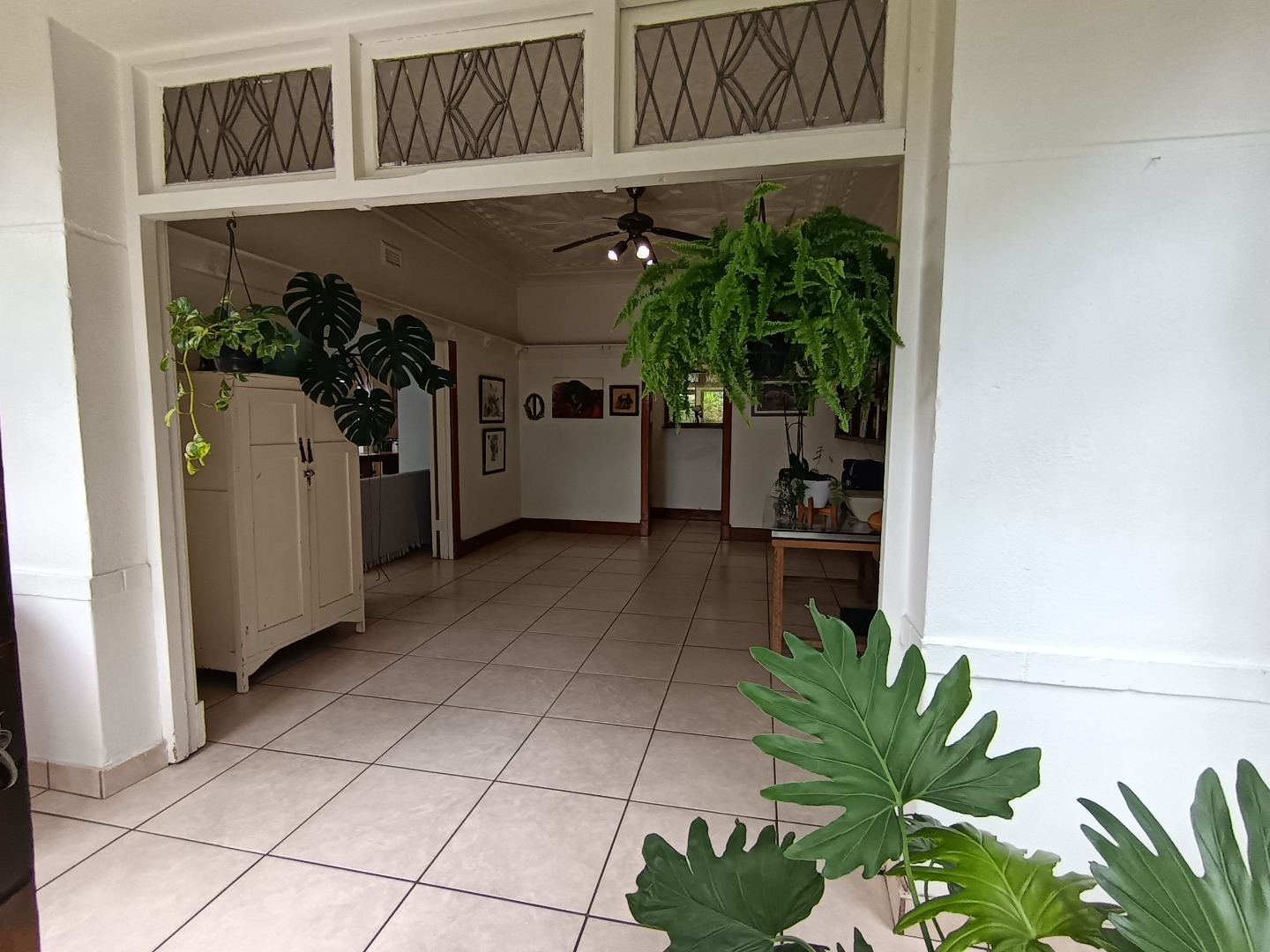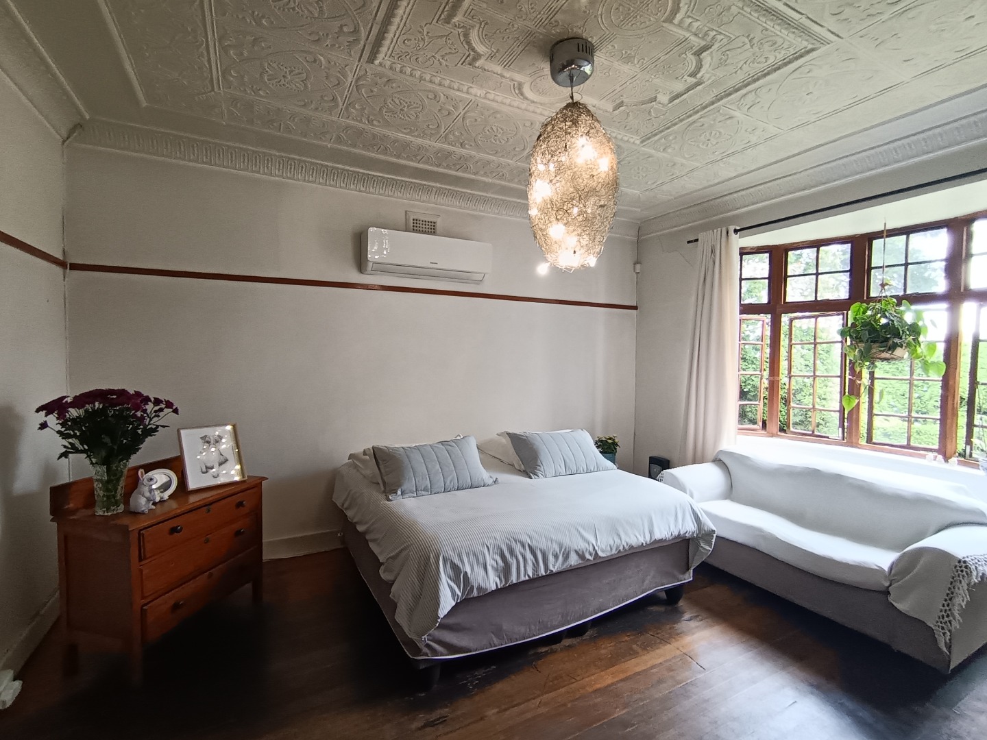 This charming 3-bedroom, 2-bathroom residence is set on a generous 1325 sqm erf in The Hill, Johannesburg. The property boasts excellent kerb appeal with a secure perimeter, featuring high walls, electric fencing, and an access gate. A paved driveway leads to convenient parking, complementing the traditional house exterior with its distinctive red roof, white facade, and attractive brick accents. An established garden with mature trees enhances the inviting first impression. Inside, the spacious 314 sqm floor plan offers comfortable living. Light-colored tiled flooring flows throughout, leading from an entrance hall into the main living areas. The lounge features a charming fireplace and a prominent bay window, ensuring ample natural light. A dedicated dining room connects to the kitchen, which includes a pantry. The home provides three well-proportioned bedrooms and two bathrooms, with one being an ensuite, alongside a guest toilet. Outdoor living is well-catered for with a private patio, a refreshing swimming pool, and a lapa, ideal for entertaining. The expansive garden provides ample space for outdoor activities, and pets are allowed. Practical amenities include a laundry area, air conditioning, staff quarters with domestic rooms, and a family TV room. Visible solar panels contribute to potential energy efficiency, and scenic views can be enjoyed. Key Features: * 3 Bedrooms, 2 Bathrooms (1 Ensuite) * 1 Lounge, 1 Dining Room, 1 Kitchen with Pantry * 1325 sqm Erf, 314 sqm Floor Size * Swimming Pool, Patio, Lapa, Garden * Fireplace, Air Conditioning, Decorative Ceilings * Staff Quarters, Laundry, Guest Toilet * Electric Fencing, Access Gate, Paved Driveway * Scenic Views, Pets Allowed, Solar Panels