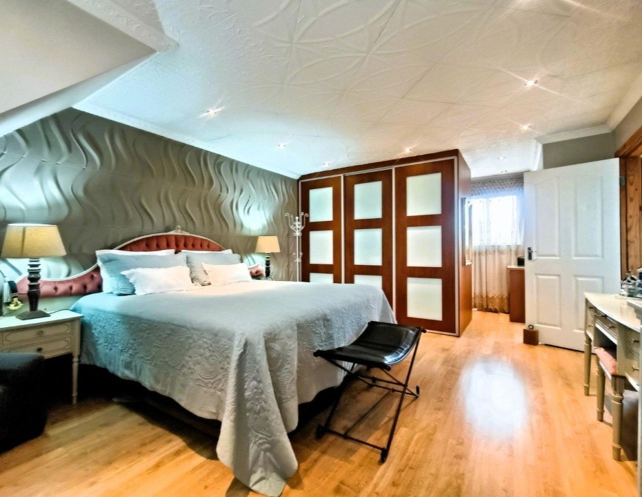 Accommodation comprises five generously proportioned bedrooms, providing ample space for family and guests, serviced by two elegantly finished bathrooms. Outside, the property transforms into a private oasis, featuring a sparkling swimming pool set within a meticulously maintained garden. Extensive paving enhances the outdoor aesthetic, while a secure fence and total perimeter walling ensure utmost privacy and peace of mind. Further enhancing the property's appeal are a dedicated garage and two additional parking spaces, catering to all vehicular needs.