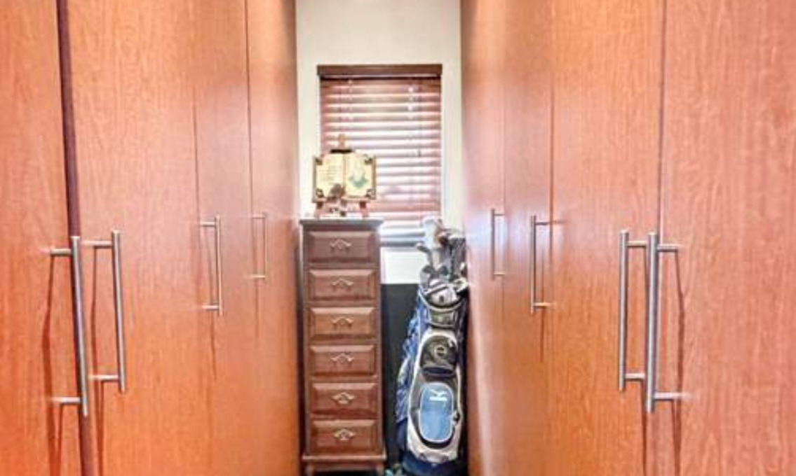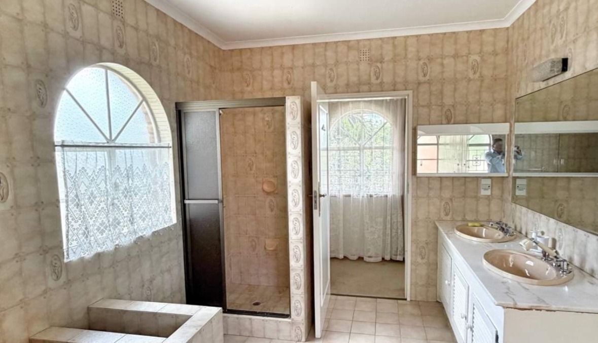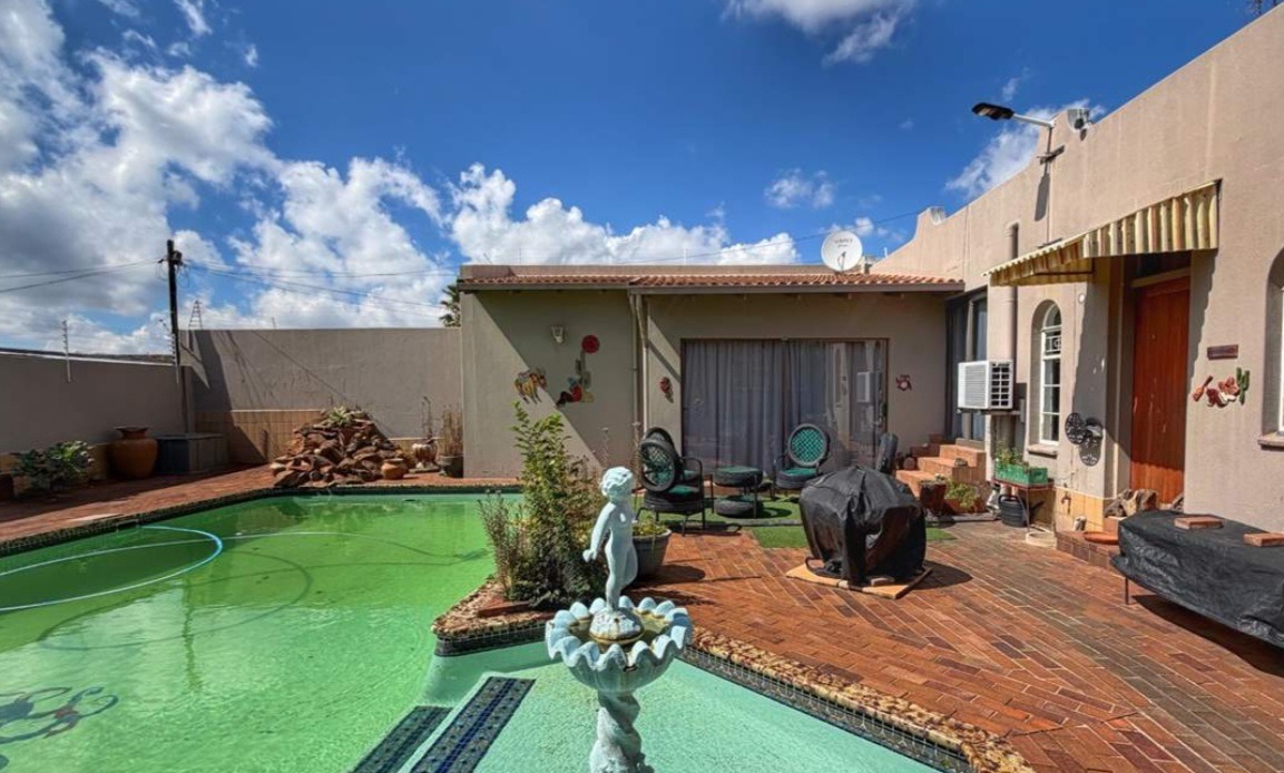 Step inside to discover an abundance of meticulously crafted living spaces, including two opulent lounges, a formal dining room, and a dedicated family TV room. A private study offers a tranquil retreat, while a well-appointed pantry and laundry ensure seamless daily living. The five generously proportioned bedrooms are complemented by two exquisitely finished bathrooms. Outdoors, a sparkling swimming pool, expansive deck, and dedicated braai room create an idyllic setting for al fresco entertaining. The beautifully landscaped garden, complete with a borehole, provides a verdant backdrop, while electric fencing ensures privacy.