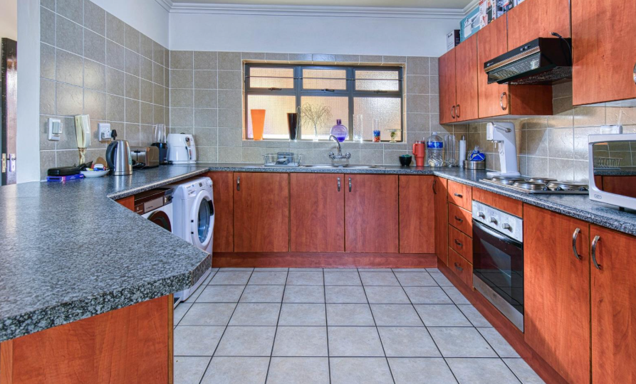 Contemporary kitchen with ample cupboard space and room for all appliances