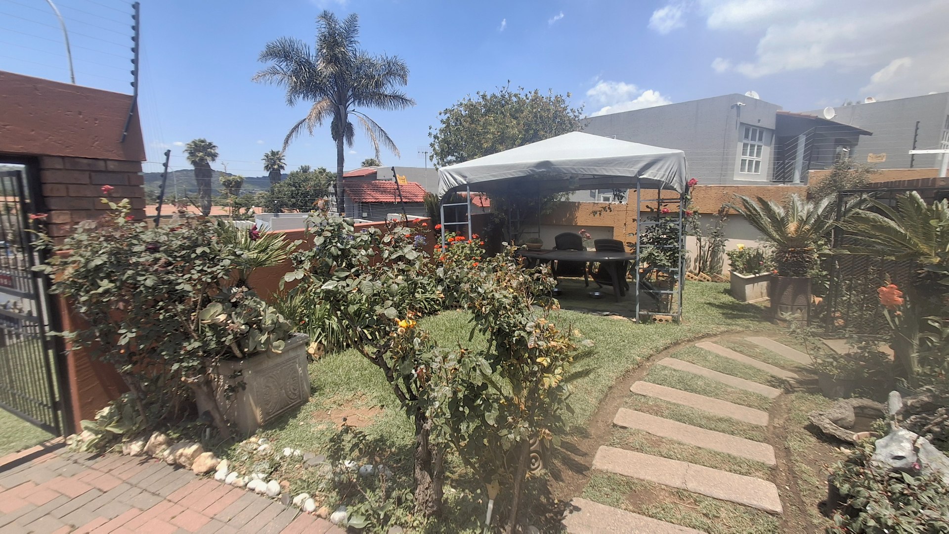 Outdoors, the property shines with a lush, well?maintained garden filled with roses, palms, and tranquil pathways. A shaded gazebo offers the perfect setting for gatherings or quiet moments, while three garages provide secure parking and storage. With an Erf size of 1080 sqm and a floor size of 390 sqm, this home offers generous outdoor and indoor living.