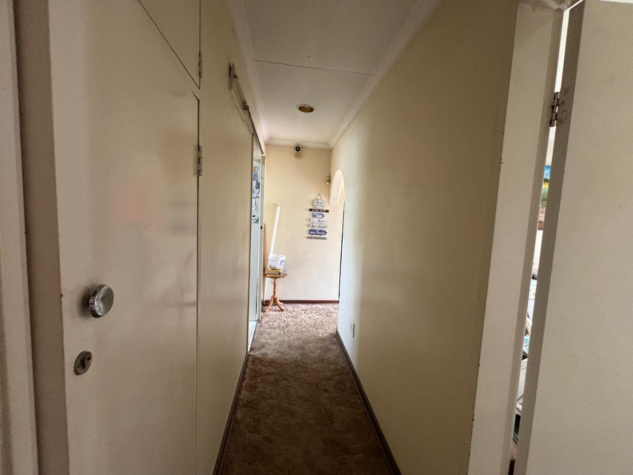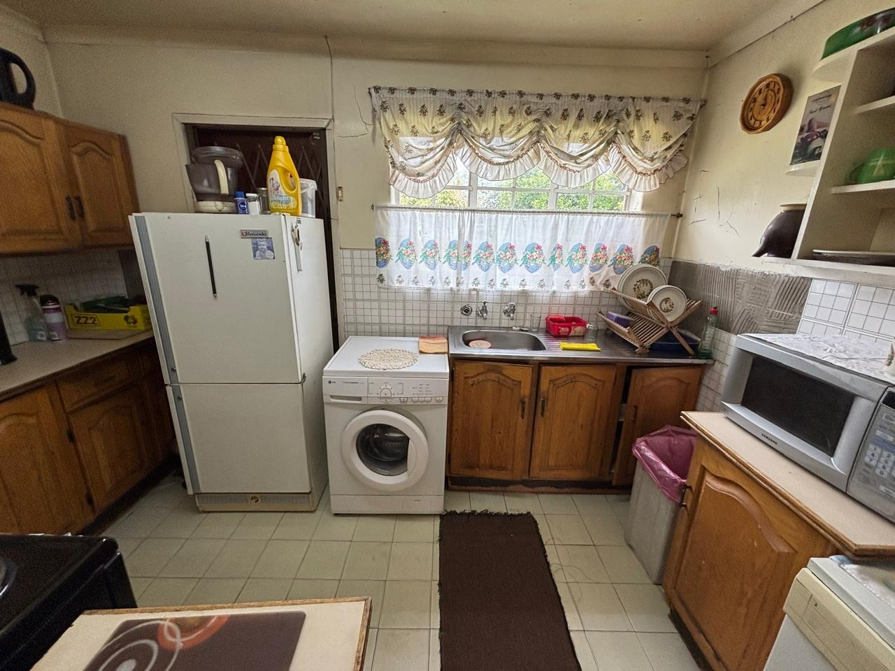The functional kitchen offers ample space for two appliances. The lounge and dining room areas are bathed in natural sunlight, creating a warm and inviting atmosphere. Parking is generous, with a single garage, a double carport, and additional space for vehicles.