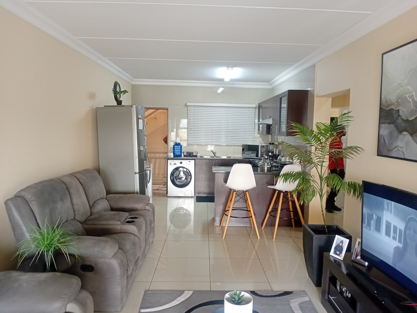 The home features three spacious bedrooms, all fitted with built-in cupboards (BIC), with the main bedroom boasting a private en-suite bathroom. The modern kitchen comes equipped with stylish built-in cupboards, flowing seamlessly into a welcoming lounge and dining area—perfect for everyday living and entertaining.
