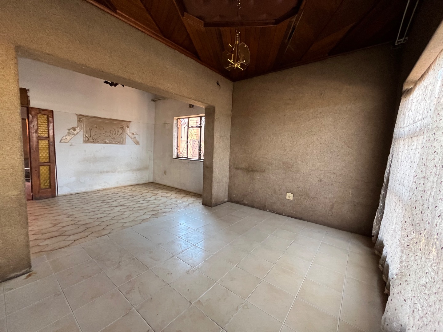 Upon entering, you are welcomed into the kitchen area, which is not yet fitted, allowing the new owner to customise it to their taste. The kitchen flows into a large dining room and lounge, both offering generous living space. The ceilings throughout the home are in excellent condition.