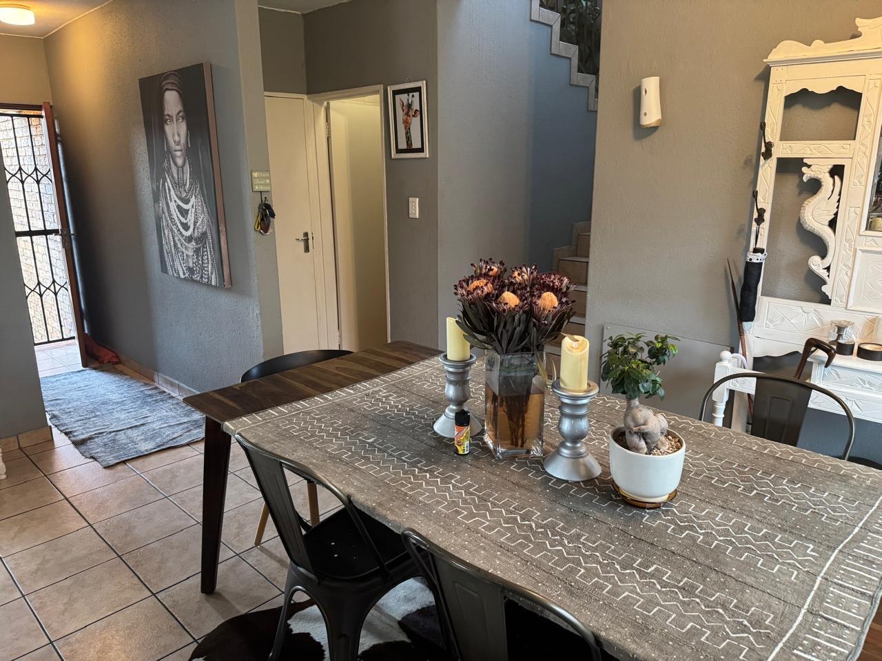 Come and see this lovely two-story home in the heart of Glen Marais, Kempton Park! Right from the start, you'll notice its neat brick and beige facade, topped with a classic red tiled roof. The paved driveway leads to an integrated double garage, offering plenty of space for your vehicles and extra storage. The well-maintained front garden adds a welcoming touch, giving this suburban gem great kerb appeal. Step inside and discover a comfortable, open-plan living space that's perfect for everyday life and entertaining. The lounge area features a modern dark accent wall, ideal for your wall-mounted TV, and flows seamlessly into the dining area. The kitchen, while boasting a classic wood-tone cabinet style, is super functional with an integrated electric hob and oven, ample storage, and even space for your washing machine. You'll also find a convenient guest toilet on this level. Upstairs, you'll find three cozy bedrooms, providing a peaceful retreat for everyone. The main bedroom comes with its own en-suite bathroom, and there's an additional full bathroom to share, making busy mornings a breeze. With 2.5 bathrooms in total, comfort is key. One of the best features is the direct access from the living area to a private garden and patio through sliding doors. This outdoor space is perfect for relaxing or hosting a braai with friends, thanks to the built-in braai. Pets are allowed, so your furry friends can enjoy the garden too! Plus, you'll appreciate the scenic view from your new home. Security is well taken care of in this security complex, with features like an access gate, electric fencing, intercom, 24-hour security, burglar bars, and a security gate, giving you peace of mind. The property is also fibre-ready, ensuring you stay connected. This home offers a fantastic metropolitan lifestyle with all the essentials for comfortable living. Key Features: * 3 Bedrooms, 2.5 Bathrooms (1 en-suite) * Open-plan living with family TV room and dining area * Functional kitchen with integrated hob and oven * Double garage and paved driveway * Private garden with built-in braai and patio * Security complex with 24-hour security and electric fencing * Fibre-ready connectivity * Pets allowed
