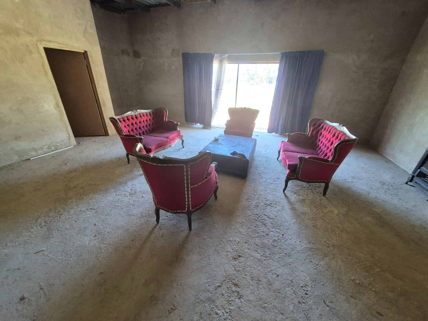 Nestled in the tranquil Valley Settlements AH, Meyerton, this expansive property offers a unique opportunity for development in a serene, semi-rural environment. This substantial plot provides a blank canvas for those seeking to create a bespoke residence tailored to their exact specifications. The property presents multiple single-story structures on an impressive 40471 sqm erf. While currently unfinished with unpainted plastered walls and corrugated iron roofs, the modern architectural style of the main dwelling is evident. This allows for a personalised completion of its exterior aesthetic, promising significant kerb appeal once finished. Inside, the main residence boasts a generous layout with four lounges and two dining rooms, providing ample space for family living and entertaining. The kitchen is partially fitted with extensive white cabinetry, black countertops, and essential appliances including a built-in oven, microwave, and two large refrigerators. However, the interiors are largely unfinished, featuring exposed ceiling joists, unplastered walls, and concrete floors, offering a unique opportunity to design and finish to your exact specifications. The home is designed with four bedrooms and three bathrooms, two of which are en-suite, ensuring comfort and privacy. These spaces, like the rest of the interior, await the final touches to transform them into personalised sanctuaries. Set on an impressive 40471 sqm plot, the outdoor space offers vast potential for landscaping and development. The property includes two garages and an exceptional 30 open parking spaces, catering to extensive vehicle accommodation. Additionally, there are domestic rooms, outside toilets, and a unique traditional thatched-roof structure, adding character and versatility to this expansive rural setting. Sustainability is enhanced by the presence of a borehole, providing a valuable water source for future landscaping and household needs. Pets are allowed, making it ideal for animal lovers. Key Features: * 4 Bedrooms, 3 Bathrooms (2 en-suite) * 4 Lounges, 2 Dining Rooms * Expansive 40471 sqm Erf * 2 Garages, 30 Parking Spaces * Borehole for water resilience * Domestic Rooms & Outside Toilets * Unfinished interiors, ready for customisation * Rural setting in Meyerton