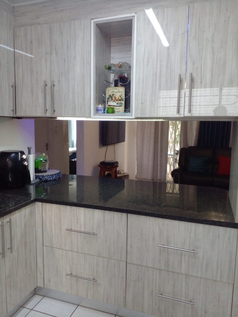 Discover modern living in this appealing 2-bedroom apartment within the secure Ille de Capri complex in Vorna Valley, Midrand. This multi-story development features a contemporary grey exterior, enhanced by high perimeter walls, security spikes, and electric fencing, ensuring peace of mind. Paved access and mature trees complete the setting.