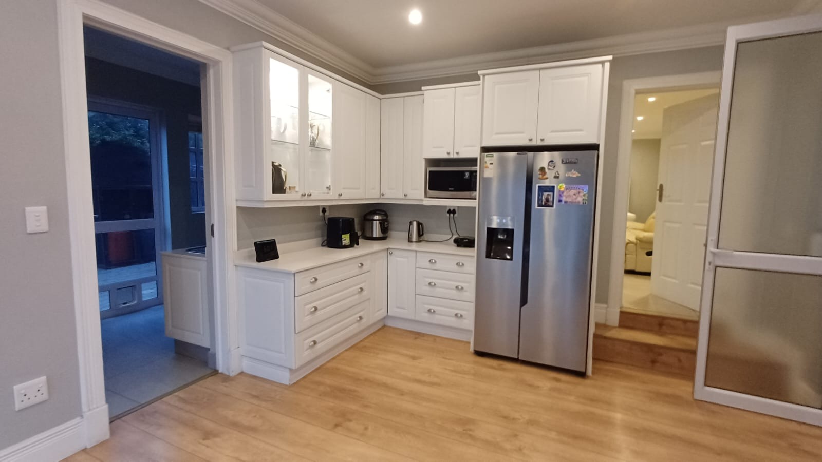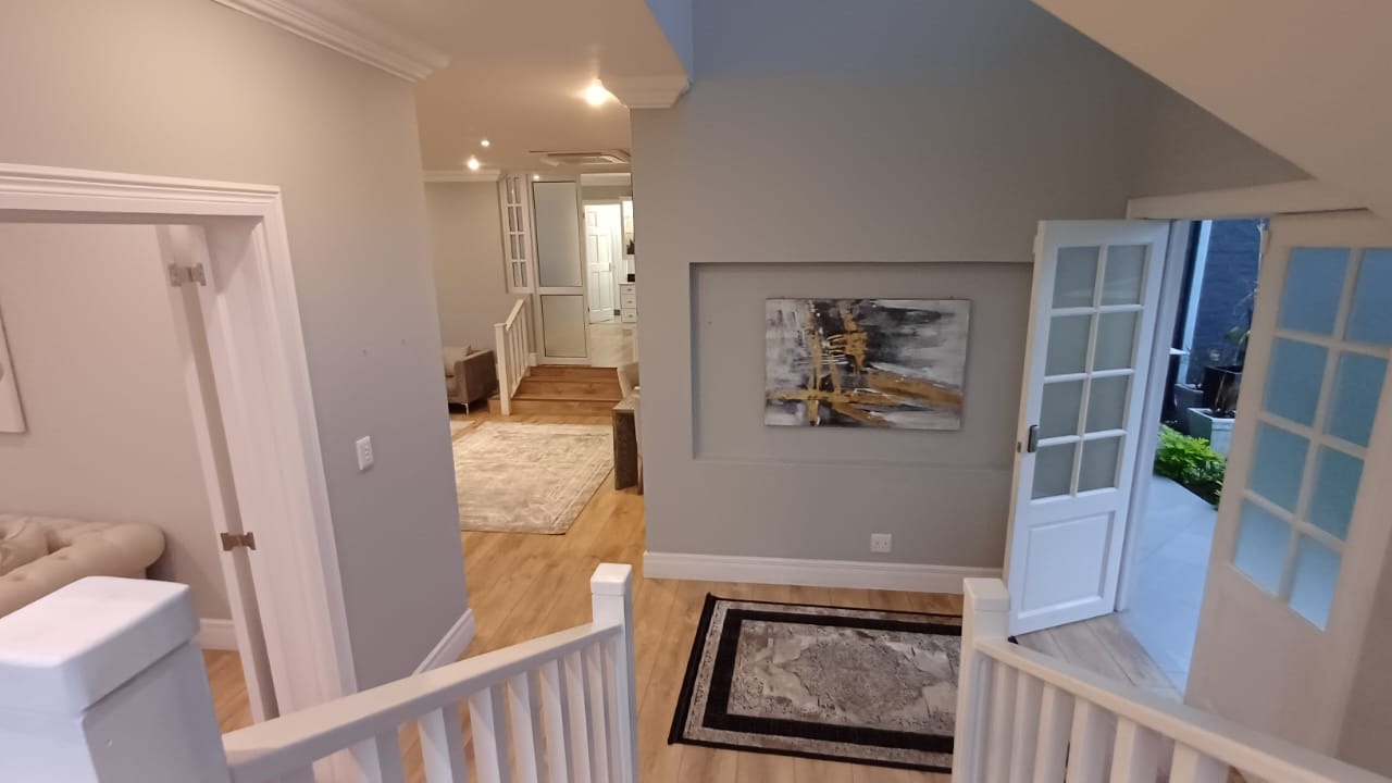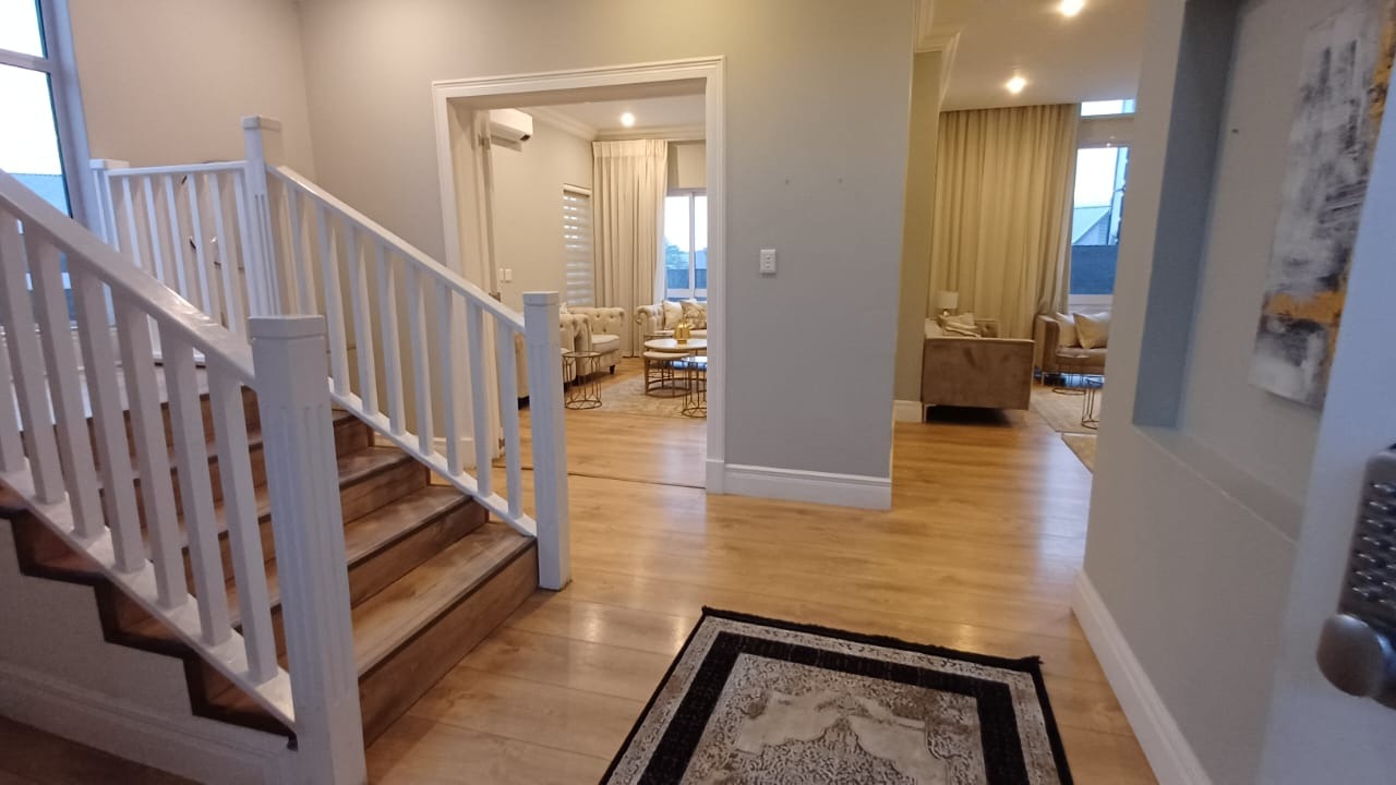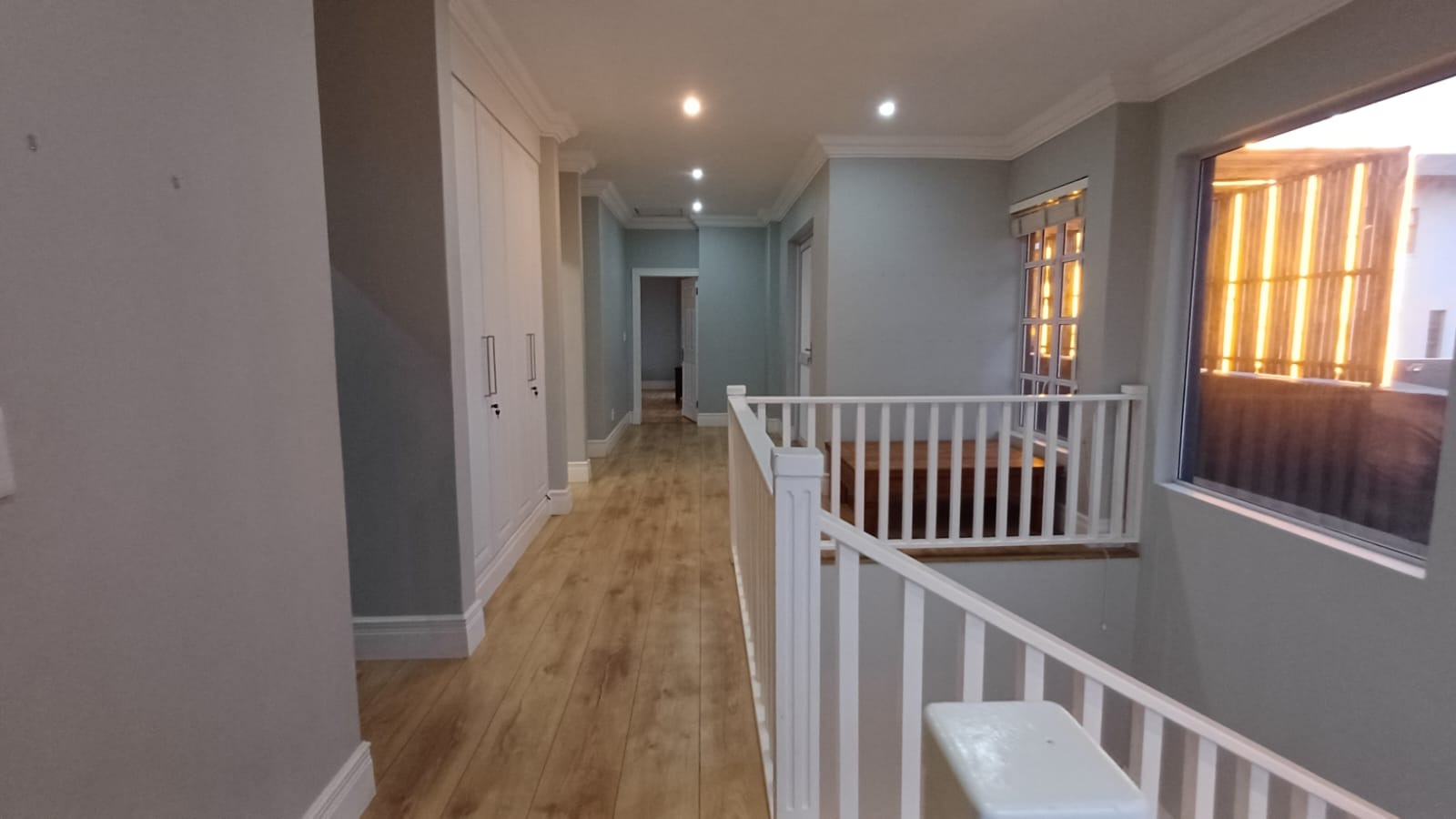 Nestled within a prestigious security estate in Waterfall, Midrand, this contemporary two-story residence offers an exceptional blend of modern design, luxurious comfort, and robust security. The property immediately captivates with its striking kerb appeal, featuring a distinctive dark facade complemented by elegant vertical wooden slat accents and crisp white French-style double entry doors. A paved driveway leads to a double carport, while a spacious front yard with well-maintained garden beds enhances the welcoming aesthetic. The architectural design, visible from the exterior, promises a sophisticated living experience within. Spanning an impressive 362 square meters of floor space on a generous 1562 square meter erf, this home is designed for expansive living. The interior boasts an open-plan layout, seamlessly connecting the various living areas. Residents will appreciate the two distinct lounges, a dedicated dining room, and a comfortable family TV room, providing ample space for both relaxation and entertaining. An inviting entrance hall sets the tone for the home's refined ambiance, while the presence of air conditioning ensures year-round comfort throughout. The heart of this home is its modern kitchen, a culinary haven equipped with white shaker-style cabinetry, integrated appliances including an oven and induction hob, and sleek white countertops. Under-cabinet lighting illuminates the workspace, and the durable laminate wood flooring extends throughout. A convenient pantry offers additional storage, and large sliding glass doors provide abundant natural light while offering direct access to an outdoor area, perfect for al fresco dining or morning coffee. A compact kitchenette with integrated appliances and under-cabinet lighting further enhances the home's functionality. Accommodation comprises four well-appointed bedrooms and 3.5 bathrooms, including a luxurious ensuite bathroom and a practical guest toilet, ensuring privacy and convenience for all occupants. The upper level features a balcony with privacy screens, offering scenic views and a private retreat. Outdoor living is a highlight, with a private patio and deck area, complete with a relaxing outdoor jacuzzi, ideal for unwinding after a long day. The property also includes staff quarters, a dedicated laundry room, and ample storage solutions. Security is paramount within this gated community, benefiting from 24-hour security, a security post, access gate, alarm system, and CCTV surveillance, all within a totally walled perimeter. For modern convenience and sustainability, the home is fibre-ready and equipped with a battery inverter and solar panels, ensuring energy efficiency and uninterrupted power supply. Waterfall, a sought-after metropolitan and suburban area in Midrand, is renowned for its secure estates, excellent amenities, and convenient access to major routes, making it an ideal location for discerning homeowners. Key Features: * 4 Bedrooms, 3.5 Bathrooms (1 Ensuite) * 2 Lounges, Dining Room, Family TV Room * Modern Kitchen with Pantry * Private Outdoor Jacuzzi, Patio, Deck, Balcony * Security Estate with 24-Hour Security & CCTV * Battery Inverter & Solar Panels * Fibre Connectivity & Air Conditioning * Staff Quarters, Laundry, Storage * 362 sqm Floor Size on 1562 sqm Erf