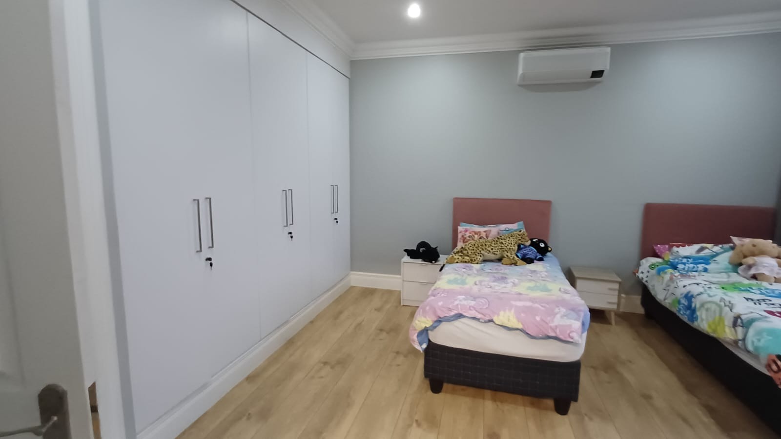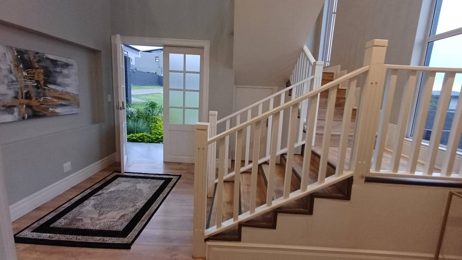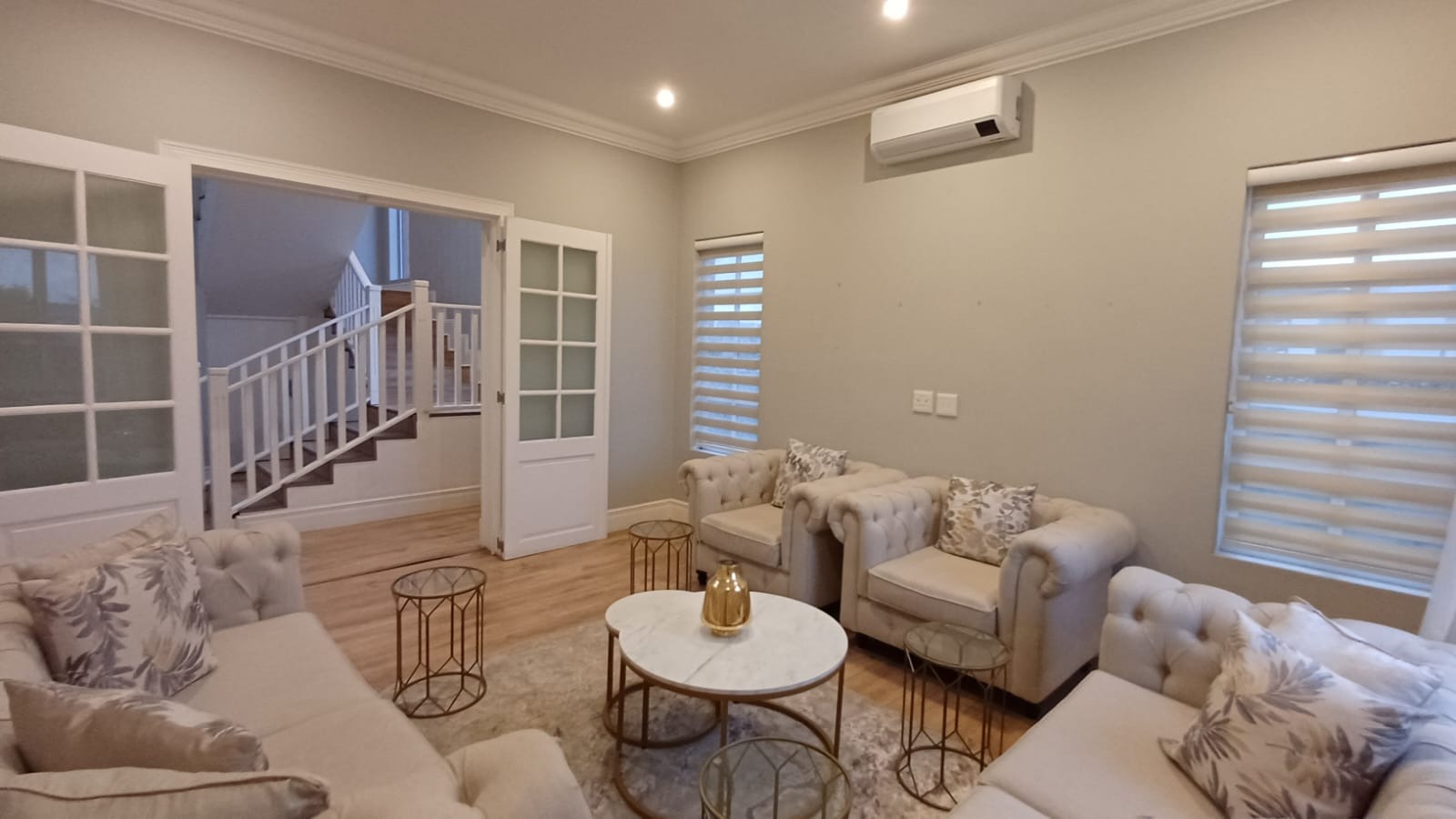Nestled within a prestigious security estate in Waterfall, Midrand, this contemporary two-story residence offers an exceptional blend of modern design, luxurious comfort, and robust security. The property immediately captivates with its striking kerb appeal, featuring a distinctive dark facade complemented by elegant vertical wooden slat accents and crisp white French-style double entry doors. A paved driveway leads to a double carport, while a spacious front yard with well-maintained garden beds enhances the welcoming aesthetic. The architectural design, visible from the exterior, promises a sophisticated living experience within. Spanning an impressive 362 square meters of floor space on a generous 1562 square meter erf, this home is designed for expansive living. The interior boasts an open-plan layout, seamlessly connecting the various living areas. Residents will appreciate the two distinct lounges, a dedicated dining room, and a comfortable family TV room, providing ample space for both relaxation and entertaining. An inviting entrance hall sets the tone for the home's refined ambiance, while the presence of air conditioning ensures year-round comfort throughout. The heart of this home is its modern kitchen, a culinary haven equipped with white shaker-style cabinetry, integrated appliances including an oven and induction hob, and sleek white countertops. Under-cabinet lighting illuminates the workspace, and the durable laminate wood flooring extends throughout. A convenient pantry offers additional storage, and large sliding glass doors provide abundant natural light while offering direct access to an outdoor area, perfect for al fresco dining or morning coffee. A compact kitchenette with integrated appliances and under-cabinet lighting further enhances the home's functionality. Accommodation comprises four well-appointed bedrooms and 3.5 bathrooms, including a luxurious ensuite bathroom and a practical guest toilet, ensuring privacy and convenience for all occupants. The upper level features a balcony with privacy screens, offering scenic views and a private retreat. Outdoor living is a highlight, with a private patio and deck area, complete with a relaxing outdoor jacuzzi, ideal for unwinding after a long day. The property also includes staff quarters, a dedicated laundry room, and ample storage solutions. Security is paramount within this gated community, benefiting from 24-hour security, a security post, access gate, alarm system, and CCTV surveillance, all within a totally walled perimeter. For modern convenience and sustainability, the home is fibre-ready and equipped with a battery inverter and solar panels, ensuring energy efficiency and uninterrupted power supply. Waterfall, a sought-after metropolitan and suburban area in Midrand, is renowned for its secure estates, excellent amenities, and convenient access to major routes, making it an ideal location for discerning homeowners. Key Features: * 4 Bedrooms, 3.5 Bathrooms (1 Ensuite) * 2 Lounges, Dining Room, Family TV Room * Modern Kitchen with Pantry * Private Outdoor Jacuzzi, Patio, Deck, Balcony * Security Estate with 24-Hour Security & CCTV * Battery Inverter & Solar Panels * Fibre Connectivity & Air Conditioning * Staff Quarters, Laundry, Storage * 362 sqm Floor Size on 1562 sqm Erf