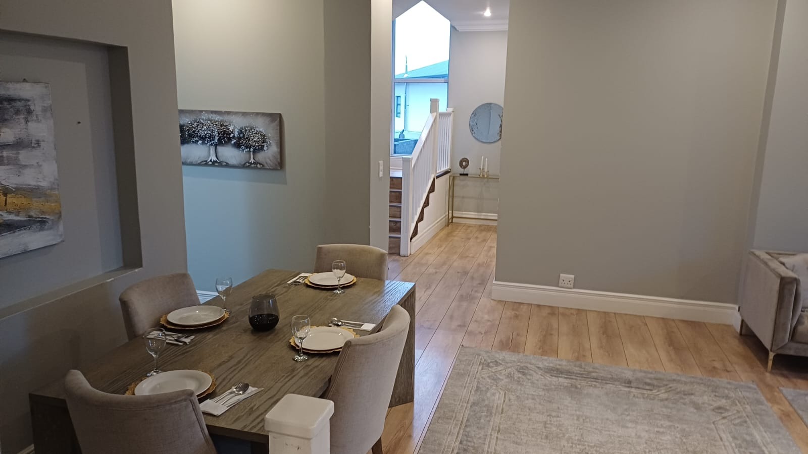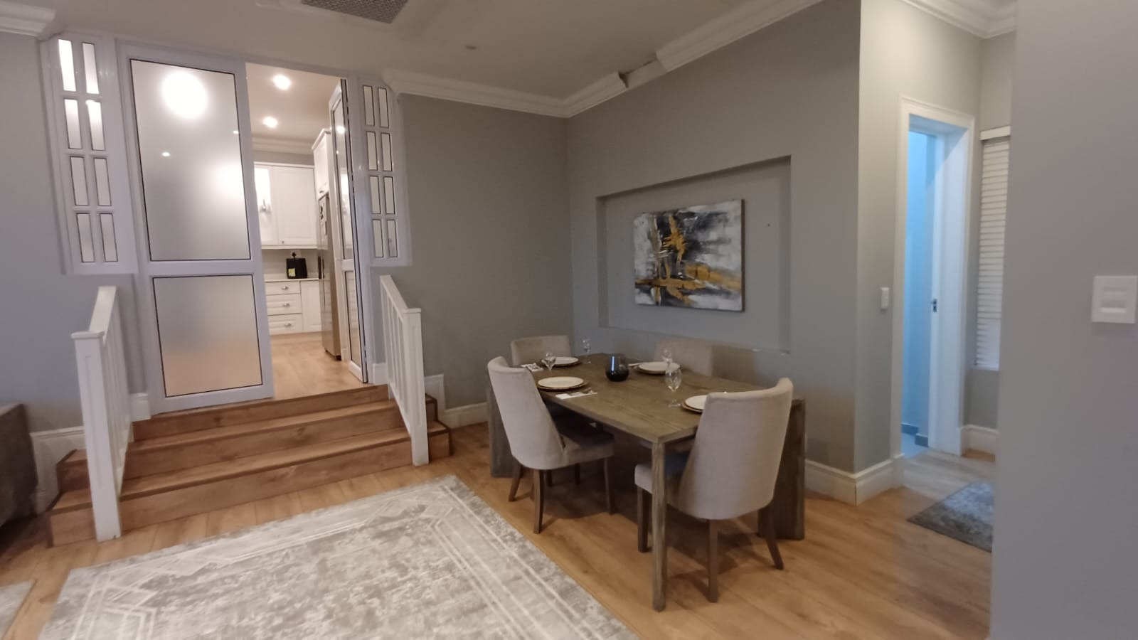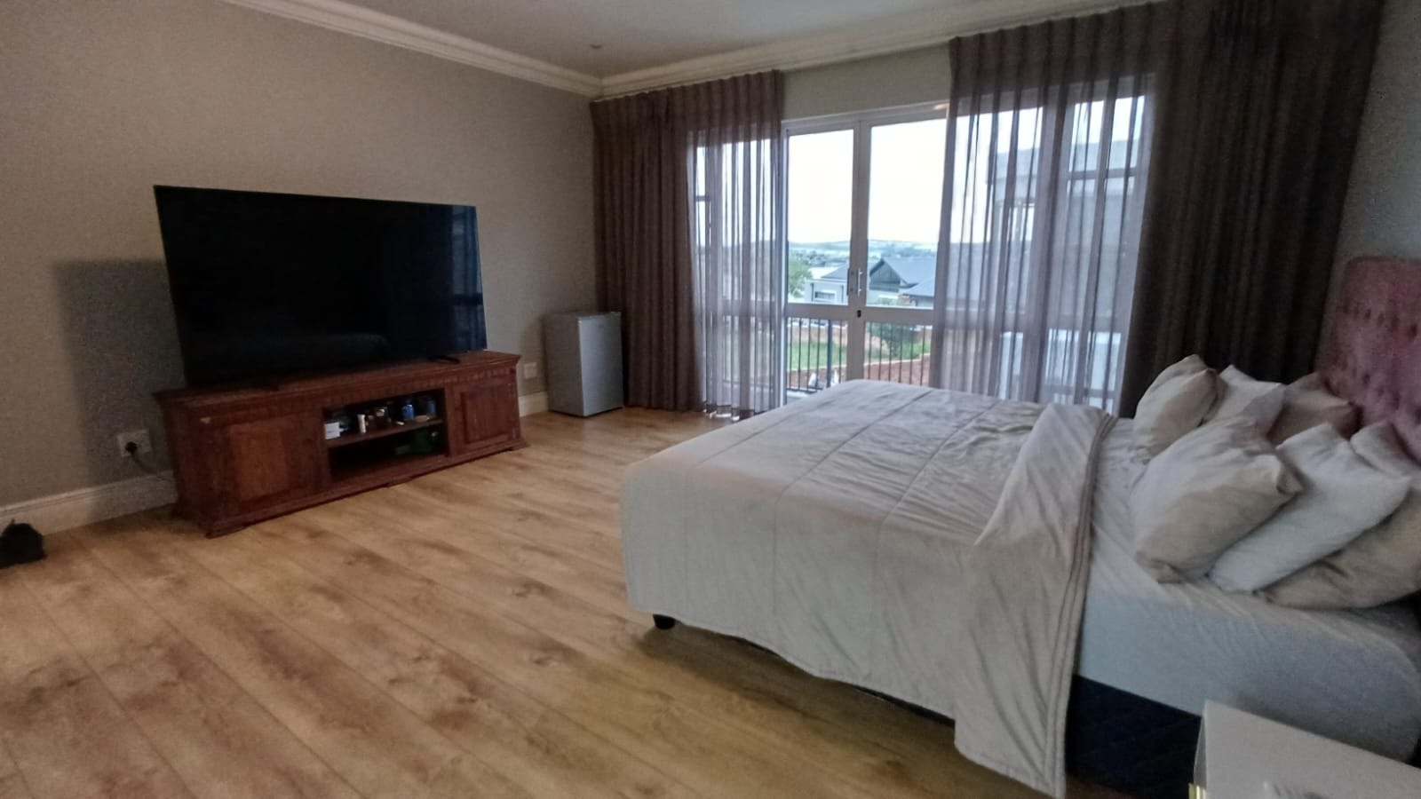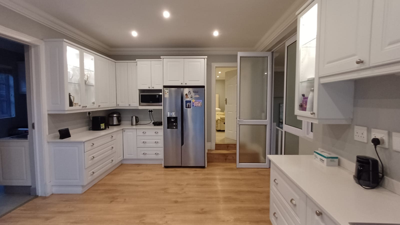 Nestled within a prestigious security estate in Waterfall, Midrand, this contemporary two-story residence offers an exceptional blend of modern design, luxurious comfort, and robust security. The property immediately captivates with its striking kerb appeal, featuring a distinctive dark facade complemented by elegant vertical wooden slat accents and crisp white French-style double entry doors. A paved driveway leads to a double carport, while a spacious front yard with well-maintained garden beds enhances the welcoming aesthetic. The architectural design, visible from the exterior, promises a sophisticated living experience within. Spanning an impressive 362 square meters of floor space on a generous 1562 square meter erf, this home is designed for expansive living. The interior boasts an open-plan layout, seamlessly connecting the various living areas. Residents will appreciate the two distinct lounges, a dedicated dining room, and a comfortable family TV room, providing ample space for both relaxation and entertaining. An inviting entrance hall sets the tone for the home's refined ambiance, while the presence of air conditioning ensures year-round comfort throughout. The heart of this home is its modern kitchen, a culinary haven equipped with white shaker-style cabinetry, integrated appliances including an oven and induction hob, and sleek white countertops. Under-cabinet lighting illuminates the workspace, and the durable laminate wood flooring extends throughout. A convenient pantry offers additional storage, and large sliding glass doors provide abundant natural light while offering direct access to an outdoor area, perfect for al fresco dining or morning coffee. A compact kitchenette with integrated appliances and under-cabinet lighting further enhances the home's functionality. Accommodation comprises four well-appointed bedrooms and 3.5 bathrooms, including a luxurious ensuite bathroom and a practical guest toilet, ensuring privacy and convenience for all occupants. The upper level features a balcony with privacy screens, offering scenic views and a private retreat. Outdoor living is a highlight, with a private patio and deck area, complete with a relaxing outdoor jacuzzi, ideal for unwinding after a long day. The property also includes staff quarters, a dedicated laundry room, and ample storage solutions. Security is paramount within this gated community, benefiting from 24-hour security, a security post, access gate, alarm system, and CCTV surveillance, all within a totally walled perimeter. For modern convenience and sustainability, the home is fibre-ready and equipped with a battery inverter and solar panels, ensuring energy efficiency and uninterrupted power supply. Waterfall, a sought-after metropolitan and suburban area in Midrand, is renowned for its secure estates, excellent amenities, and convenient access to major routes, making it an ideal location for discerning homeowners. Key Features: * 4 Bedrooms, 3.5 Bathrooms (1 Ensuite) * 2 Lounges, Dining Room, Family TV Room * Modern Kitchen with Pantry * Private Outdoor Jacuzzi, Patio, Deck, Balcony * Security Estate with 24-Hour Security & CCTV * Battery Inverter & Solar Panels * Fibre Connectivity & Air Conditioning * Staff Quarters, Laundry, Storage * 362 sqm Floor Size on 1562 sqm Erf