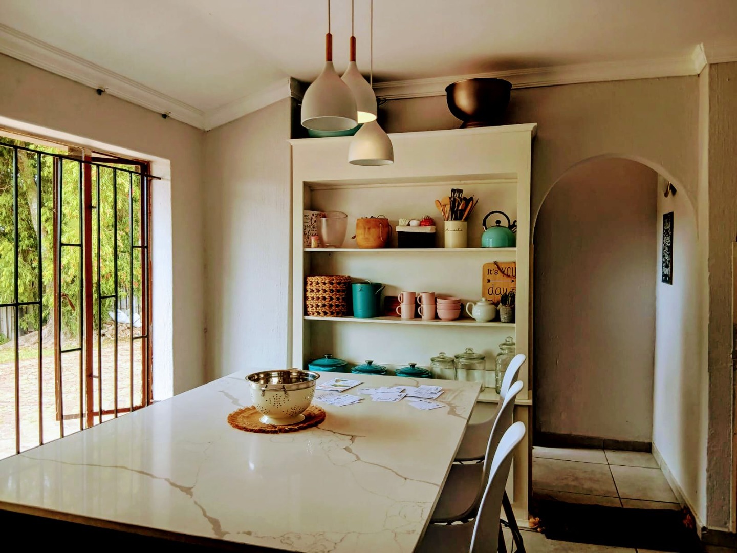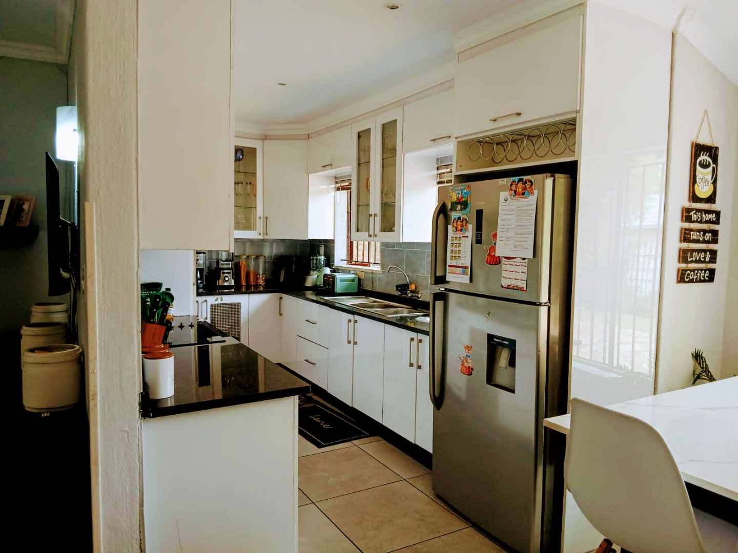 Discover this charming 4-bedroom, 2-bathroom residence nestled in the suburban tranquility of Bashewa AH, Bronkhorstspruit. The property immediately impresses with its durable brick construction, classic red tiled roof, and a substantial paved driveway leading to a separate double garage, offering ample parking and storage. Mature trees and established landscaping enhance the curb appeal, providing shade and a welcoming atmosphere. Step inside to a well-appointed interior spanning 191.00 sqm. The home features two comfortable lounges and a dedicated dining room, providing versatile spaces for relaxation and entertaining. The modern kitchen boasts sleek white cabinetry, dark countertops, and an integrated breakfast bar, making it both functional and stylish. Tiled flooring throughout the main living areas ensures easy maintenance and a cohesive flow. Accommodation includes four generously sized bedrooms, offering comfortable private retreats. The two bathrooms are conveniently located to serve the household. Large windows invite natural light, creating bright and airy spaces, while security bars and gates provide peace of mind. Outside, the property truly shines with a large, well-maintained green lawn and lush, mature trees that ensure privacy. A distinctive small pool area with blue tiles and brick accents offers a unique spot for relaxation and enjoyment, perfect for warm South African days. This pet-friendly home provides a serene environment for family living. Key Features: * 4 Bedrooms, 2 Bathrooms * 2 Lounges, 1 Dining Room * Modern Kitchen with Integrated Breakfast Bar * 191.00 sqm Floor Size * Separate Double Garage * Spacious Paved Driveway * Private Garden with Small Pool Area * Mature Trees and Lush Landscaping * Security Bars and Gates * Pet-Friendly Residence
