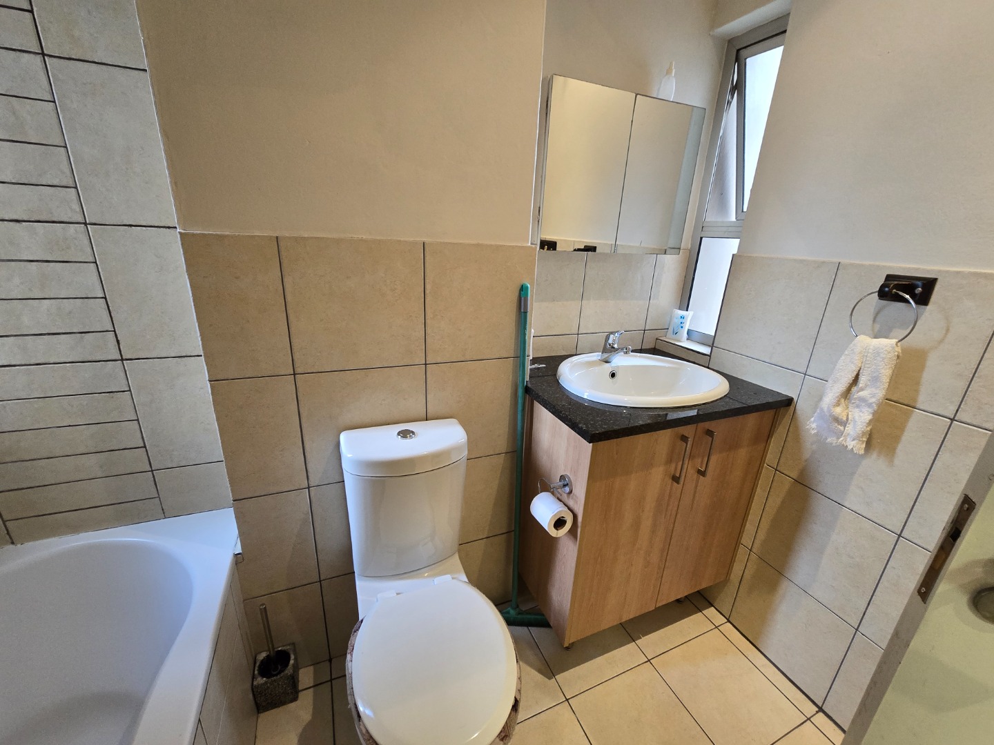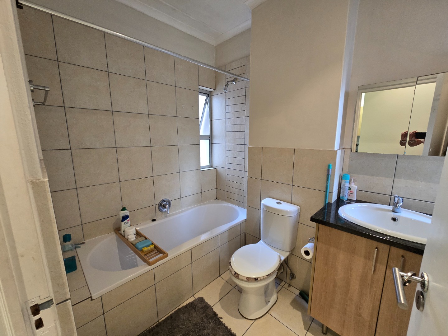 The apartment has a full bathroom with a telescopic shower head and is larger than normal.