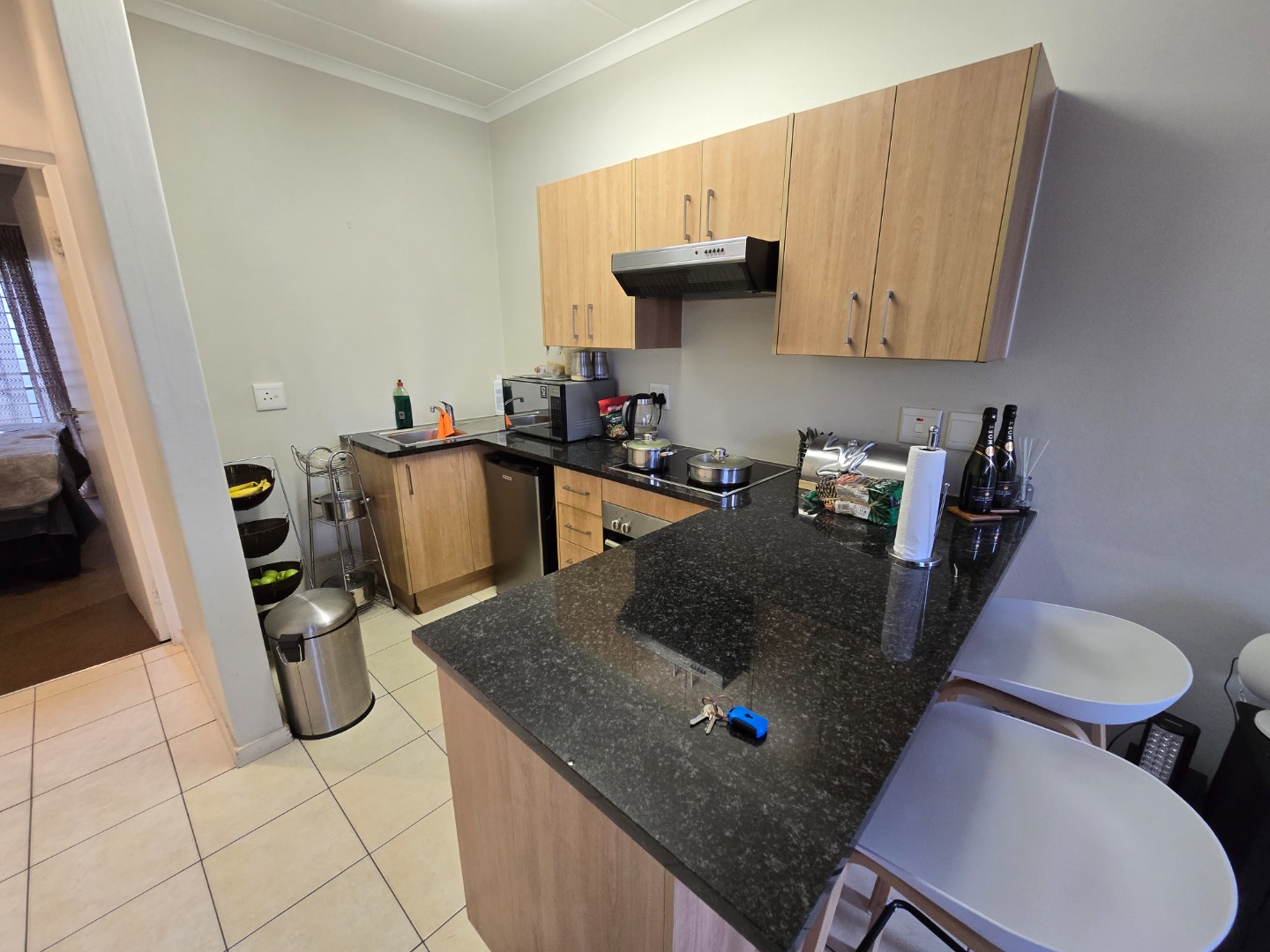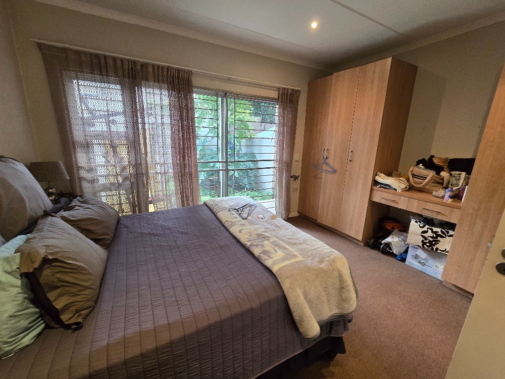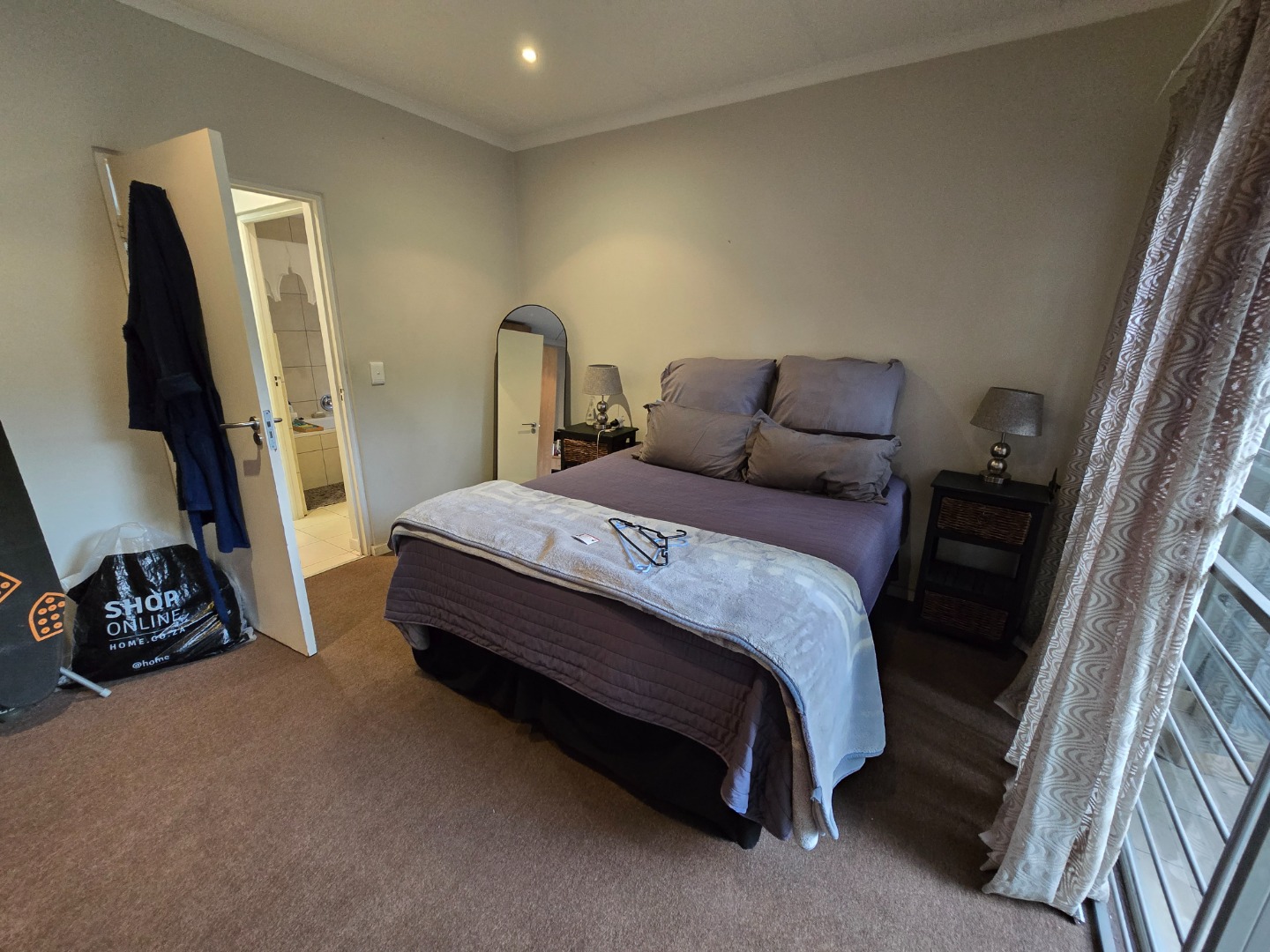 The bedroom is large, with ample cupboard space, and accommodates a king size bed with ease. This opens into a private patio area, with a veranda that leads into a quaint private garden, to enjoy sundowners on a warm afternoon in private.