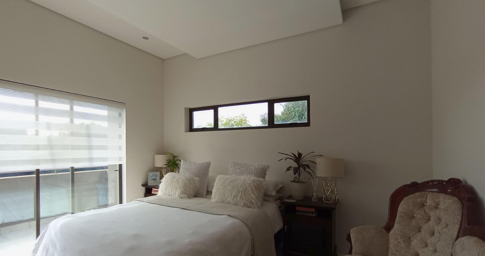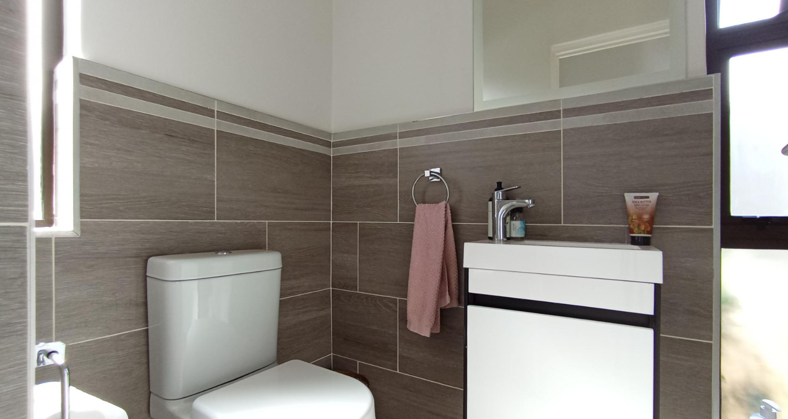 The upstairs level offers a thoughtful bedroom arrangement and additional living space. The main bedroom is generously sized and features a private balcony, a walk-in closet, and a luxurious en-suite bathroom complete with dual basins, a bathtub, shower, and toilet. Two additional bedrooms provide comfortable accommodation for family or guests, while a central bathroom with basin, bathtub, and toilet serves the secondary bedrooms. At the top of the stairs, a versatile open space can be used as a pajama lounge, study, or family area.
