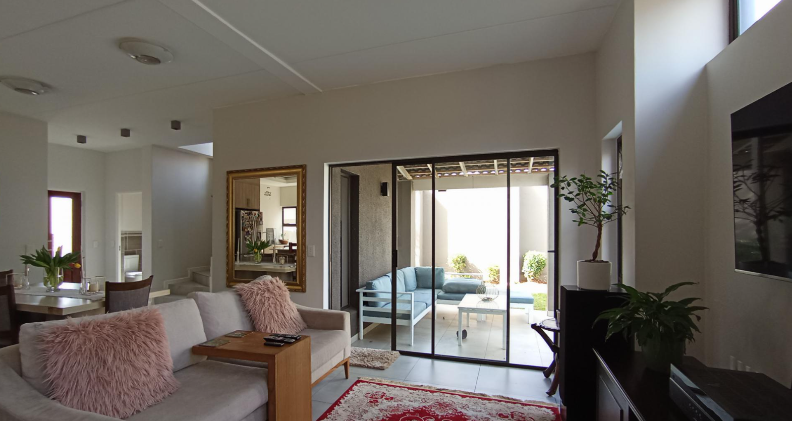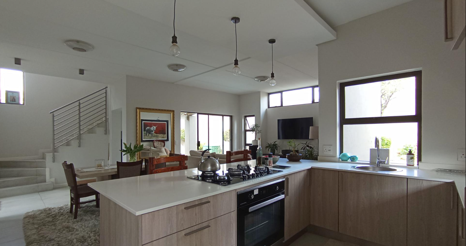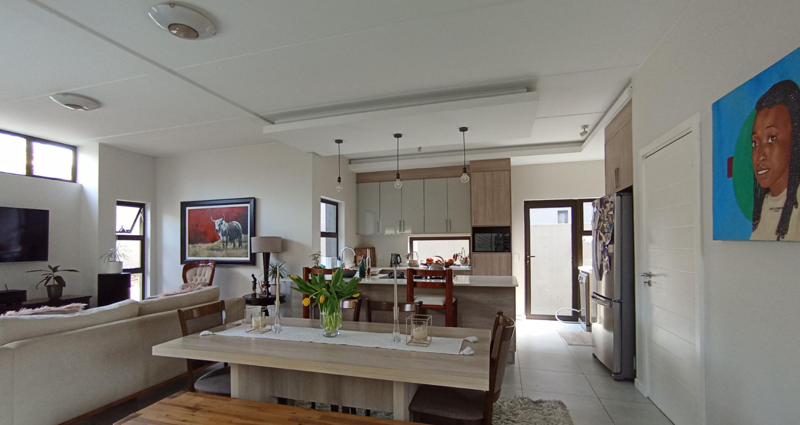 Upon entry, you are welcomed into a spacious open-plan layout that connects the dining and lounge areas effortlessly, creating the perfect setting for family gatherings and entertaining. The lounge opens onto a charming patio, ideal for indoor-outdoor living. The kitchen is fitted with a modern island and flows directly into the dining area, allowing for easy meal preparation and serving. A guest bathroom with a basin and toilet is conveniently located near the staircase. A double garage provides secure parking for two vehicles with direct access into the home.