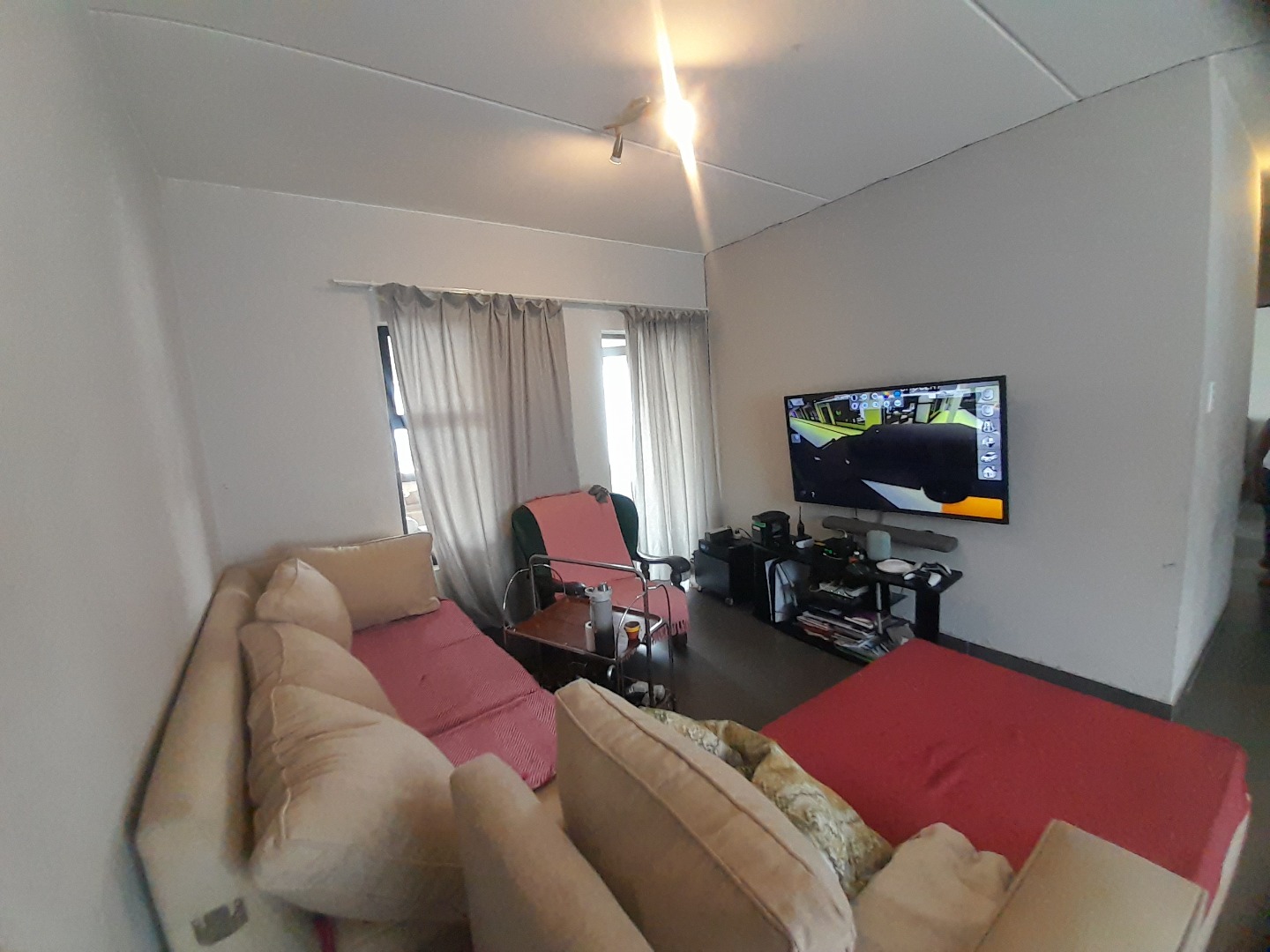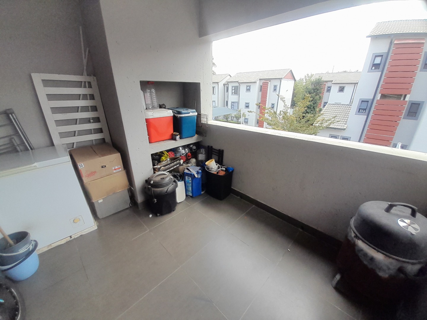 Both bedrooms are designed for comfort, supported by two well-appointed bathrooms. The property also benefits from a private balcony, offering an outdoor extension to the living space. Residents can enjoy access to a communal pool and clubhouse within the complex, perfect for leisure and recreation. Security is enhanced with an access gate, burglar bars, and a security gate, providing peace of mind.