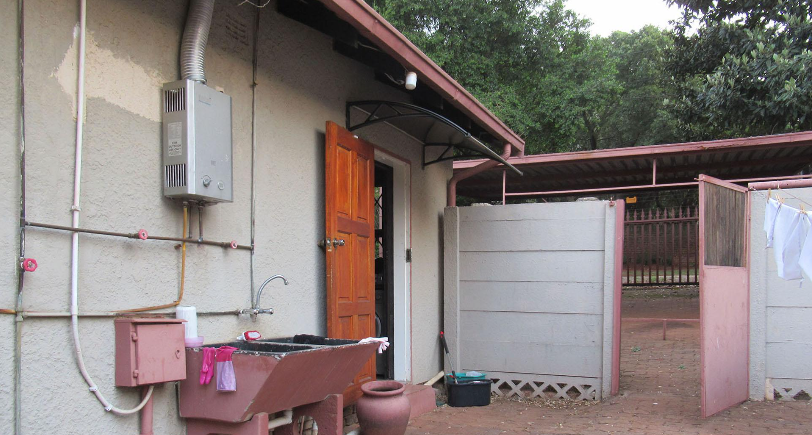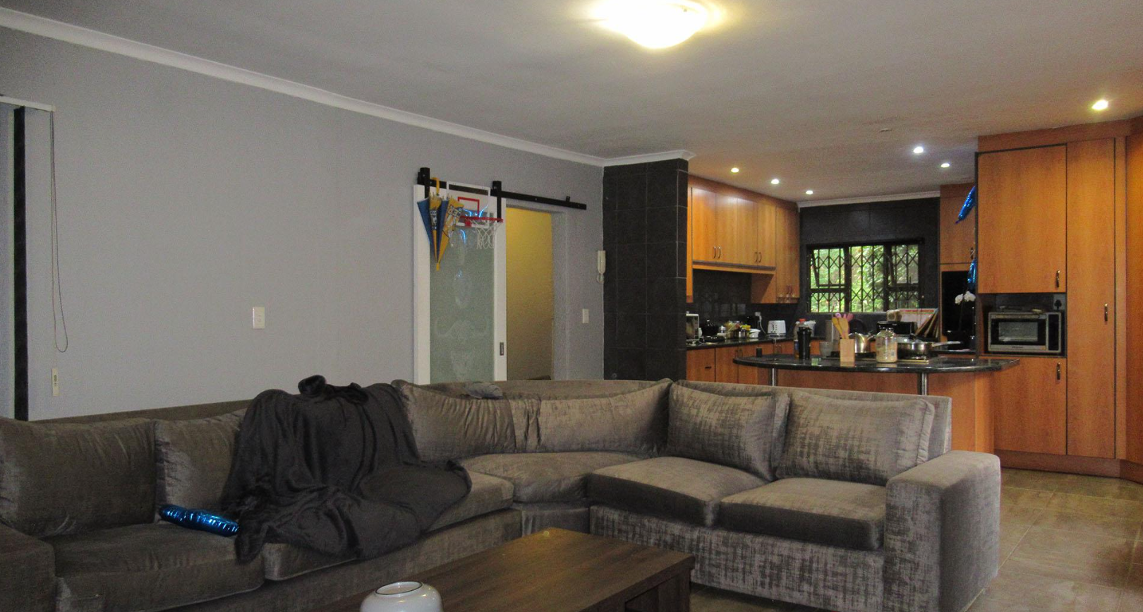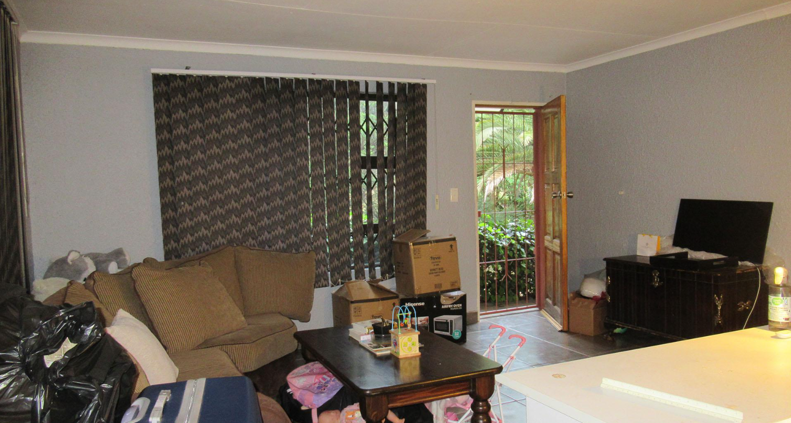 Nestled in the suburban tranquility of Kloofendal, Roodepoort, this spacious family home offers a desirable lifestyle in a well-established South African neighbourhood. Upon arrival, the property presents a secure frontage with a robust metal gate and electric fencing, ensuring peace of mind. Mature trees and hedges provide privacy and a green aesthetic, complementing the suburban setting. Ample off-street parking is available behind the secure access gate, alongside a double garage.