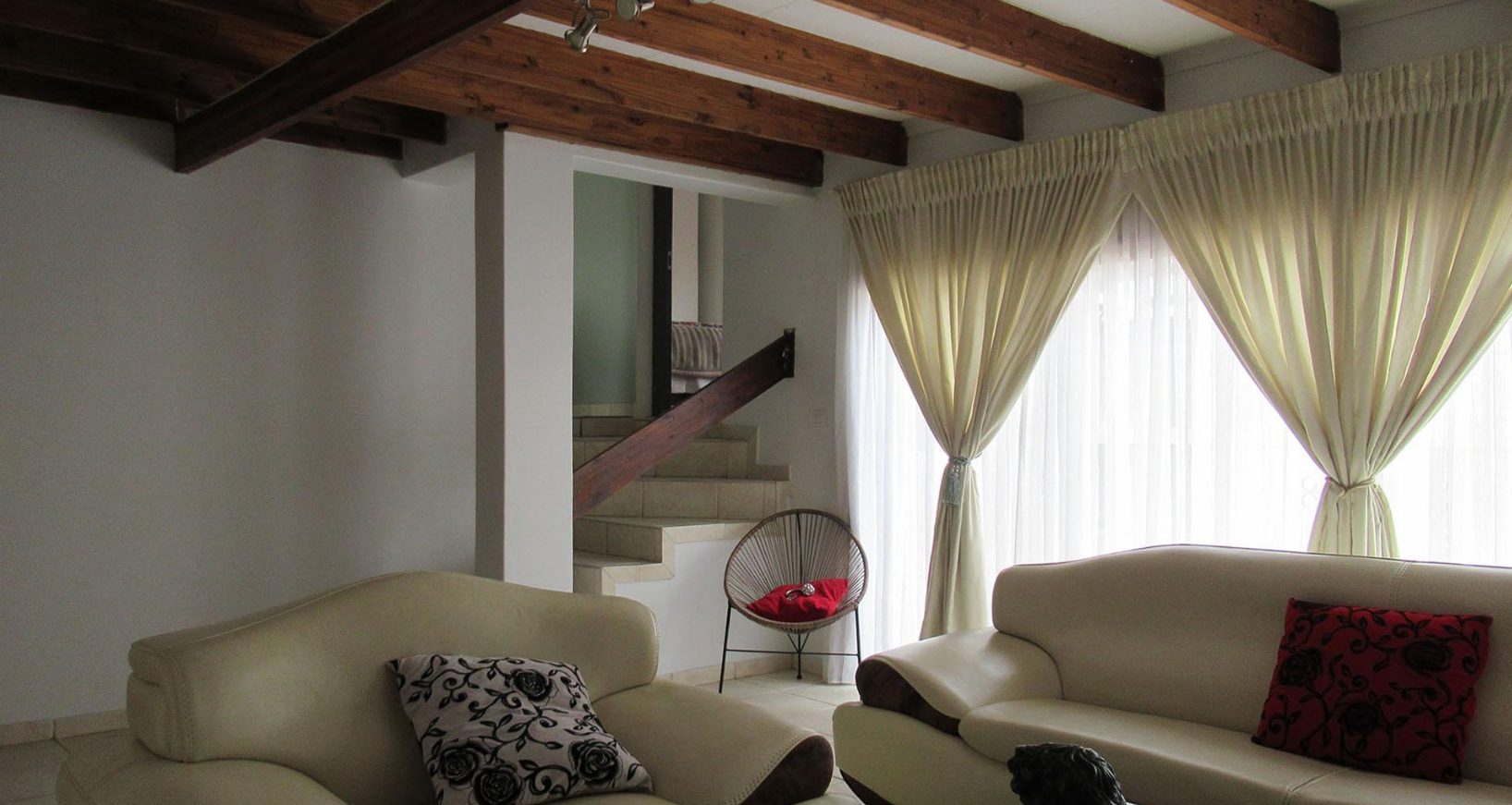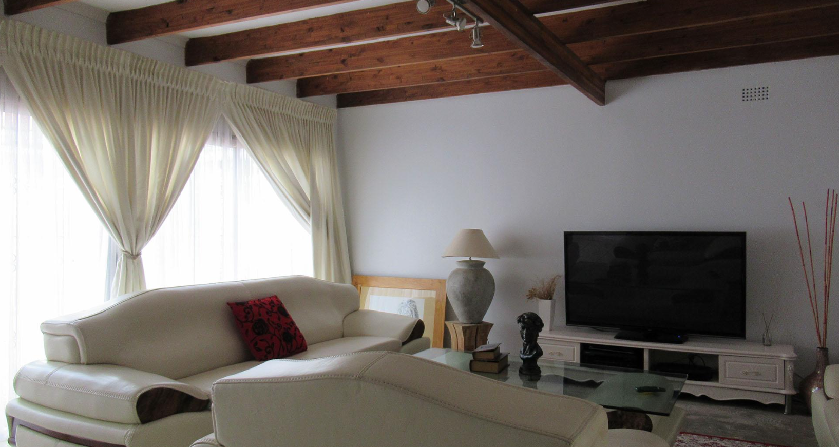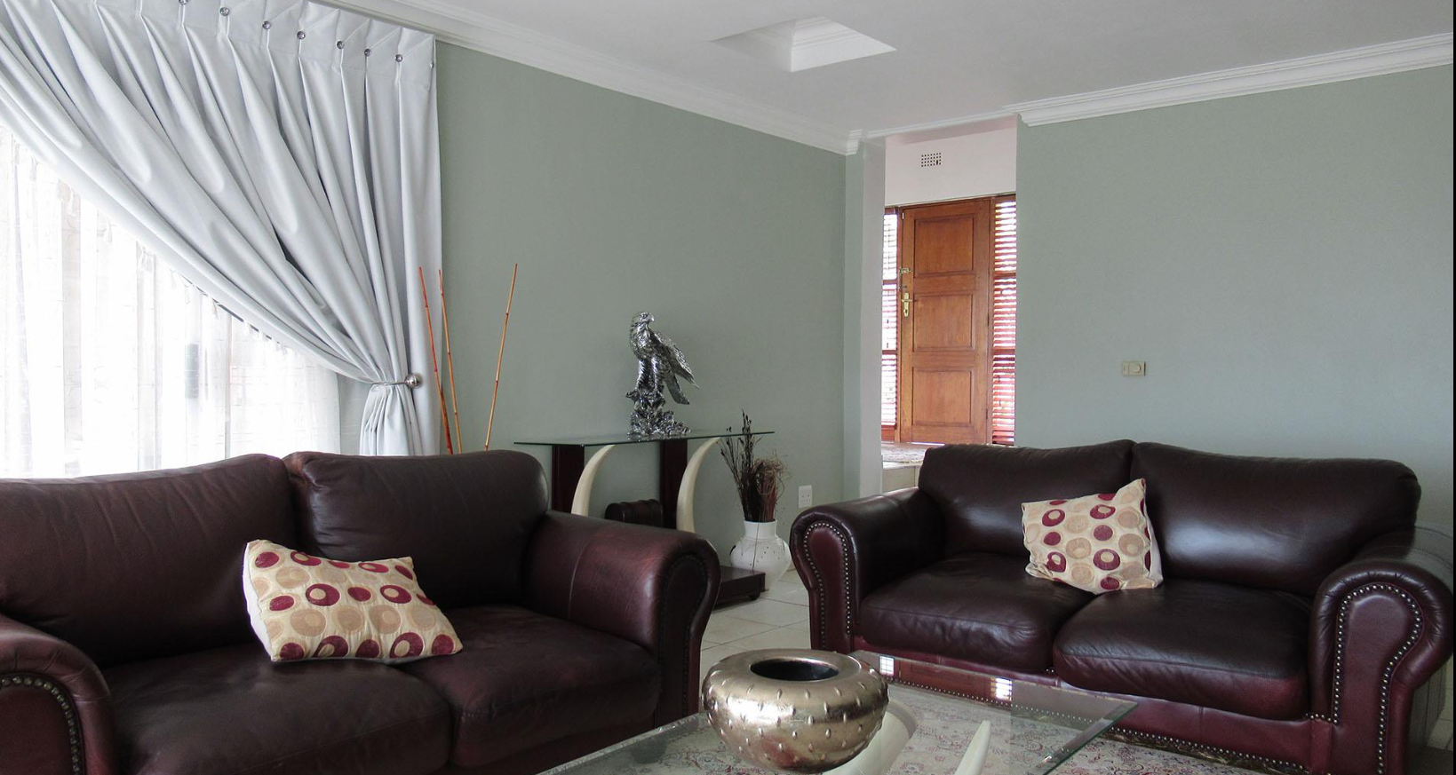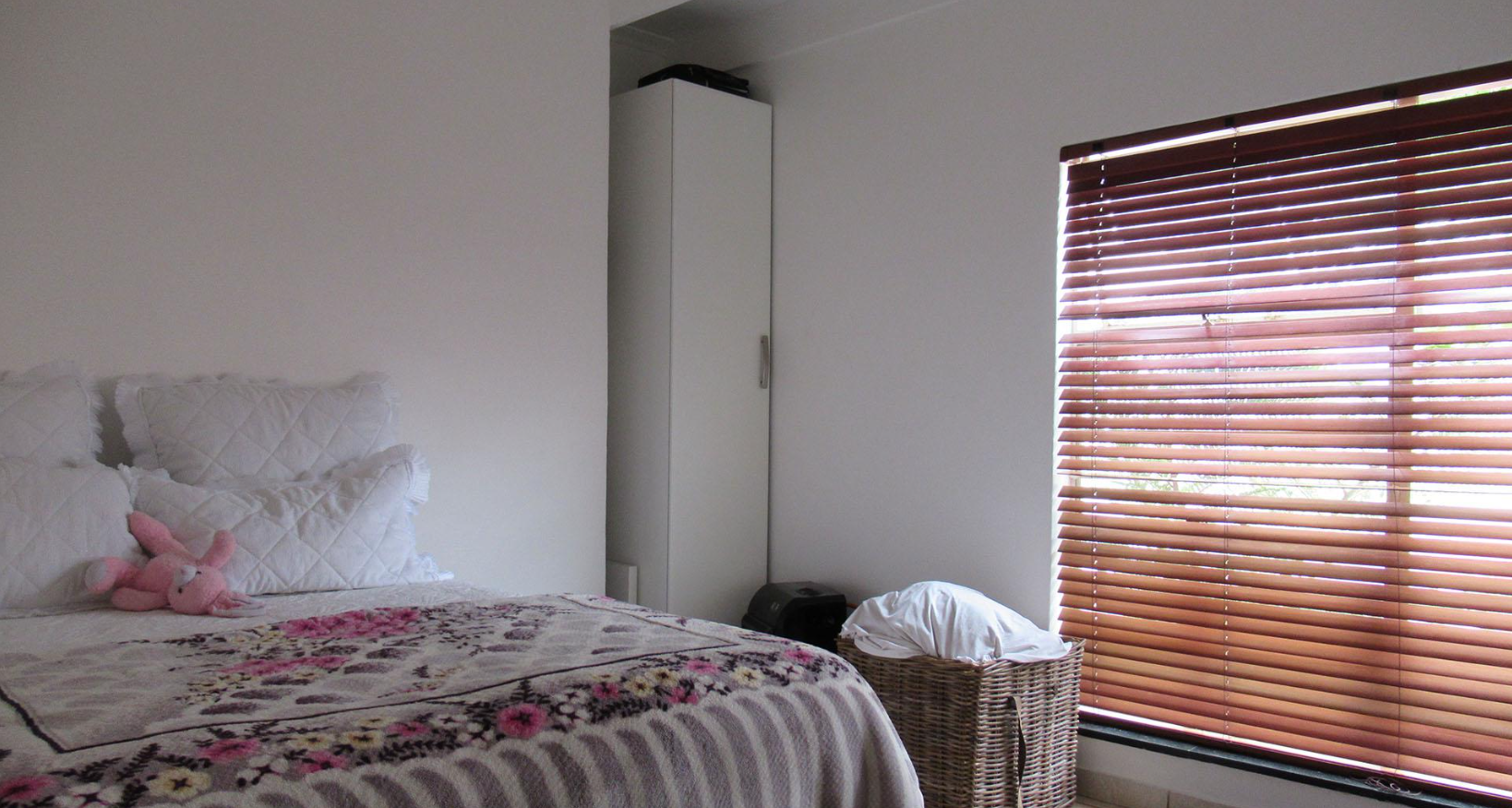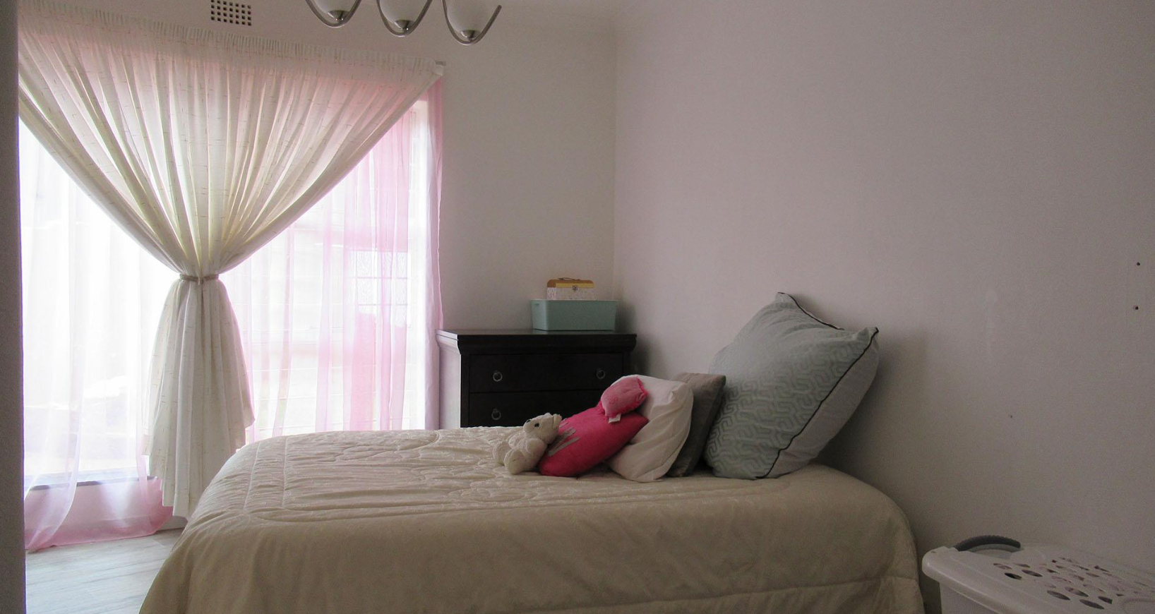 Accommodation comprises five generously sized bedrooms, providing ample space for a large family or guests. The property includes two well-maintained bathrooms, designed to serve the household efficiently. Ample storage solutions are integrated throughout the home, including built-in cabinetry and a functional walk-in closet, ensuring an organised living environment. For added convenience, the property also features staff quarters.