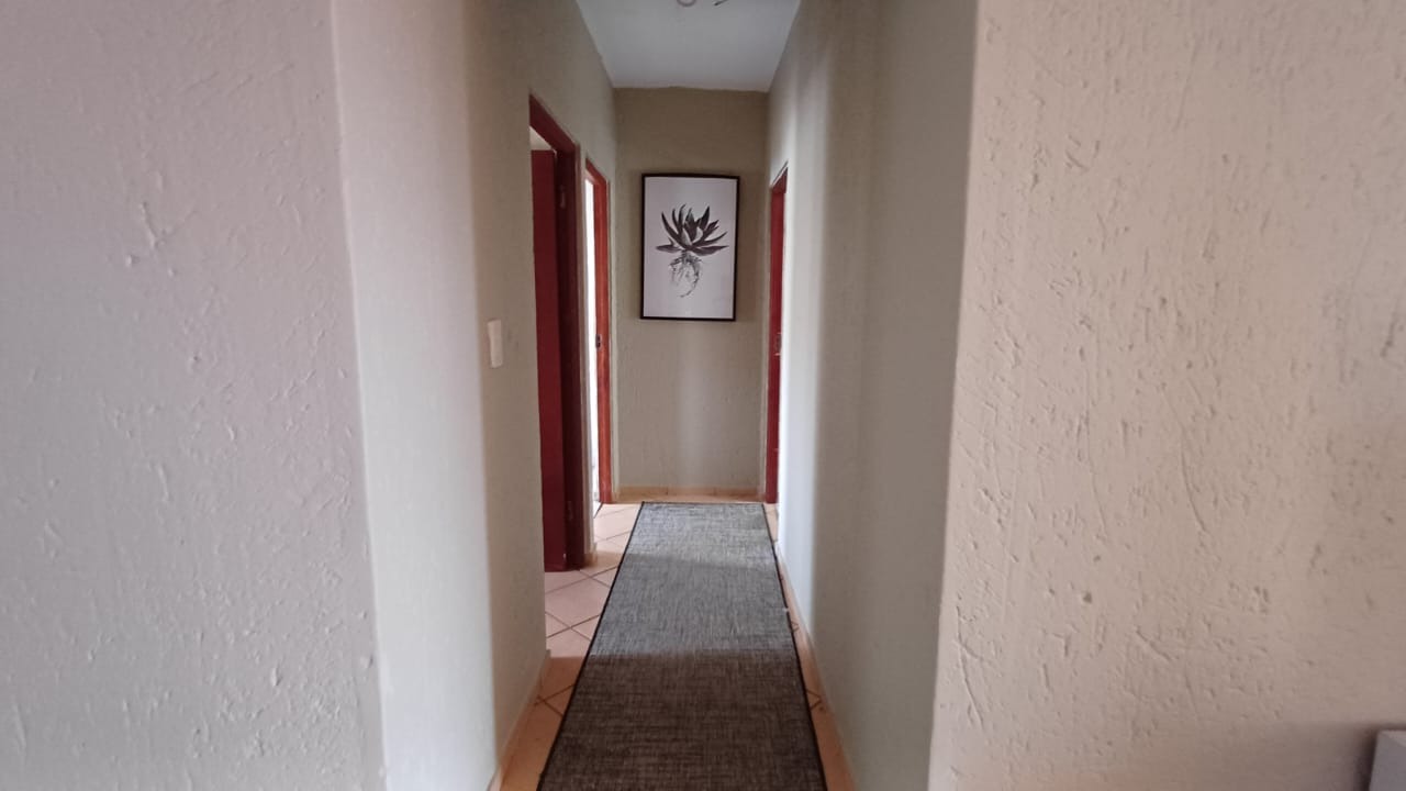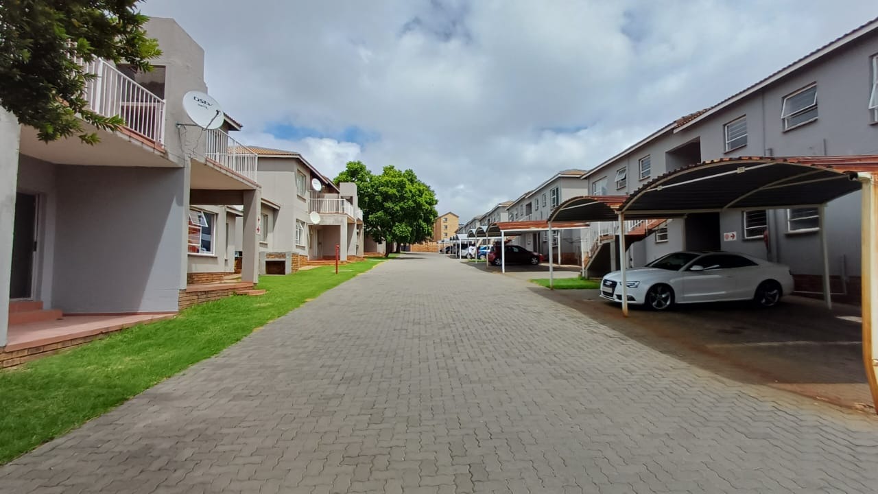 The apartment offers two bedrooms, providing comfortable accommodation, alongside a single well-appointed bathroom. Residents can enjoy a private balcony, perfect for relaxation, and access to a communal garden area. Outdoor amenities include a built-in braai, paved areas, and a driveway, with one dedicated parking space provided by a covered carport.