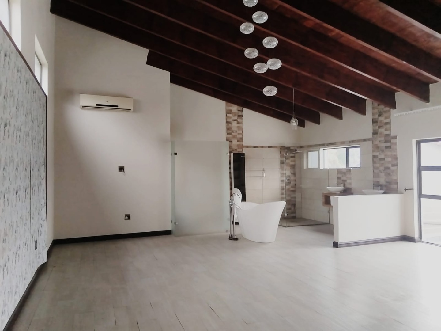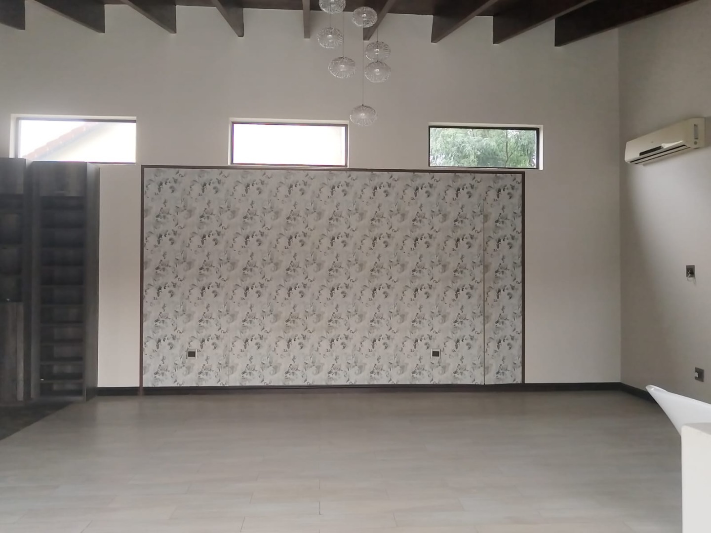 Downstairs living areas are designed for both relaxation and entertaining, flowing seamlessly out toward the outdoor space. The property includes a splash pool, perfect for cooling off on warm days, as well as a domestic quarters for added convenience.