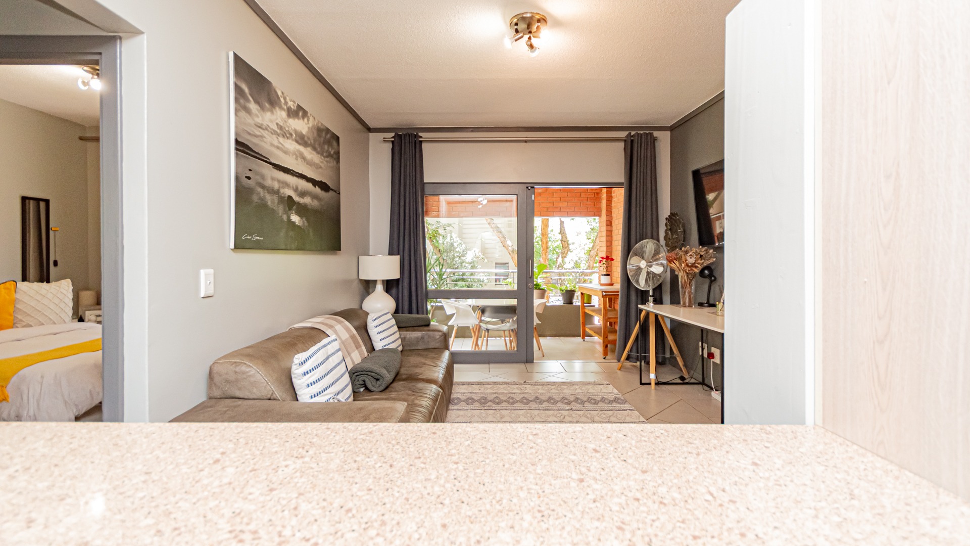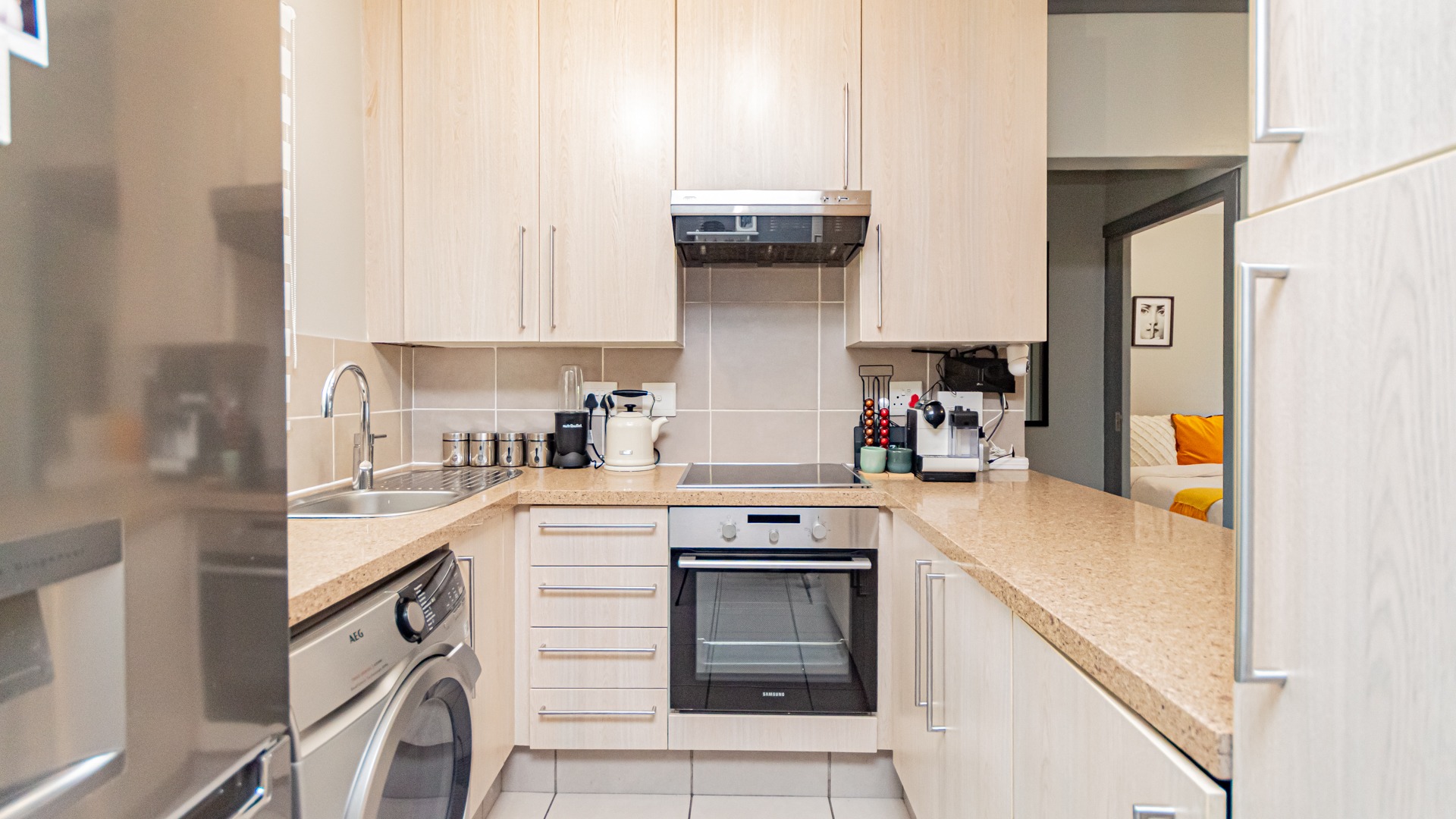This lovely 1-bedroom, 1-bathroom apartment in Bryanston, Sandton, is just waiting for you to call it home! Spanning a comfortable 52 sqm, it’s perfect for singles or couples. Step inside and you’ll find a bright, open-plan living area that flows beautifully, making it super easy to relax or entertain. The modern kitchen is a real highlight, featuring light wood cabinetry, a breakfast bar, and integrated appliances like an oven, hob and extractor. Tiled flooring throughout keeps things neat and tidy. The bedroom is a cozy retreat, filled with natural light. The bathroom is clean and functional, complementing the apartment's modern feel.