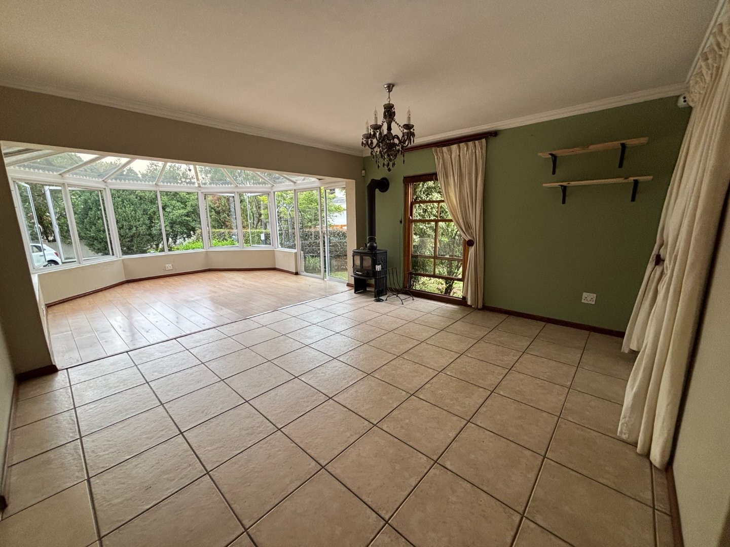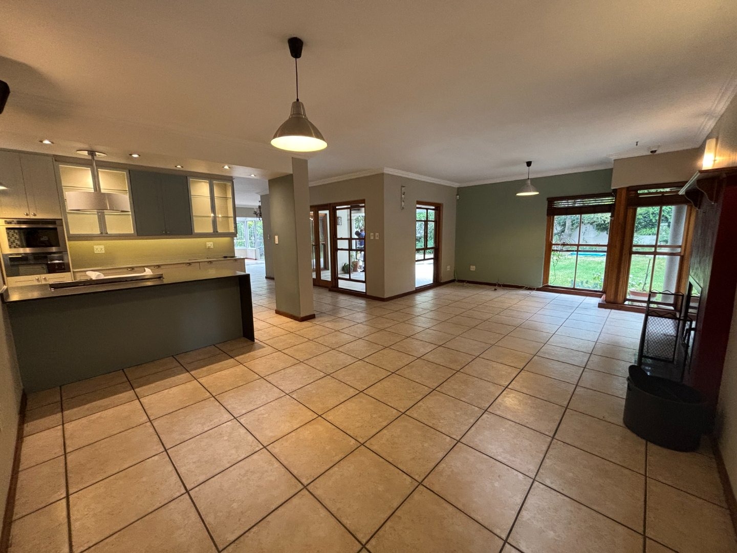 Spacious, open-plan design: Downstairs features a kitchen with a scullery, living area, dining area, and two fireplaces. Large sliding doors and windows flood the home with natural light, creating a warm, inviting atmosphere.