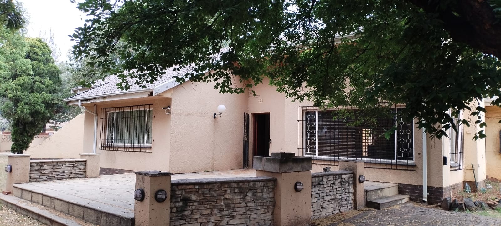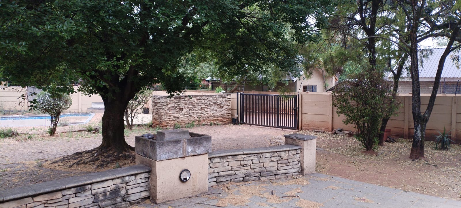 Discover this spacious 3-bedroom, 2-bathroom residence nestled on a generous 2337 sqm erf in the established suburban area of Buccleuch, Sandton. The property presents a solid exterior with a tiled roof, complemented by mature trees that offer natural shade and enhance its kerb appeal. A welcoming paved patio area, featuring stone veneer accents and built-in lighting, provides an ideal spot for outdoor relaxation and entertaining. Inside, the home offers versatile living spaces designed for comfort and functionality. Tiled flooring extends throughout, ensuring durability and ease of maintenance. The family TV room includes a practical built-in entertainment unit, while another spacious room boasts a charming stone-clad fireplace, wooden French doors, and a unique decorative wall mural, creating a distinctive focal point. The layout offers an open-plan feel, allowing for flexible arrangement of living and dining areas. The kitchen is equipped with ample reddish-brown cabinetry and generous countertop space, alongside a tiled backsplash and natural light from a window. The three well-proportioned bedrooms are served by two bathrooms, with the added convenience of a guest toilet. This home provides a solid foundation, ready for a new owner to infuse their personal style and modern touches. Outdoor amenities include a refreshing swimming pool, a well-maintained garden, and additional paving. Security is a priority, with features such as an access gate, electric fencing, burglar bars on windows, and security gates on exterior doors, ensuring peace of mind. A double garage provides secure parking and storage. This property offers a fantastic opportunity to own a substantial home in a desirable Sandton location, combining space, security, and potential for enhancement. Key Features: * 3 Bedrooms, 2 Bathrooms * Guest Toilet * Double Garage * 2337 sqm Erf Size * Swimming Pool * Paved Patio & Garden * Electric Fencing & Burglar Bars * Stone-Clad Fireplace * Family TV Room * Open-Plan Living Potential