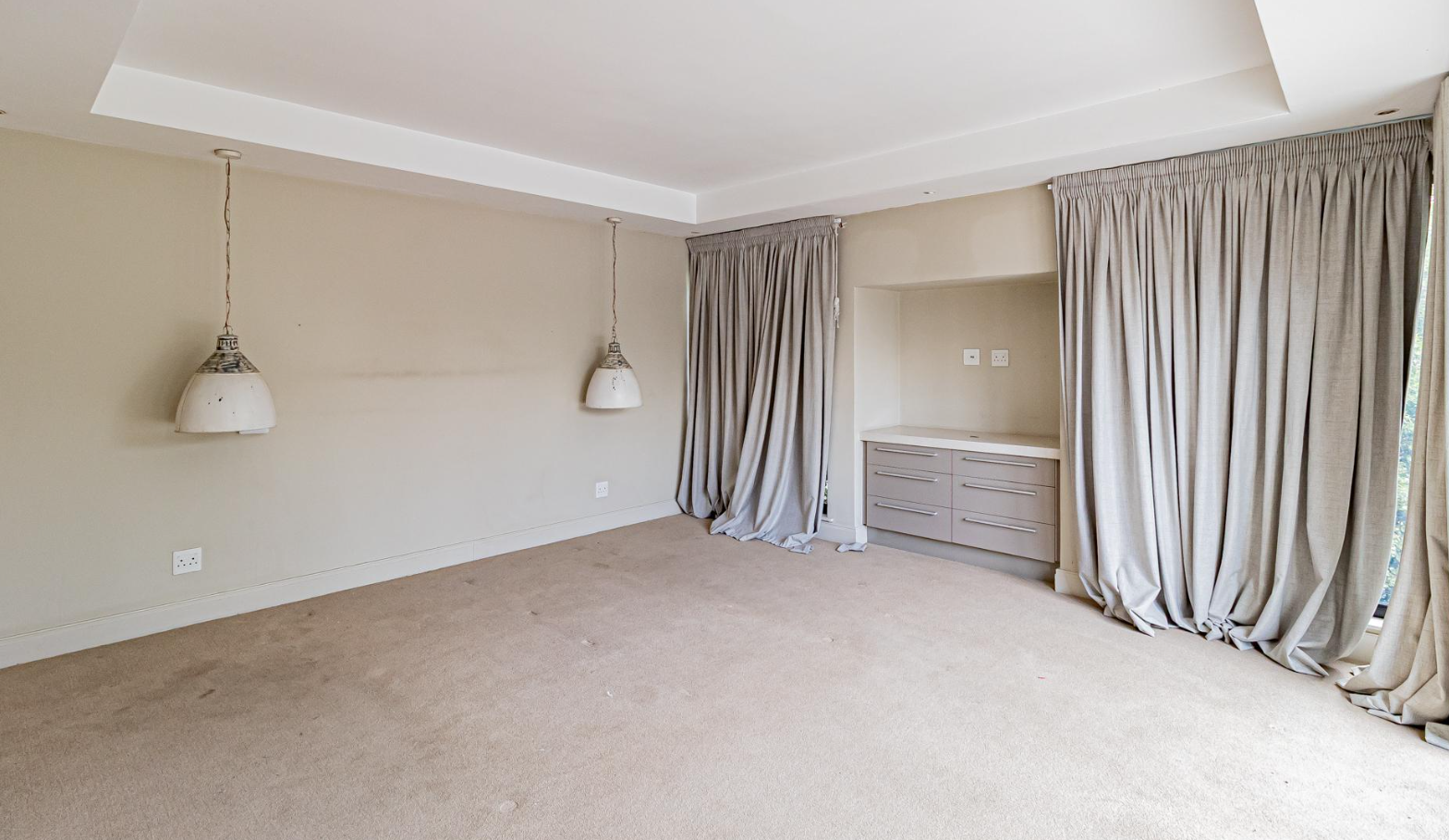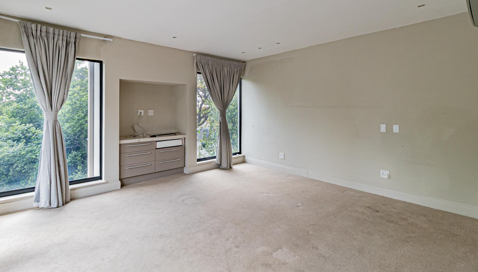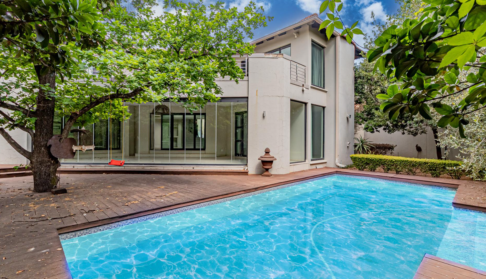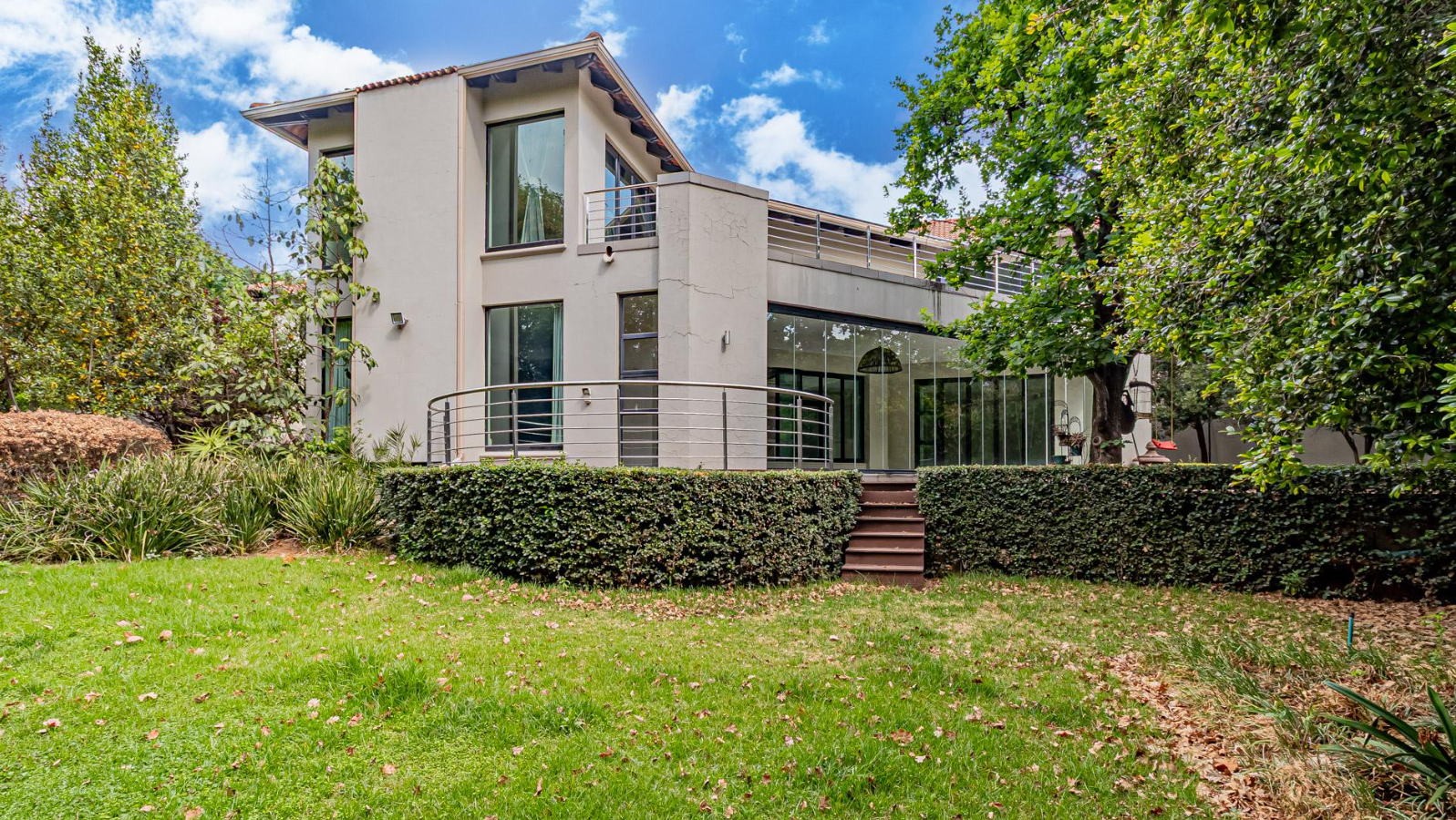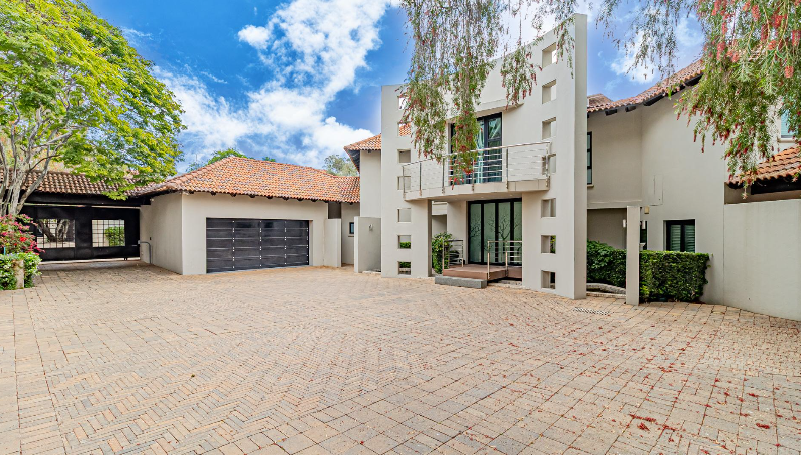 Discover an exquisite residential offering in the esteemed Sandton suburb of Hurlingham, where modern architectural elegance meets unparalleled comfort. This magnificent property, set on a generous 1431 sqm erf, presents a striking facade with a contemporary design and a welcoming balcony, complemented by a vast paved driveway capable of accommodating up to 15 vehicles, alongside a double garage, ensuring both grandeur and practicality.